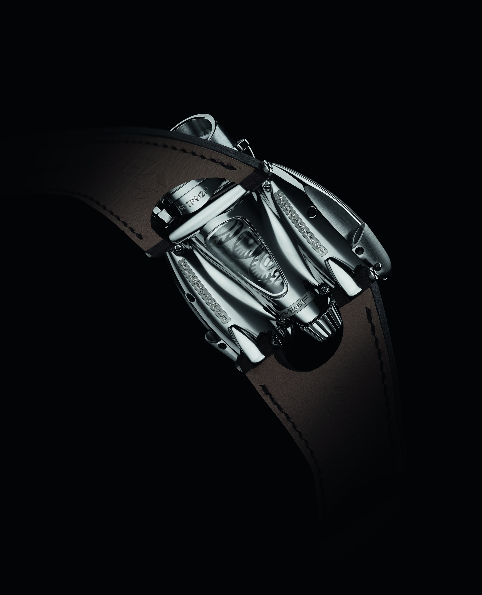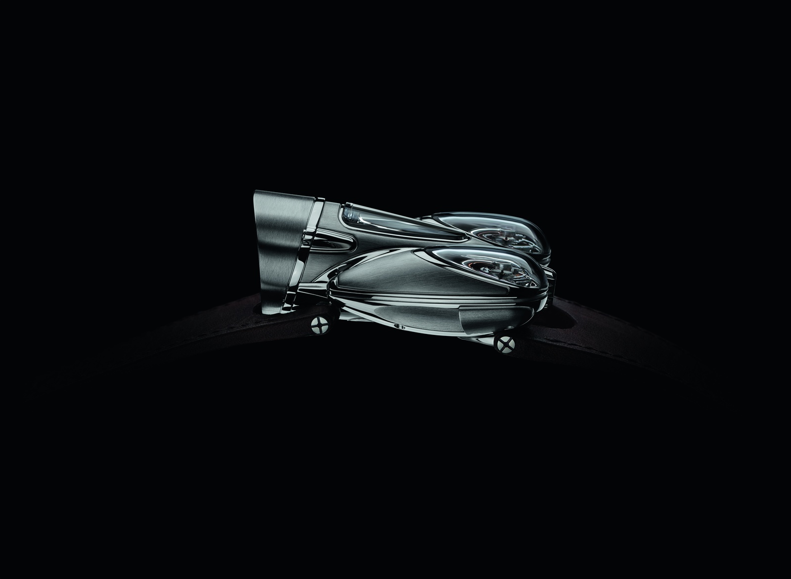 When the MB&F team first brought the HM9 designs to their manufacturing partners, the response was quick and unambiguous: these designs could not be realised. Other cases, such as the undulating shell of the HM6 Space Pirate, were geometrically complex, but their maximum height differential (the vertical distance between contiguous points) remained within 5mm. With HM9, that differential doubled, creating radical curves that give the case its highly tactile presence.