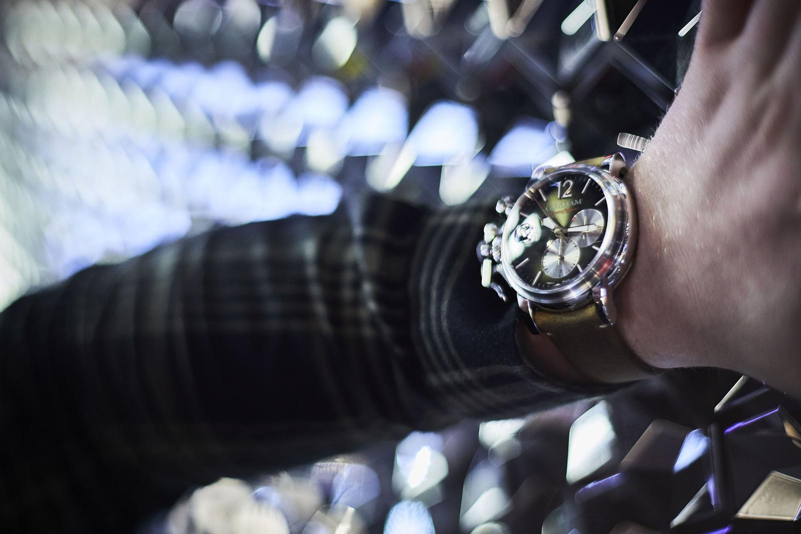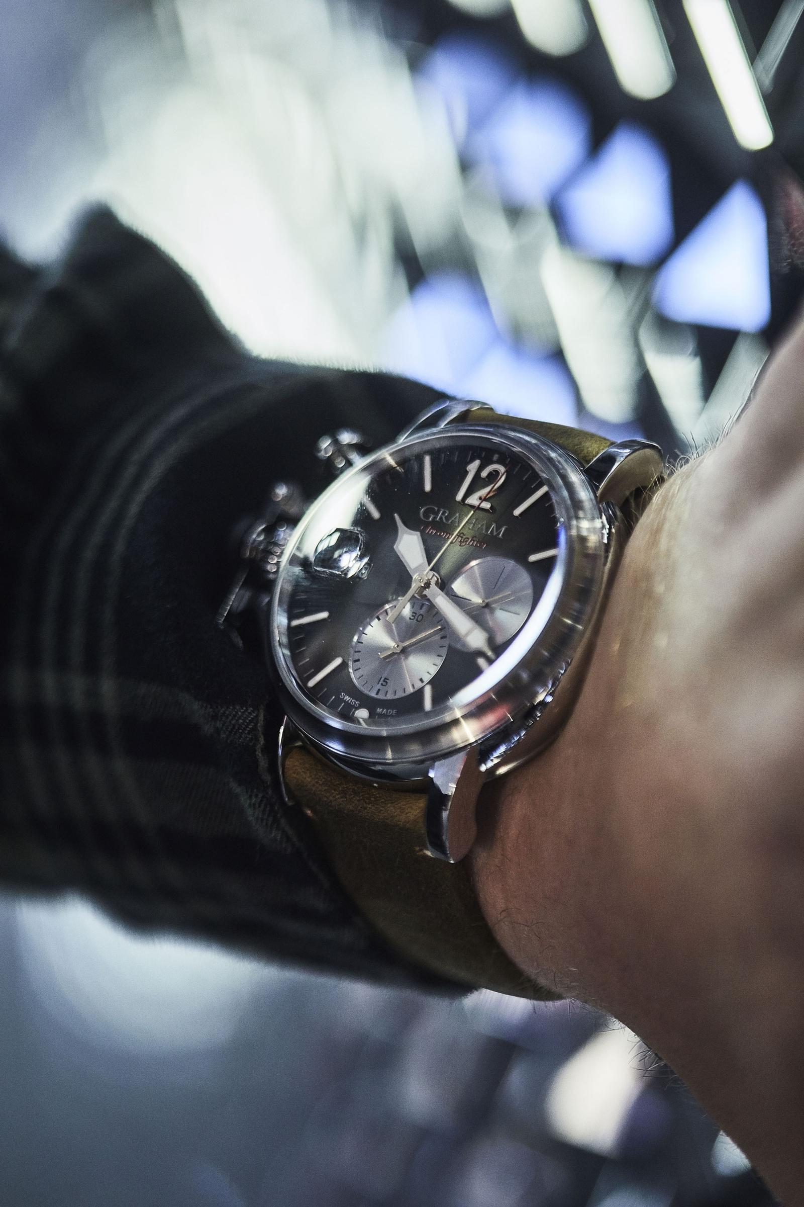 The Chronofighter Grand Vintage by Graham is exactly as big as it appears in the mirror