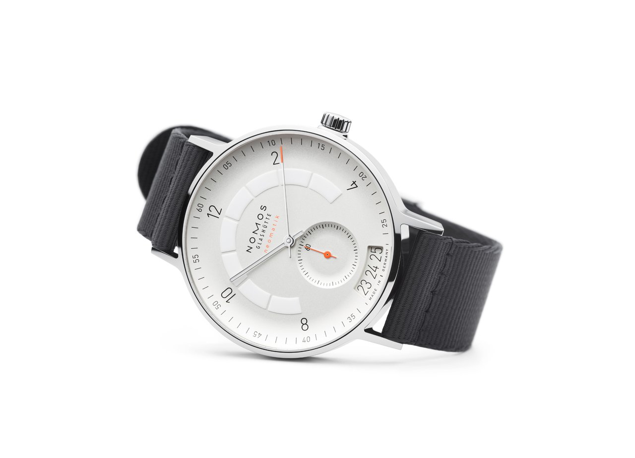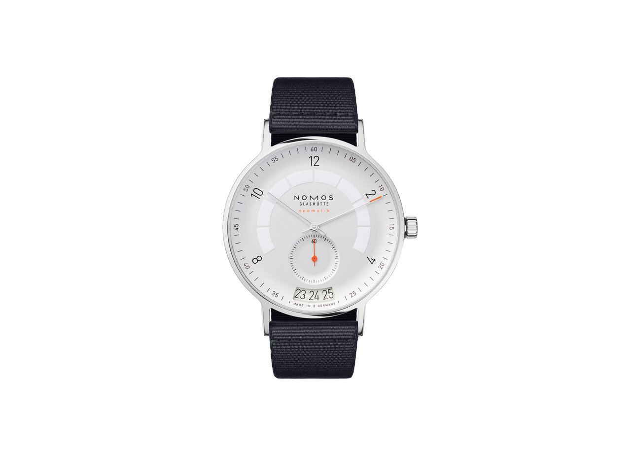 Autobahn it is a trio of dates: yesterday, today, and tomorrow. Another practical and innovative feature is the quick-set date, which is easy to adjust in both directions with the crown. An elegant and extra-durable textile strap completes the design. Werner Aisslinger and Judith Borowski, NOMOS CBO, both agree that Autobahn is “a watch with enough horsepower to become a classic.”