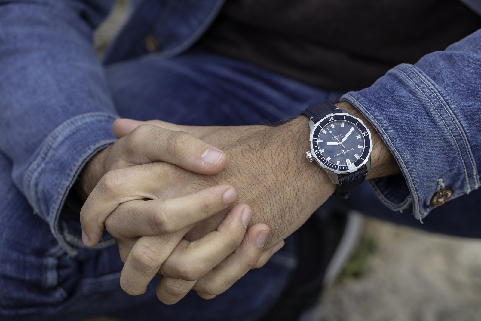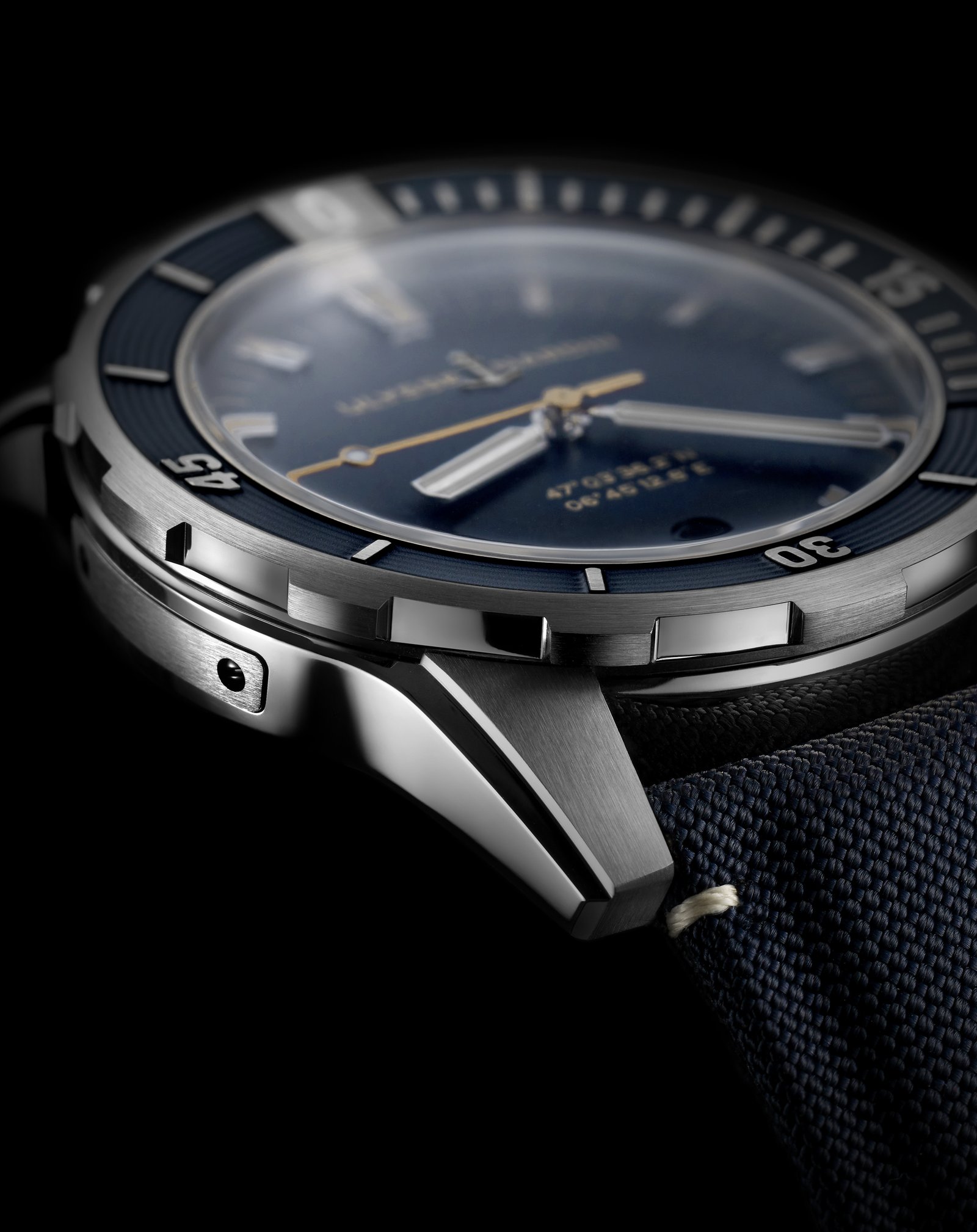 Slim and sleek on the wrist, the very contemporary Diver 42mm models are designed for the deep but just as much at home in the city. Led by the Diver blue shark, they join the new school of shark-inspired diving watches launched by Ulysse Nardin in September.