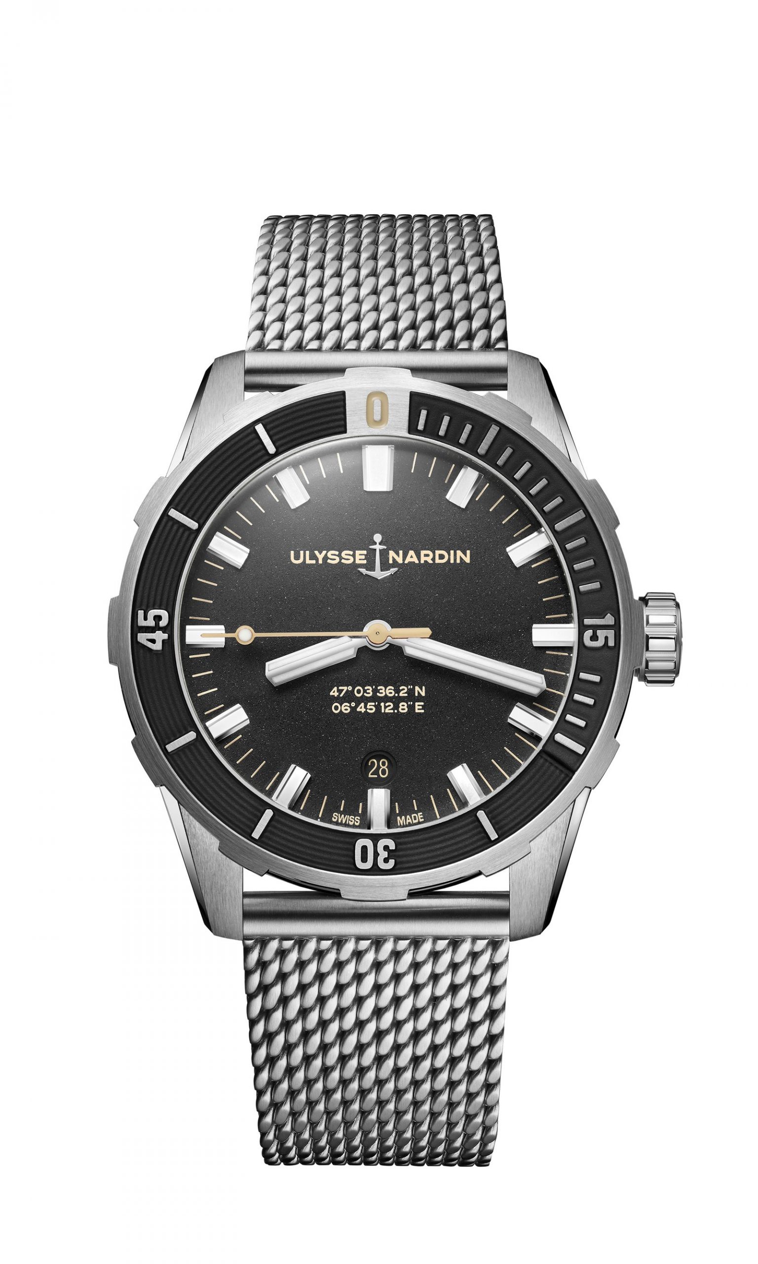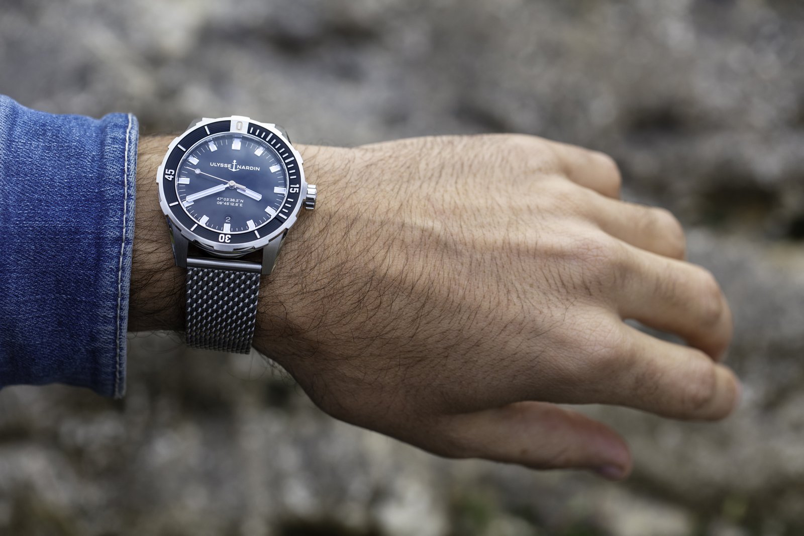 Gorgeous, super comfortable, and strong enough to have earned the nickname “shark-proof”, the Milanese mesh bracelet, when properly built, is the most versatile option in the classic watch strap repertoire. For this first-ever usage, Ulysse Nardin has opted for a very thick mesh, stamped from sheet steel, painstakingly stitched together by hand, and finished with a retro-styled butterfly buckle. The result is a dressy alternative to other metal bracelets, as easy chic, easy cool stylish as it is sturdy, go-anywhere rugged.