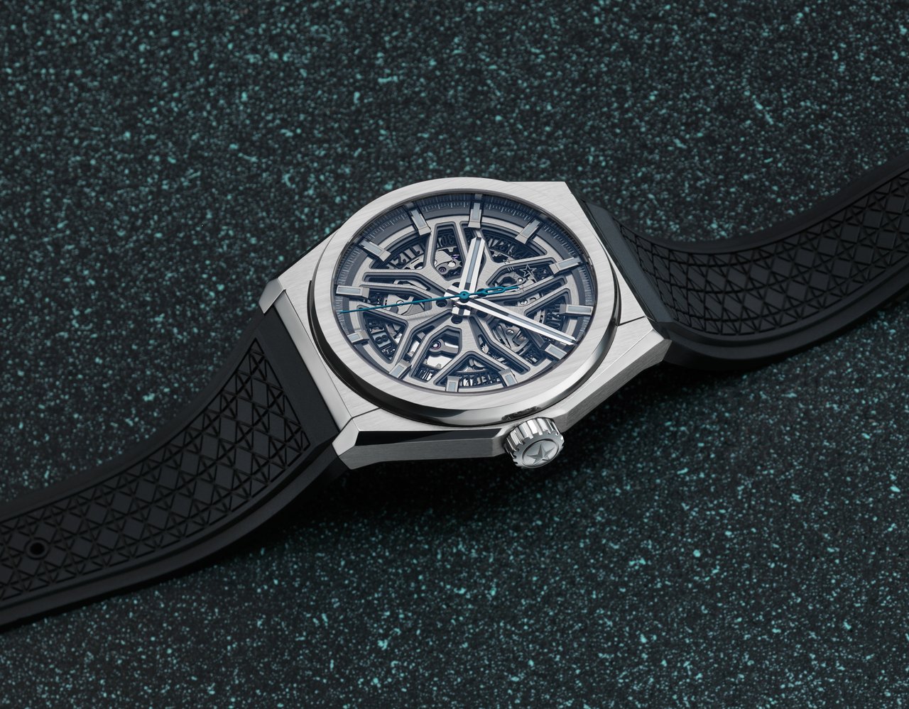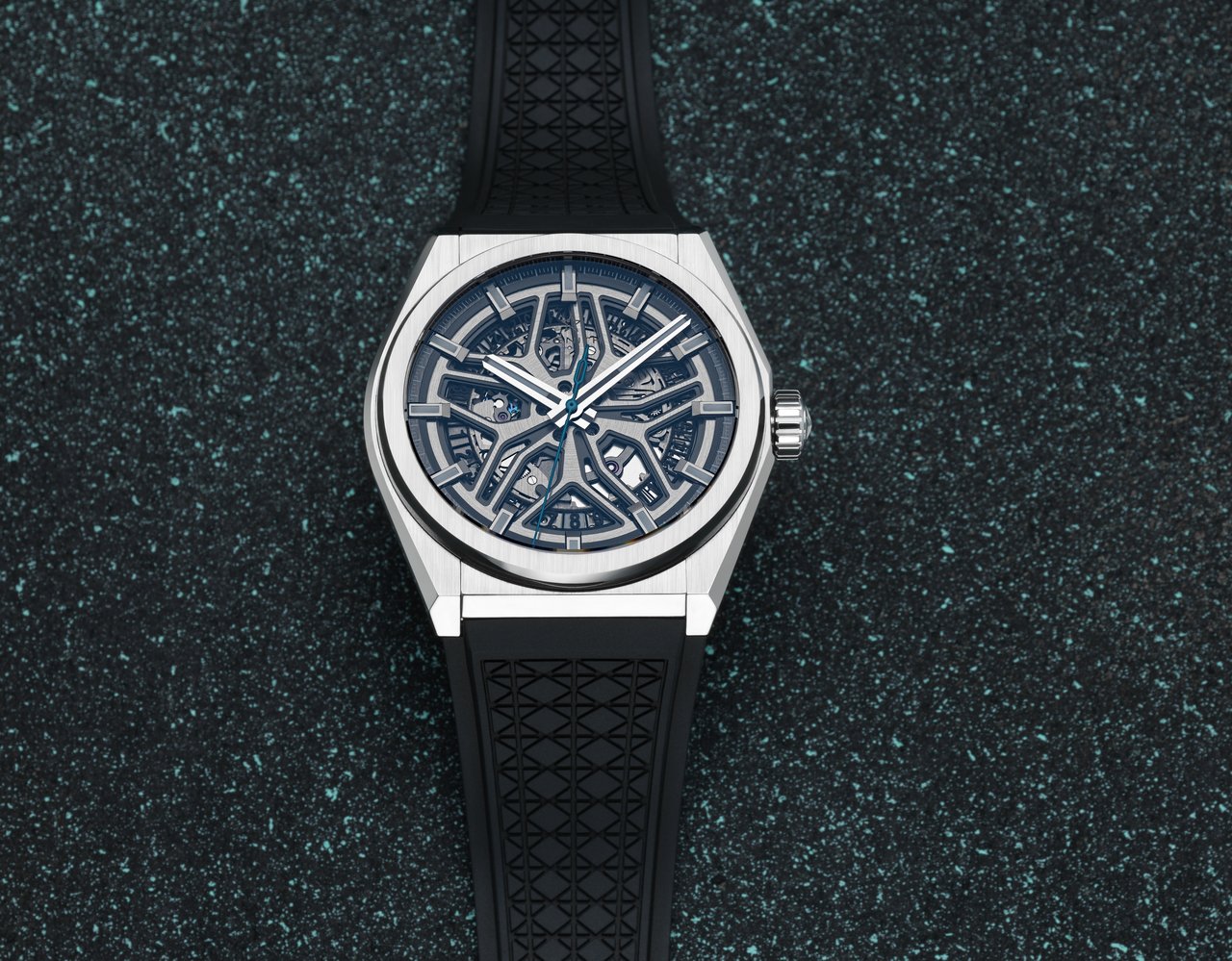 The open-worked dial of this sophisticated timepiece is inspired by the sculptural design of the wheel design of the Evoque, while the quilted-patterned upholstery of the premium SUV is picked up in the ‘diamond’ motif gracing the rubber strap of its horological alter ego. Powered by a new Elite skeletonised movement, ZENITH’s first reinterpretation of its Defy Classic collection radiates a unique allure based on an inspired and powerful design.