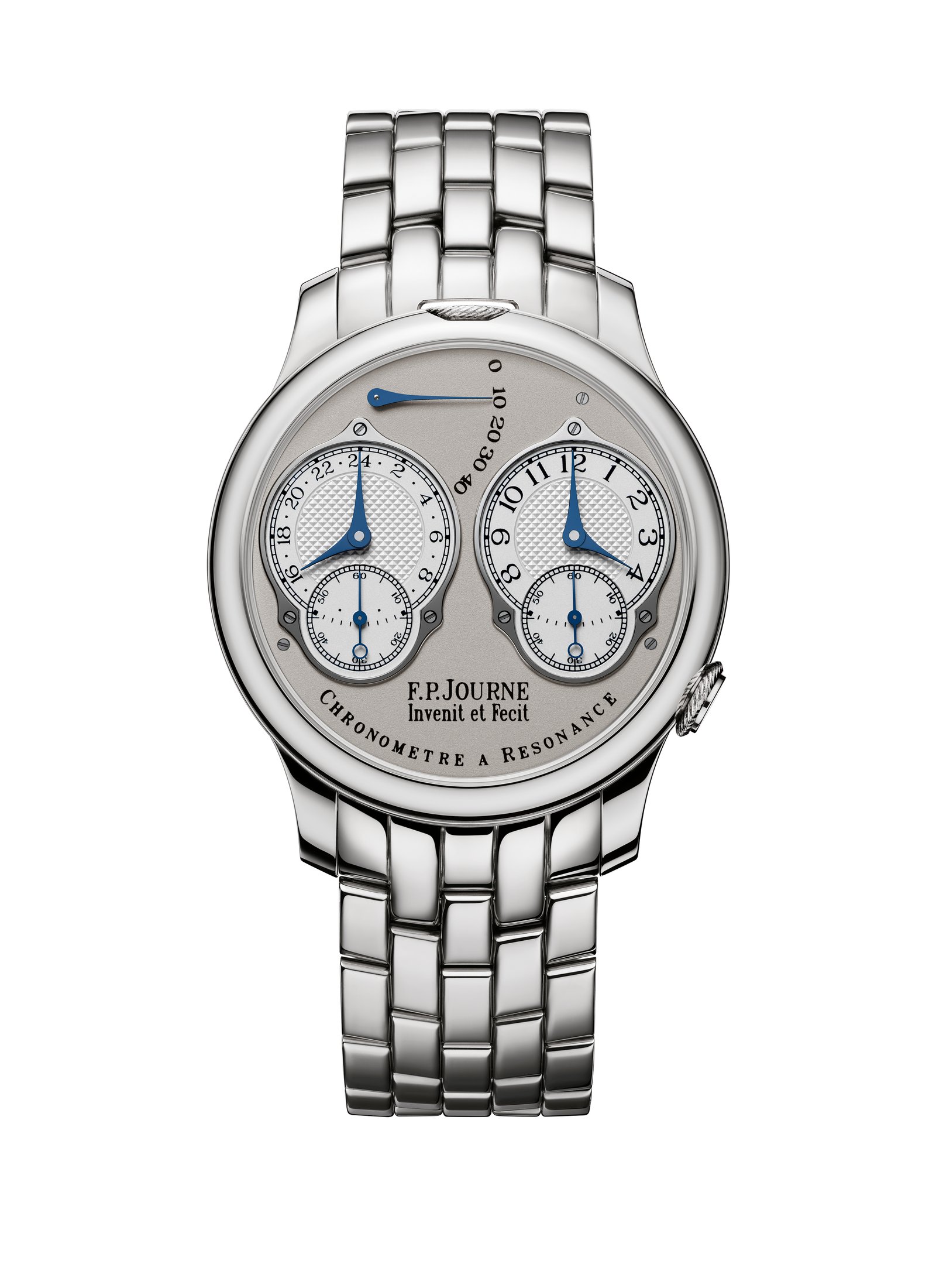 For the 20th Anniversary of the Chronomètre à Résonance, F.P.Journe proposes a version with a special dial that will be produced only during the year 2019. The hour dial at 3h maintains an analogue 12-hour indication while the dial at 9h features for this edition an analogue 24-hour indication.