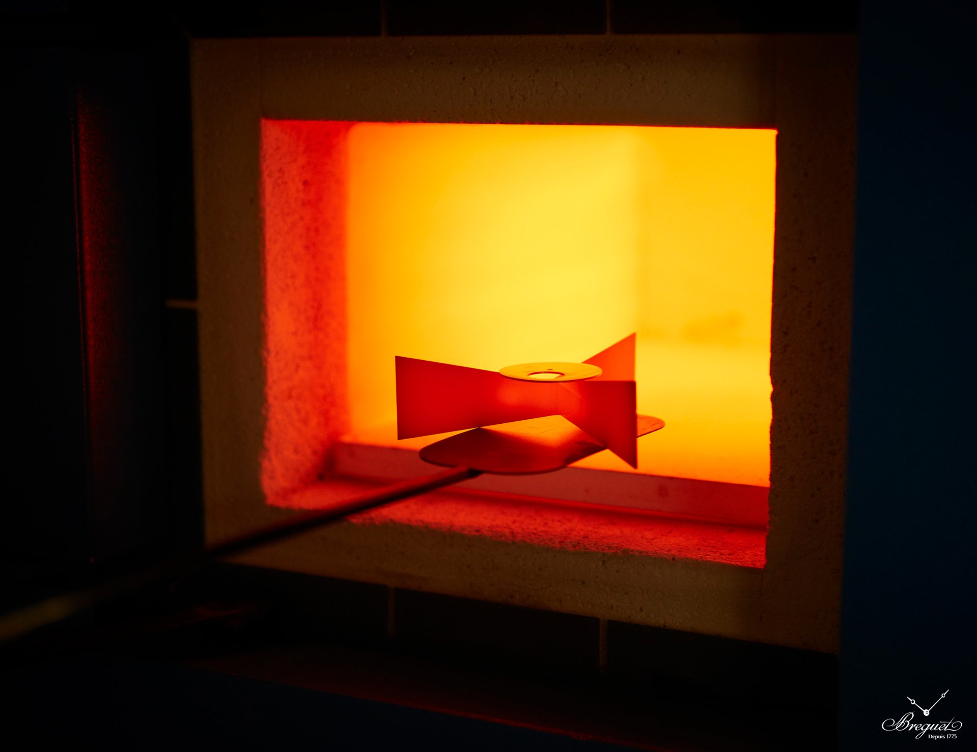 The hue of the dial echoes the colour obtained during the bluing of the Breguet hands. To guarantee this exact nuance throughout the production process, the development of the pigments called for extensive research. The colour needs to remain perfectly stable during firing at over 800 degrees Celsius. This is required to create a grand feu enamel, lending it a unique grain.