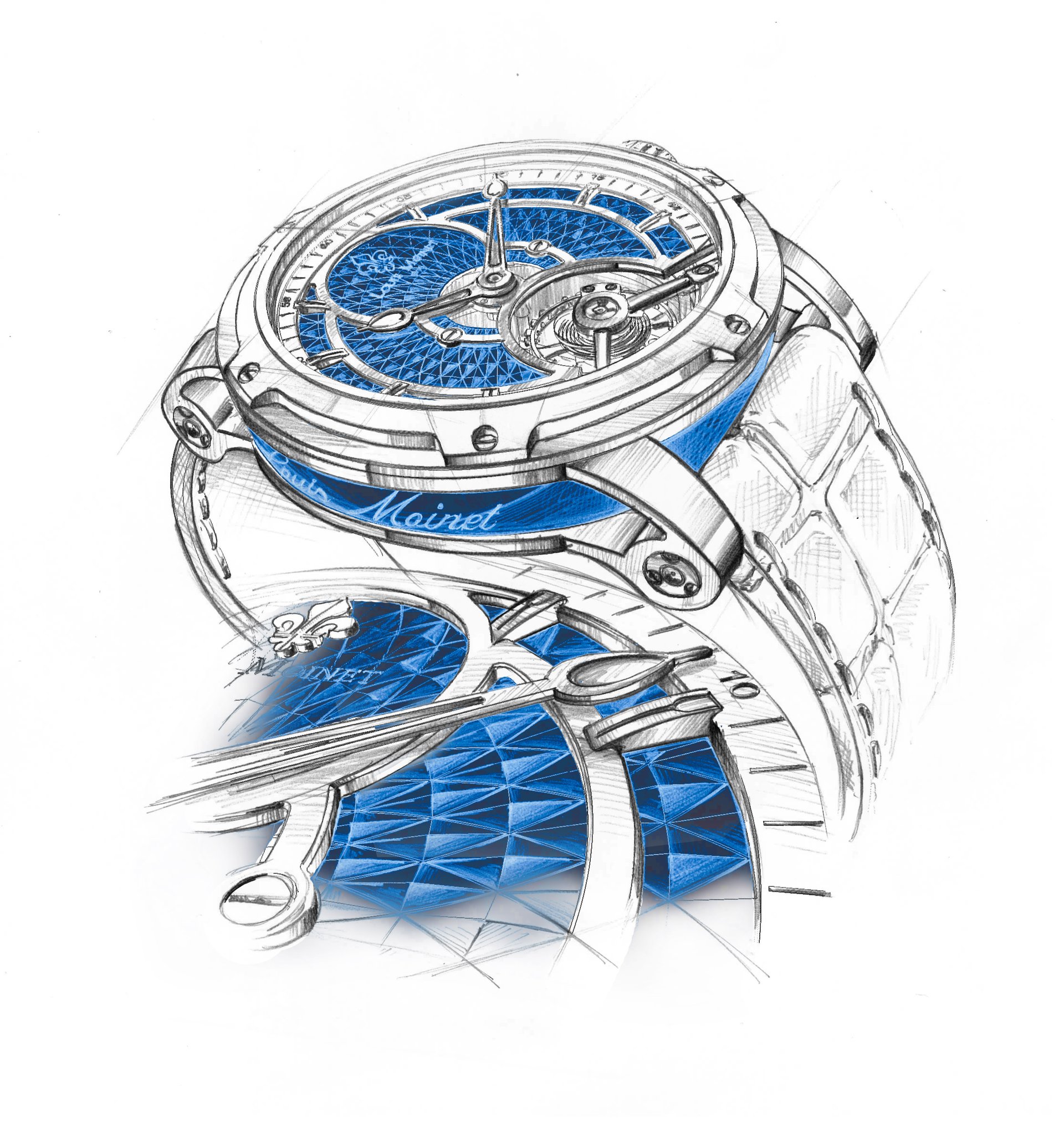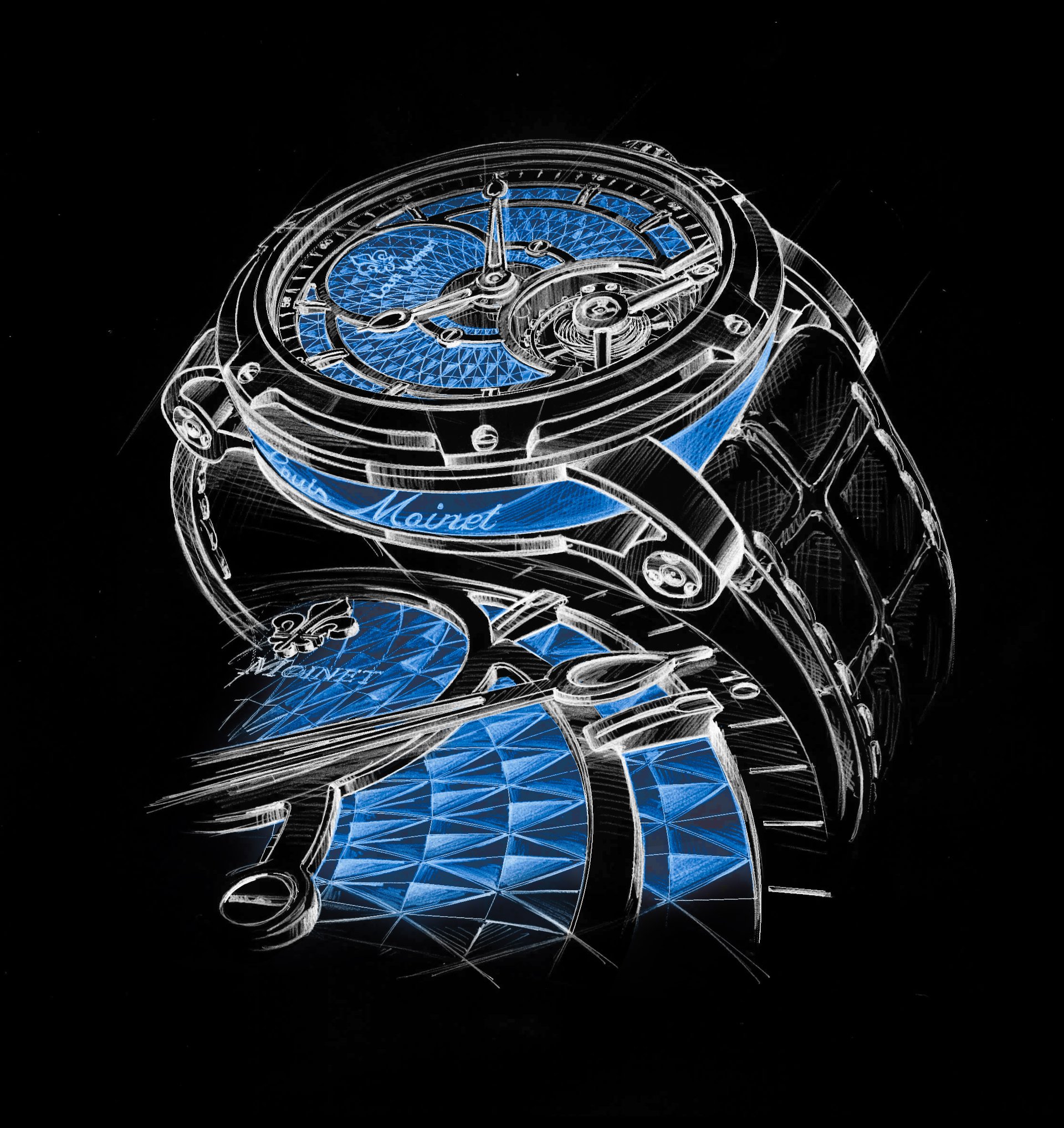 “The idea behind Mogador is to combine the energy and harmony of our new brand colours – Moinet blue and Polar silver. The result is a powerful, uncluttered creation, showing off the intensity of these hues,” explains Jean-Marie Schaller, CEO of Ateliers Louis Moinet.