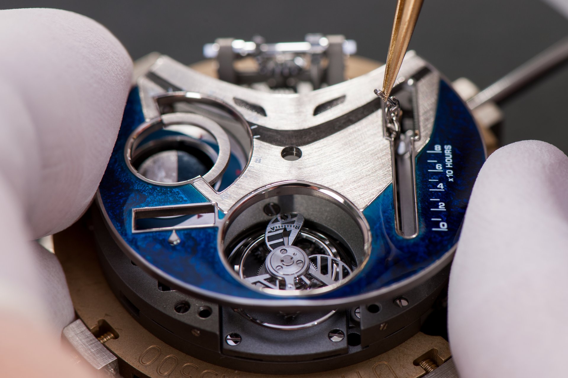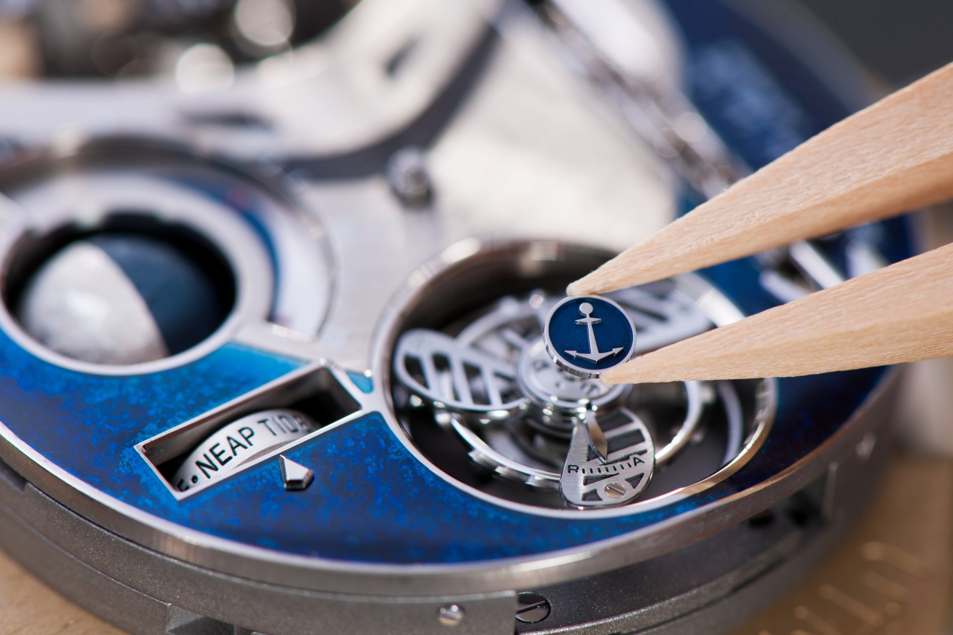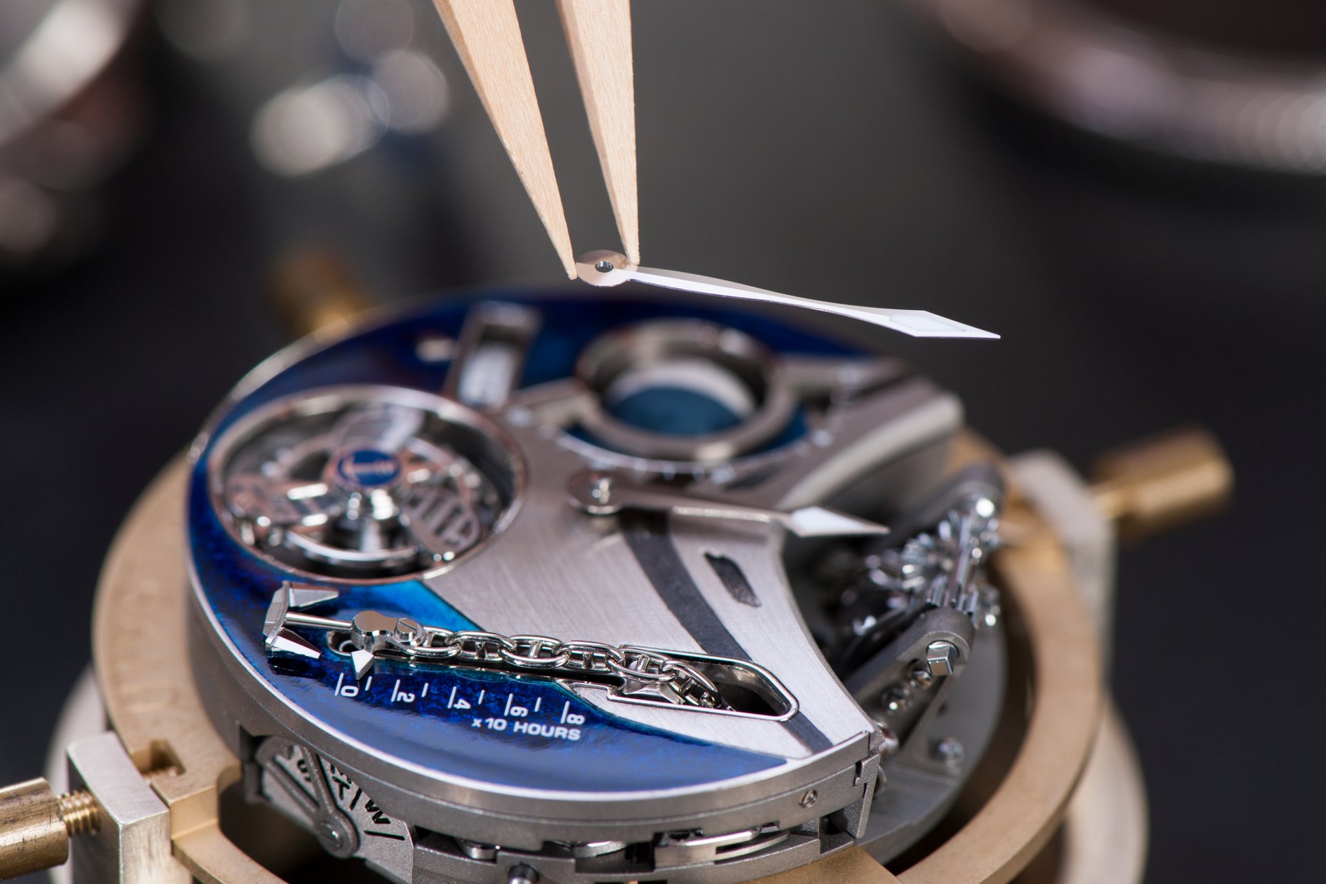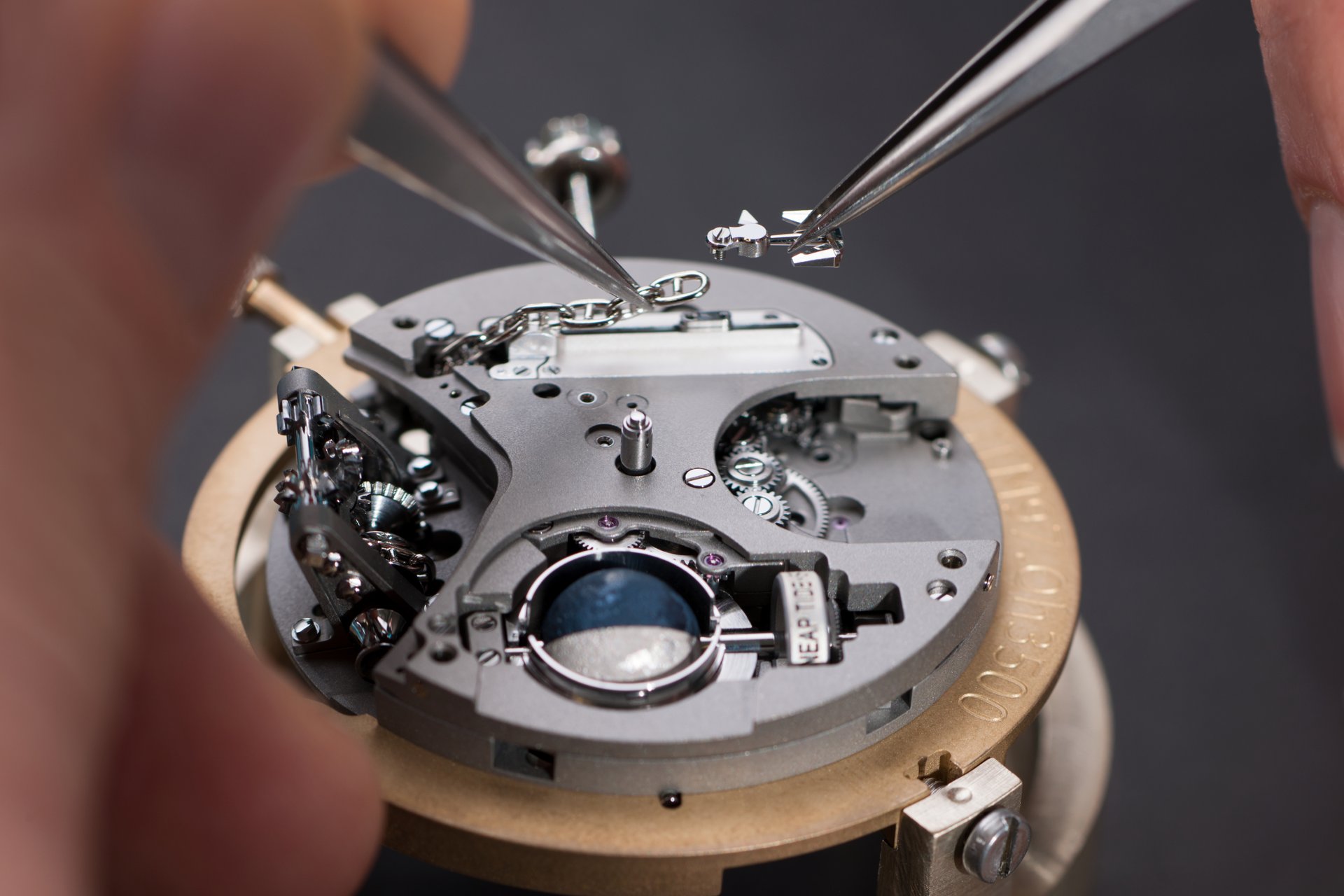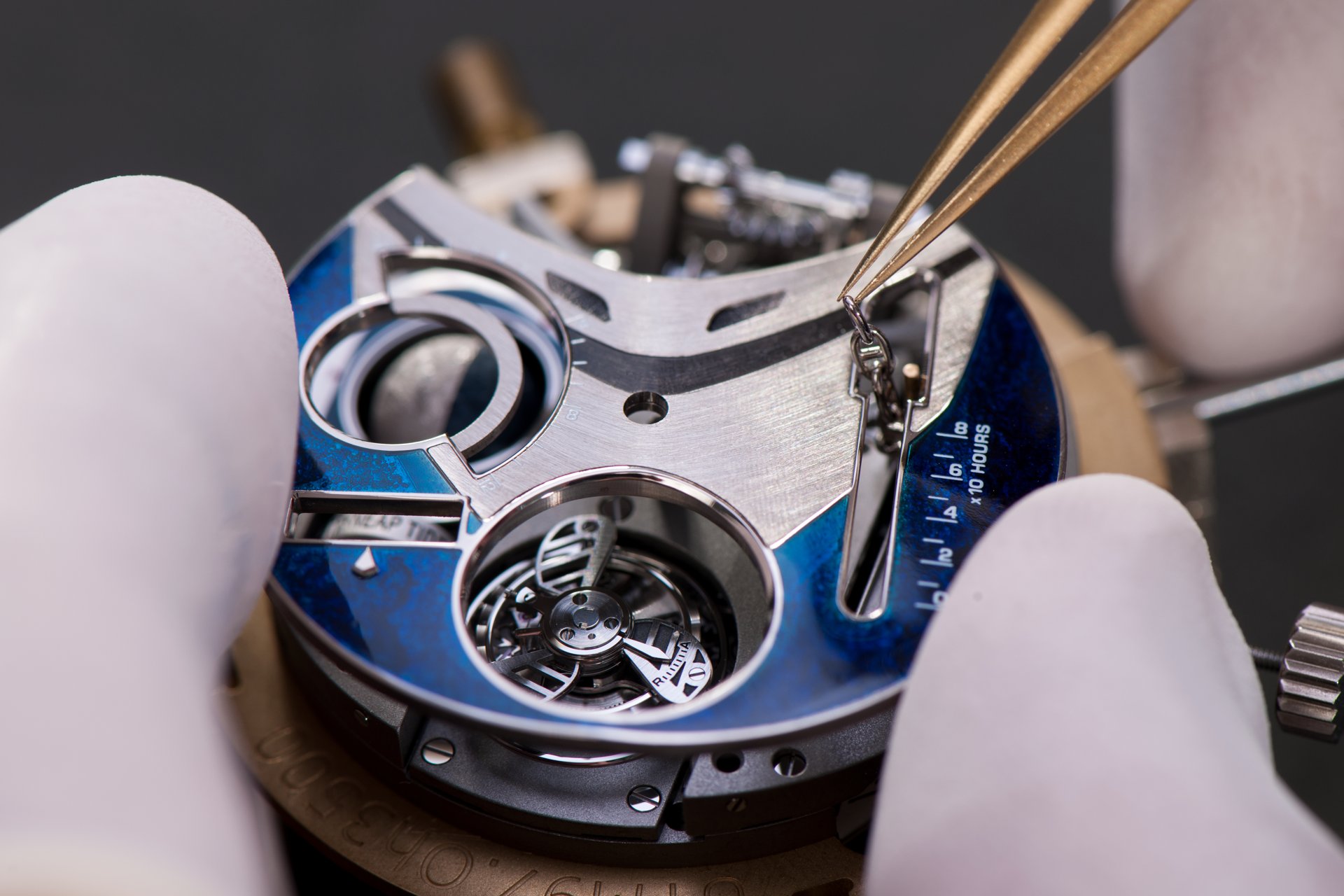 Case-back: Sapphire crystal displaying the movement inspired by a ship’s engine room