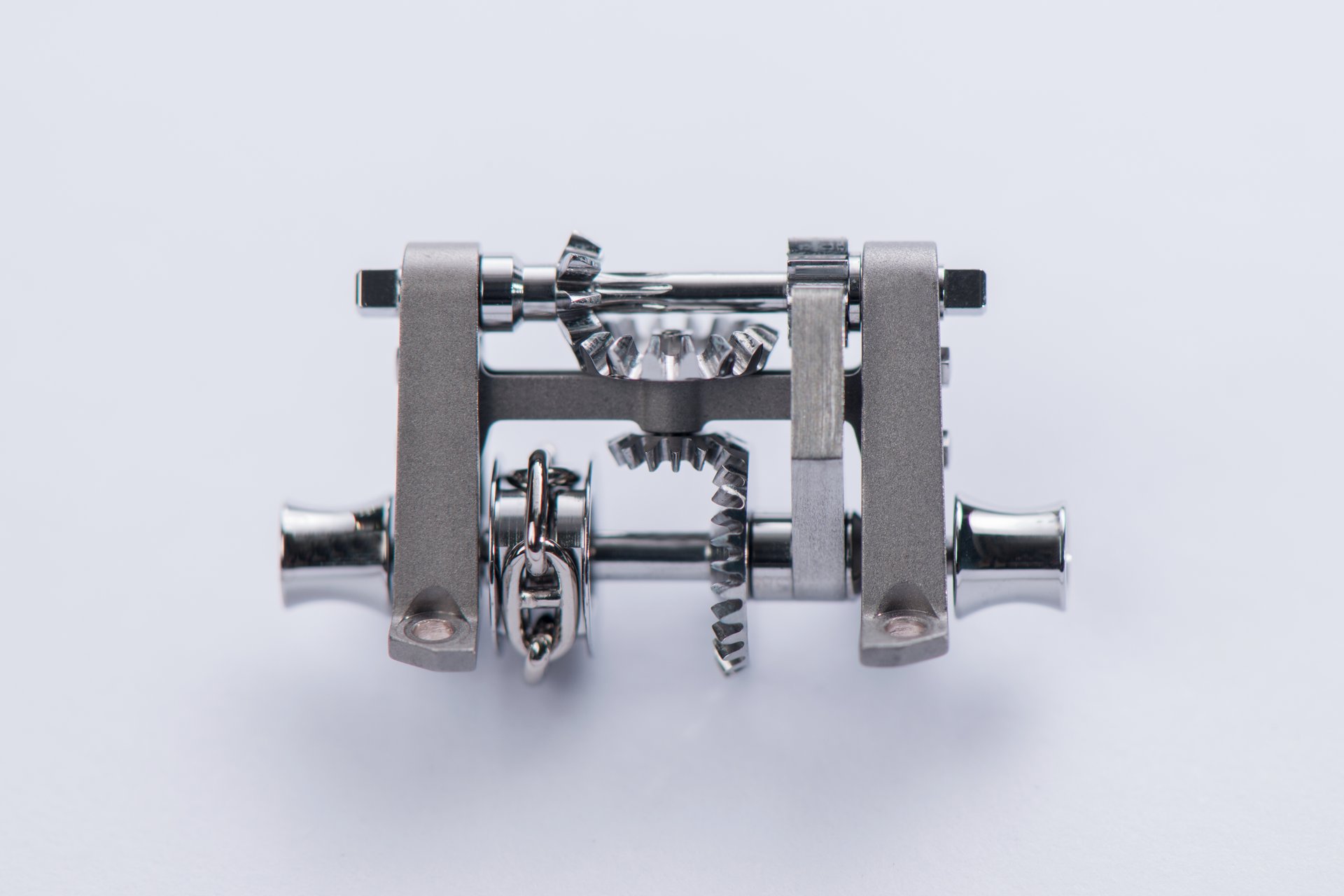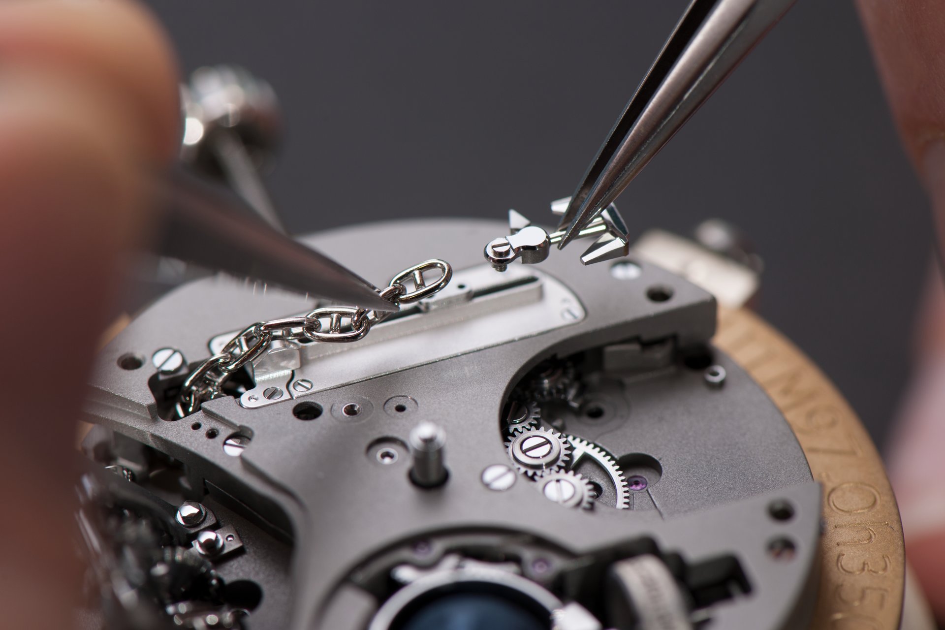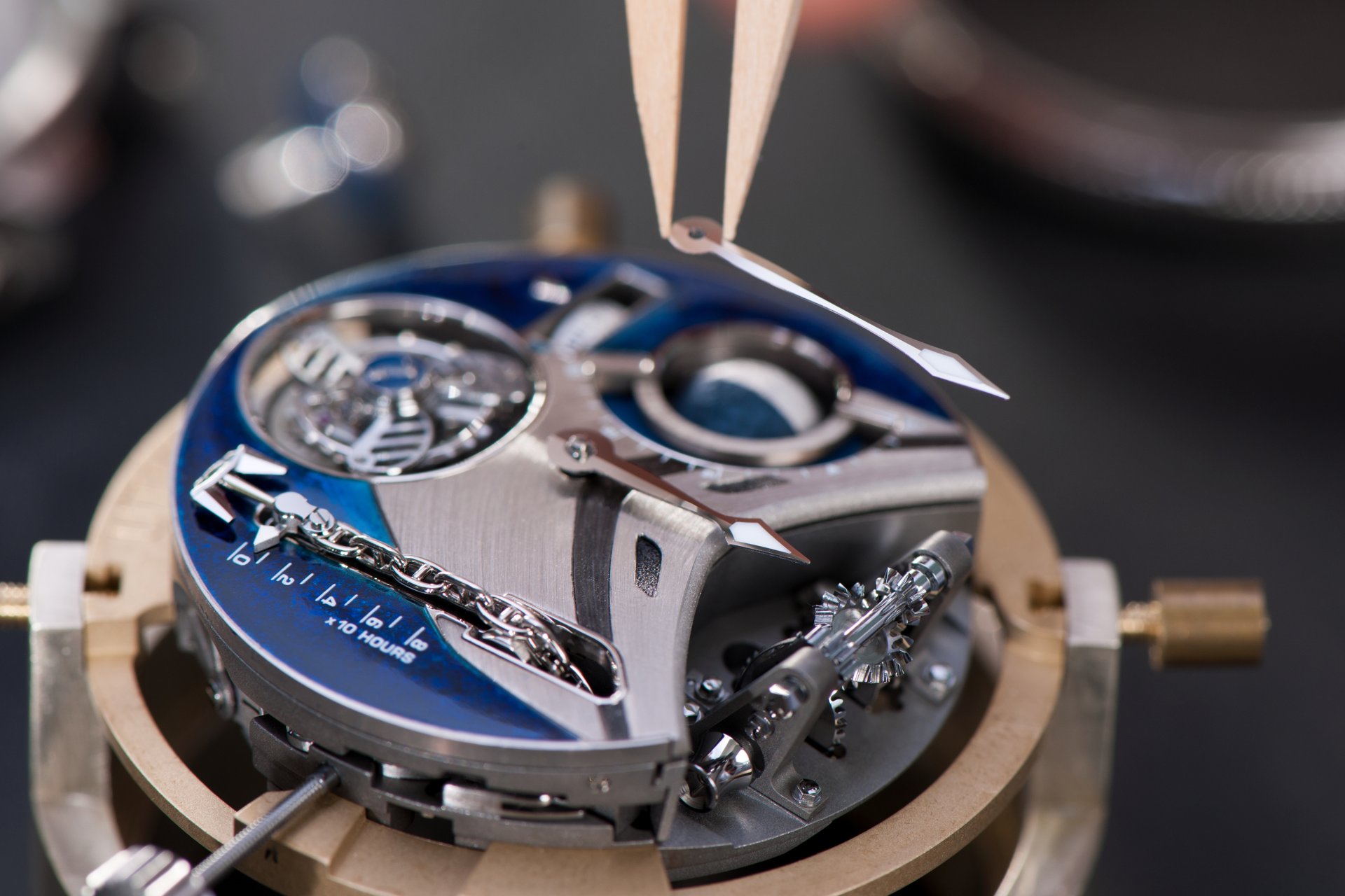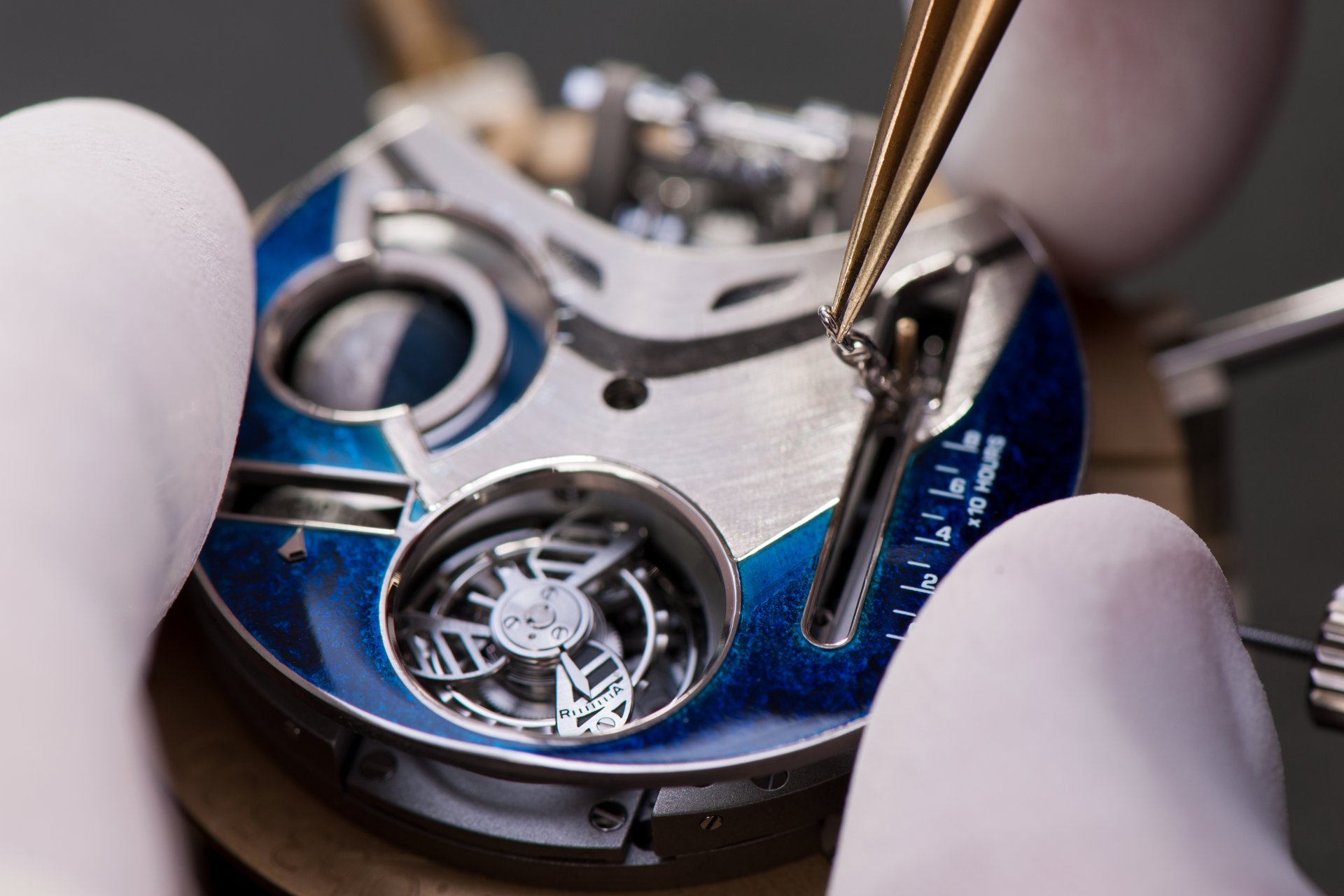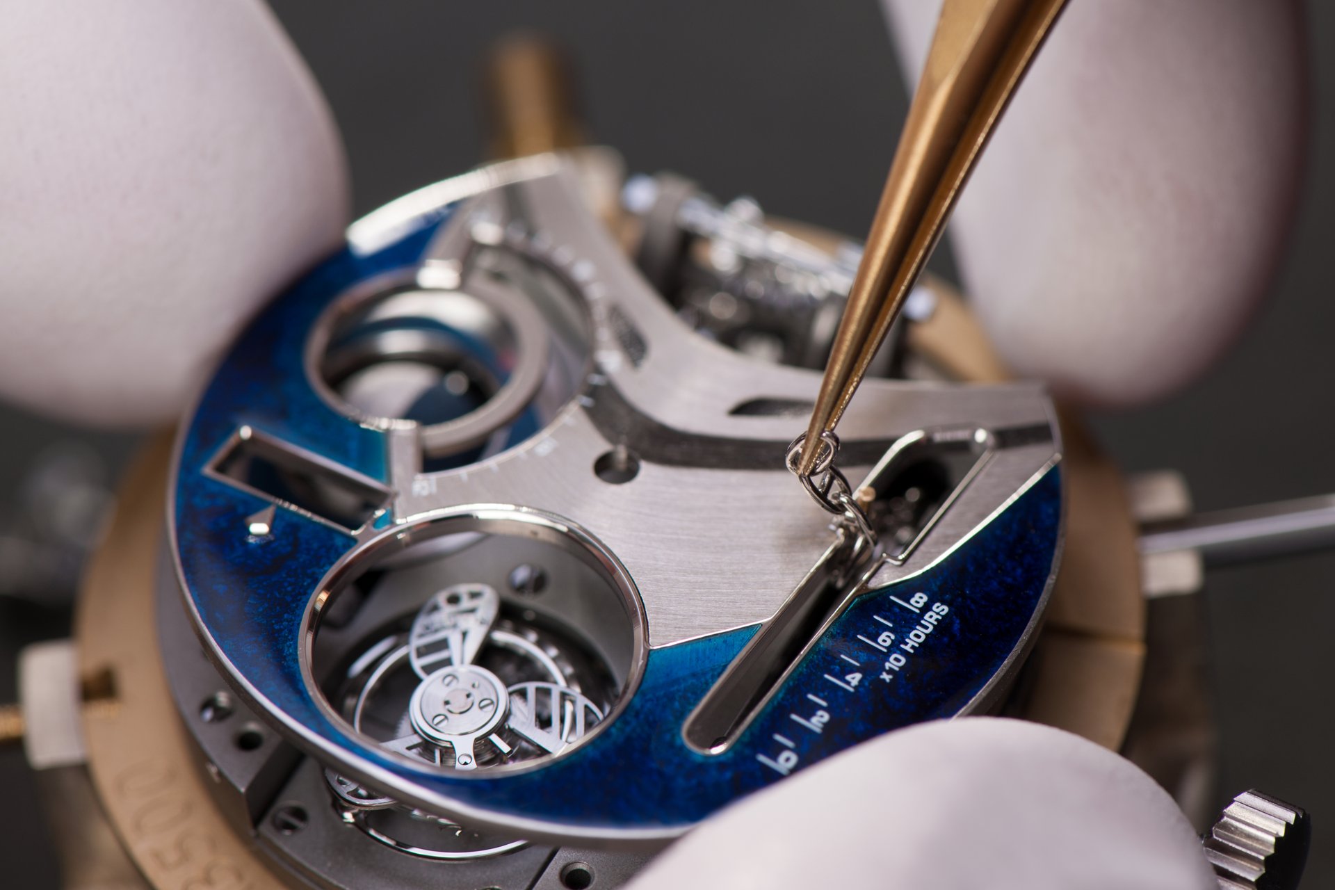 Case-back: Sapphire crystal displaying the movement inspired by a ship’s engine room