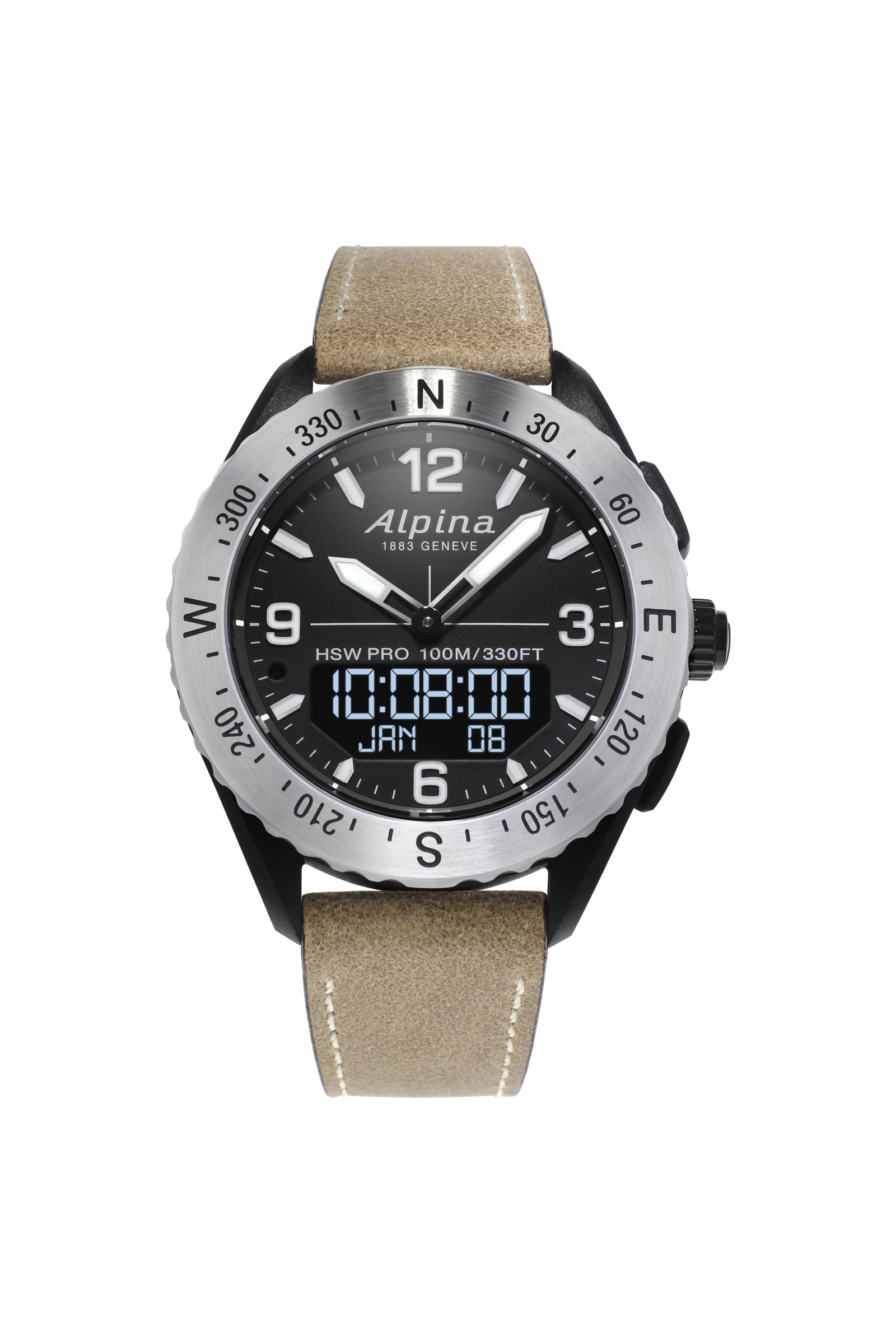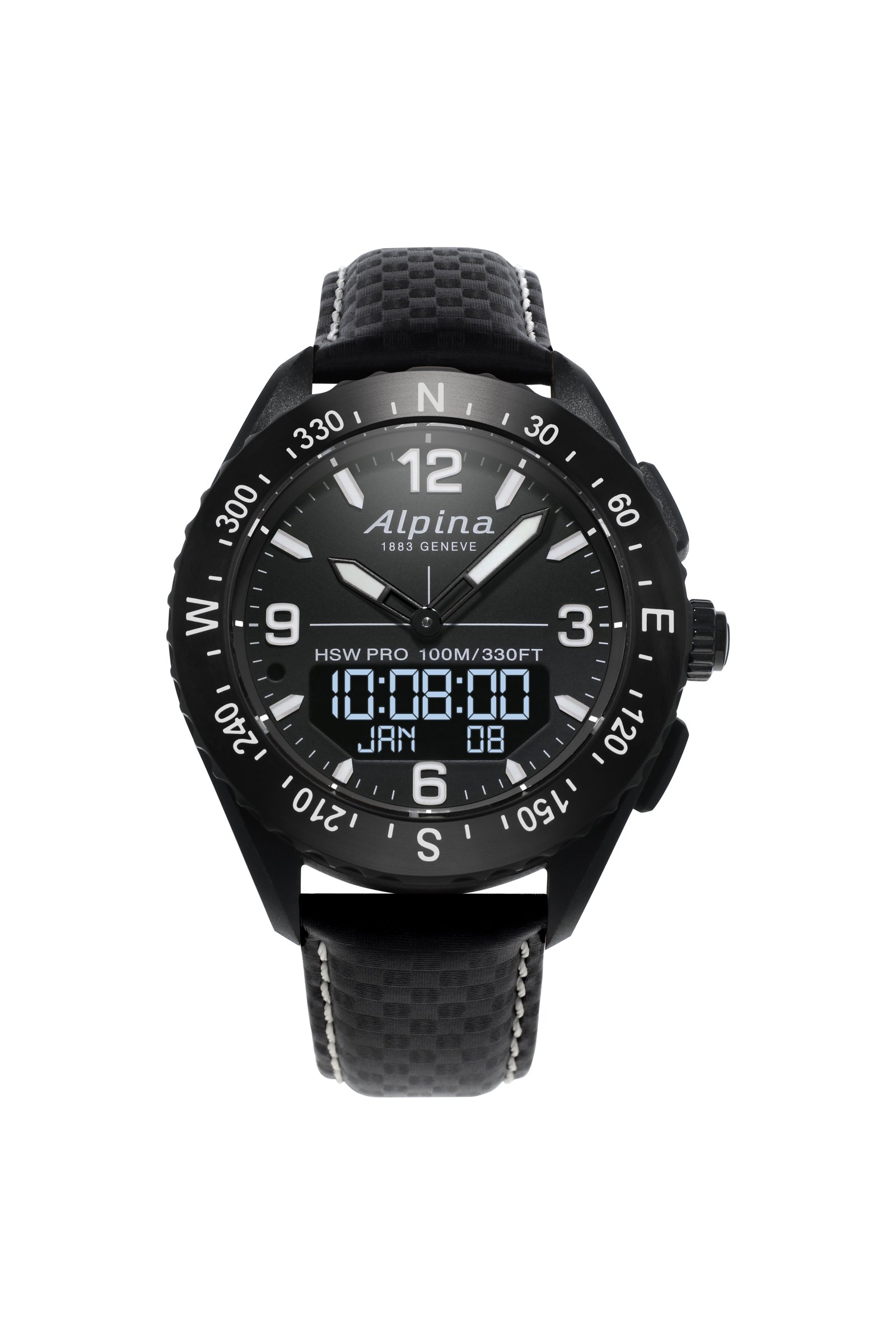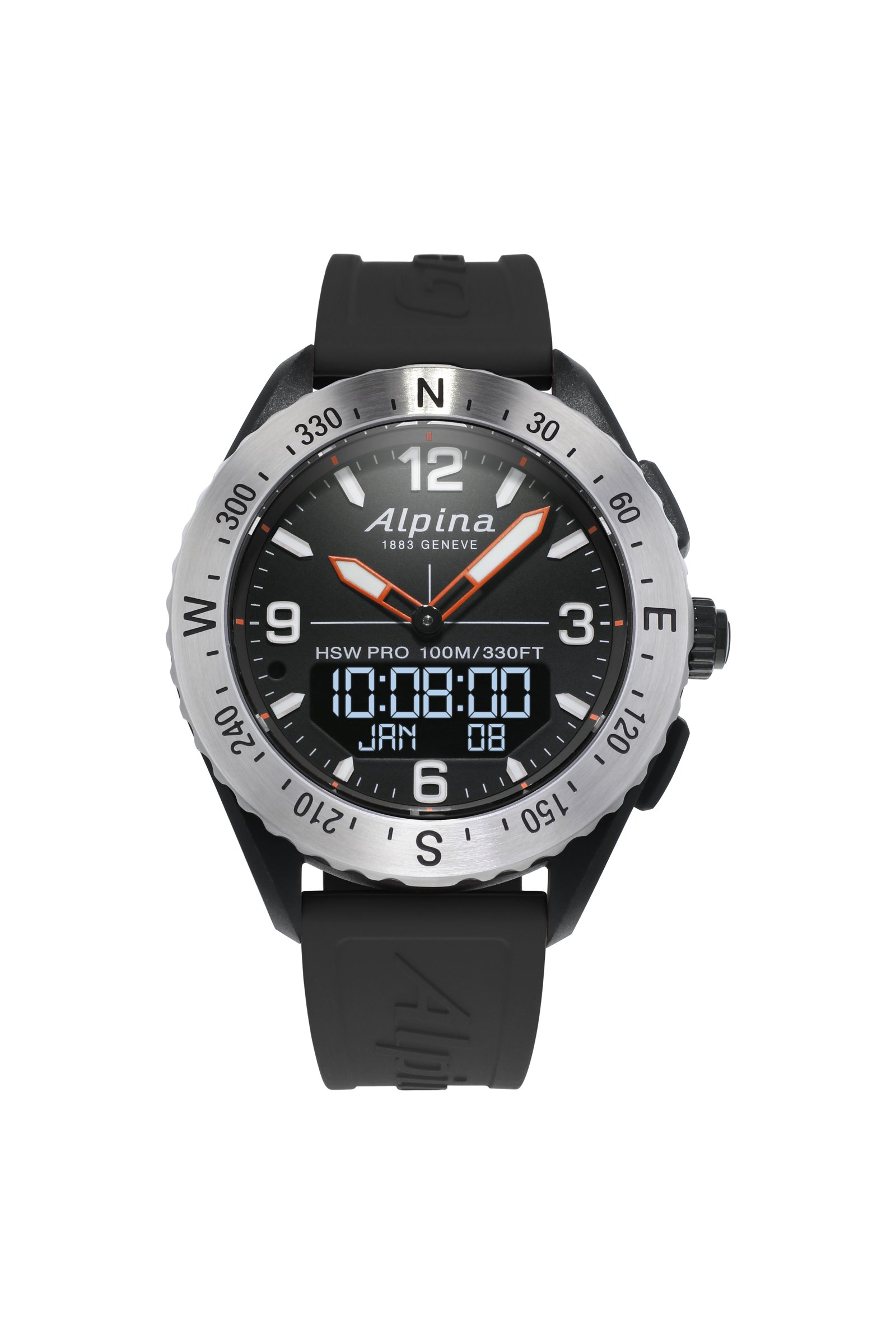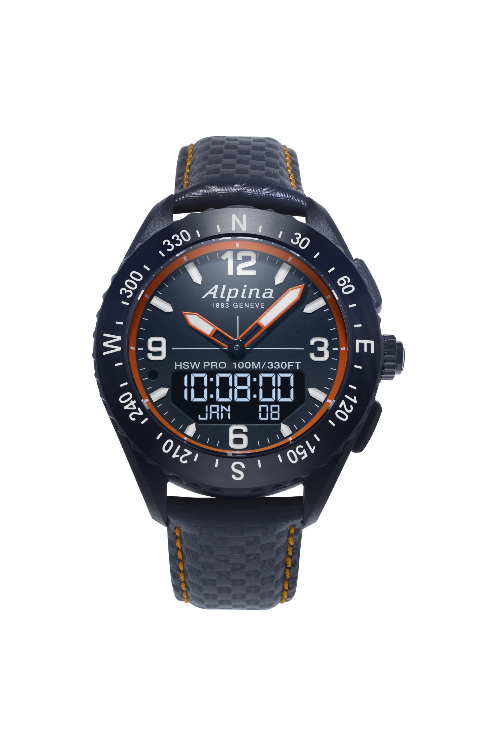 Each function is measured in real time by the watch and streams data to the user’s smartphone to analyze activity and identify areas for improvement while allowing the AlpinerX to receive smartphone notifications on its digital screen.