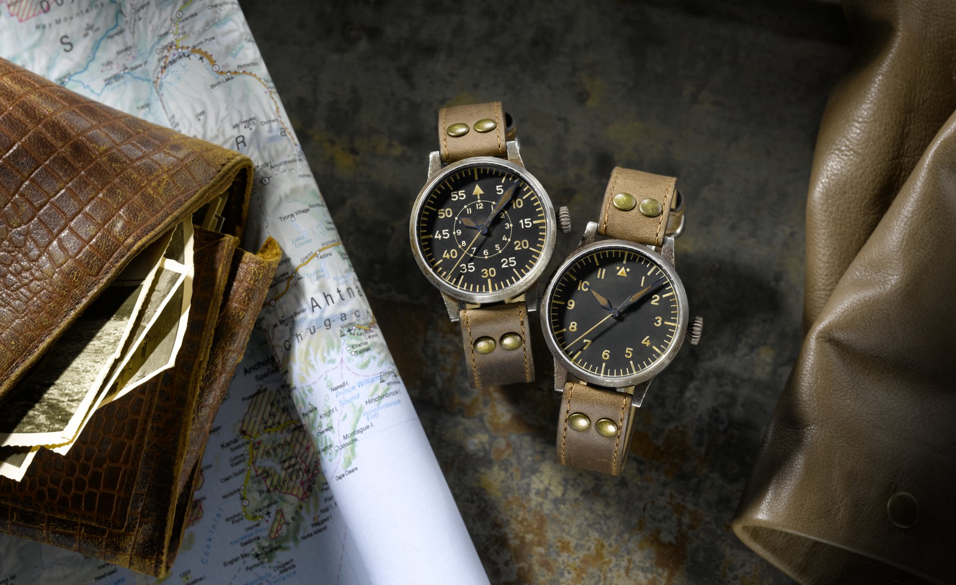 One proven specialist in this area is the Laco watch brand. This company based in Pforzheim, southern Germany, has been expertly crafting professional pilot‘s watches for over 80 years. These 1940‘s-style watches are particularly sought-after among keen collectors, and they form a quintessential part of company‘s history. To recapture the charm and authenticity of the original, Laco has been developing an innovative surface finish technique that triggers an artificial ageing process. The result is all those special characteristics valued by enthusiasts of the old B-watches: hints of rust on the casing, minute scratches and subtle discolourations. They are genuine “Erbstücke” (means: heirlooms).
