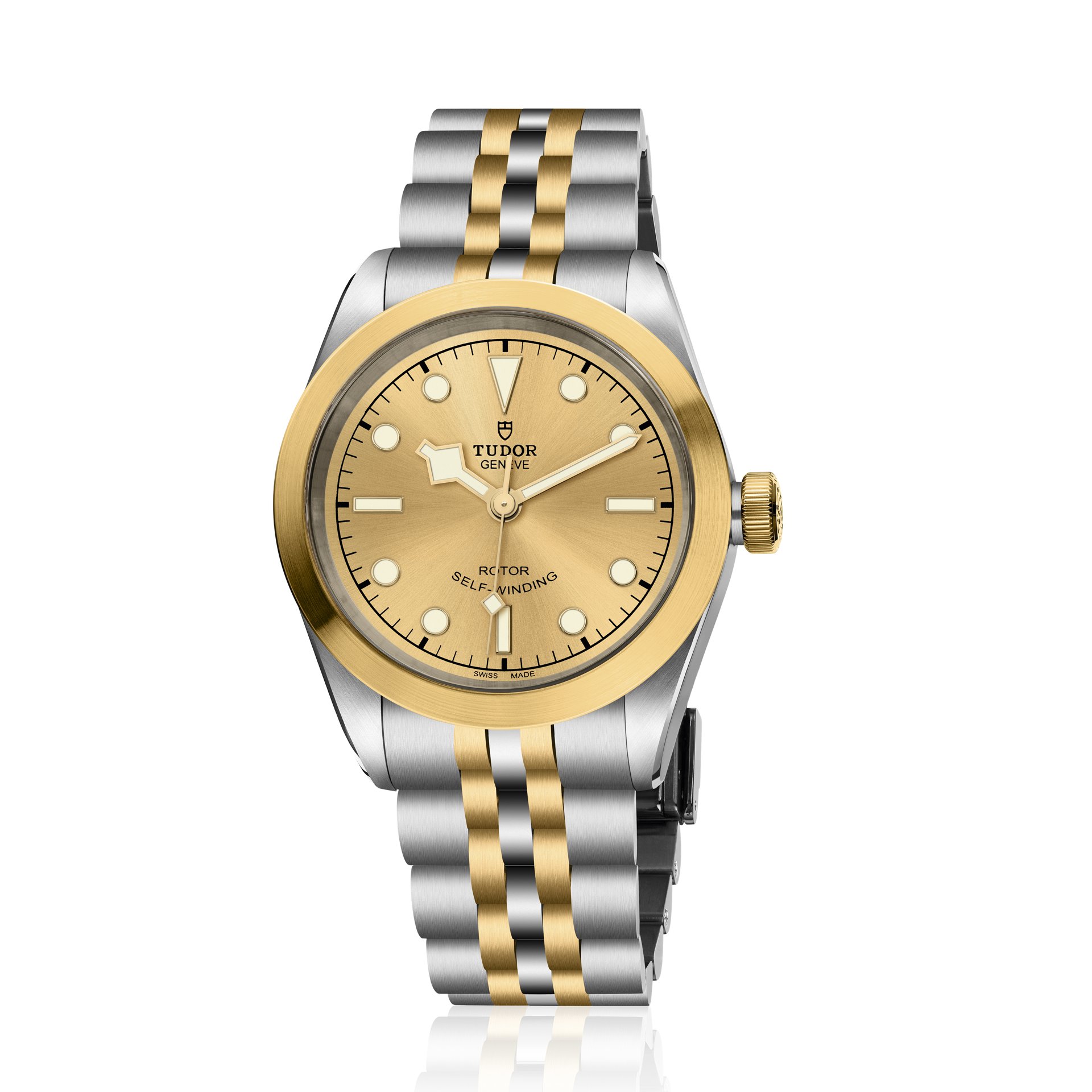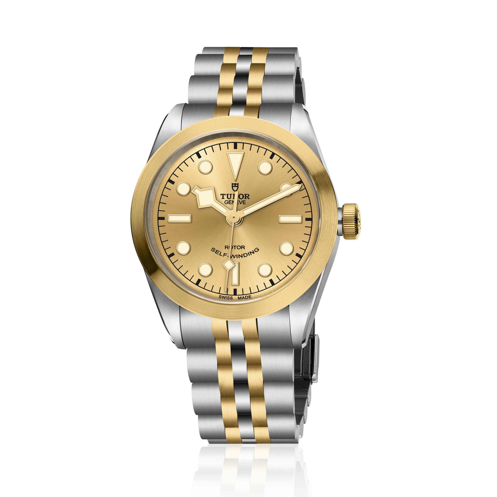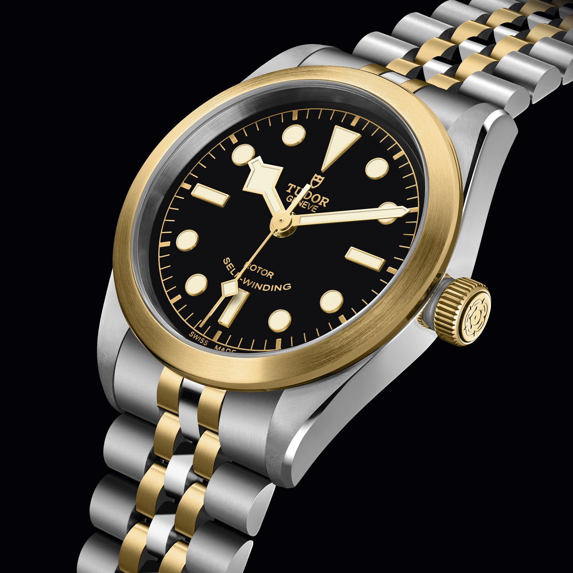 Just as sporty and even more elegant than ever, the Black Bay 32/36/41 S&G (Steel & Gold) models retain the aesthetic features of the Black Bay line, together with the reliability and historical connection to TUDOR divers’ watches. In the same spirit as the brand’s previous S&G models, this introduction adds a precious quality to the timepiece. Combining polished steel and yellow gold satin-brushed surfaces offers a subtle contrast and distinction as well as warmth to the case and bracelet. The choice between a matt black or satin-brushed champagne-coloured dial allows the wearer to further refine the watch’s aesthetics, bringing distinction for the former and radiance for the latter