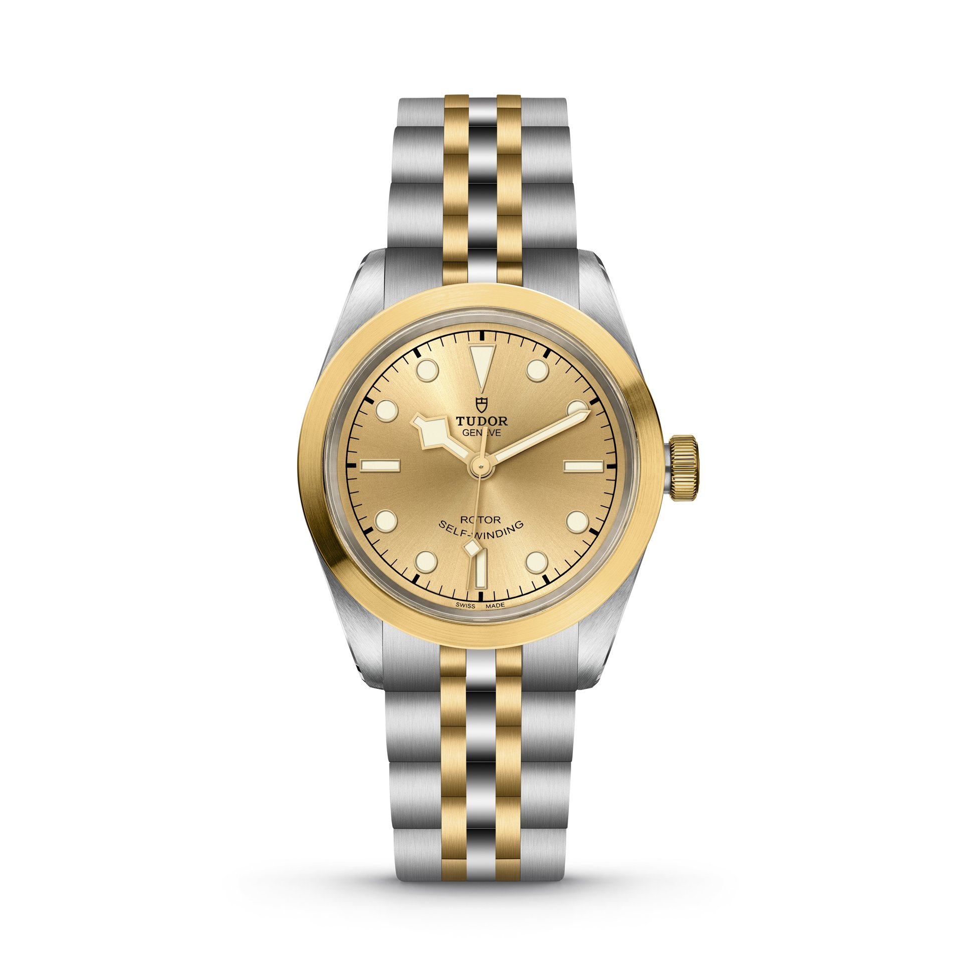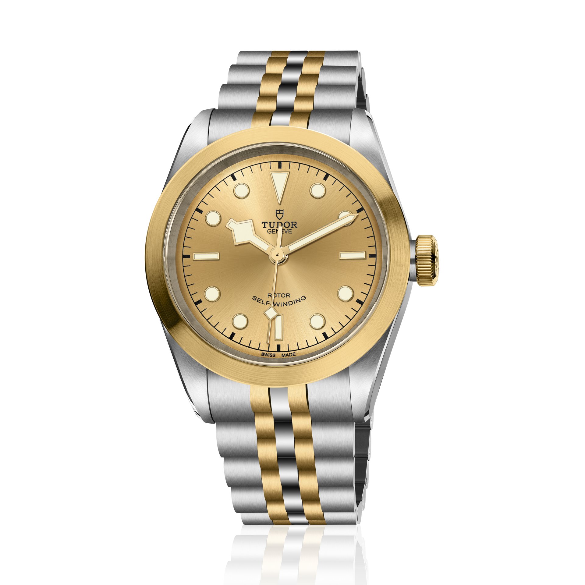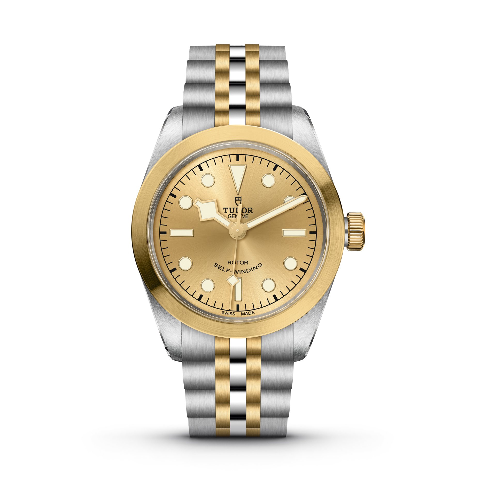 Just as sporty and even more elegant than ever, the Black Bay 32/36/41 S&G (Steel & Gold) models retain the aesthetic features of the Black Bay line, together with the reliability and historical connection to TUDOR divers’ watches. In the same spirit as the brand’s previous S&G models, this introduction adds a precious quality to the timepiece. Combining polished steel and yellow gold satin-brushed surfaces offers a subtle contrast and distinction as well as warmth to the case and bracelet. The choice between a matt black or satin-brushed champagne-coloured dial allows the wearer to further refine the watch’s aesthetics, bringing distinction for the former and radiance for the latter