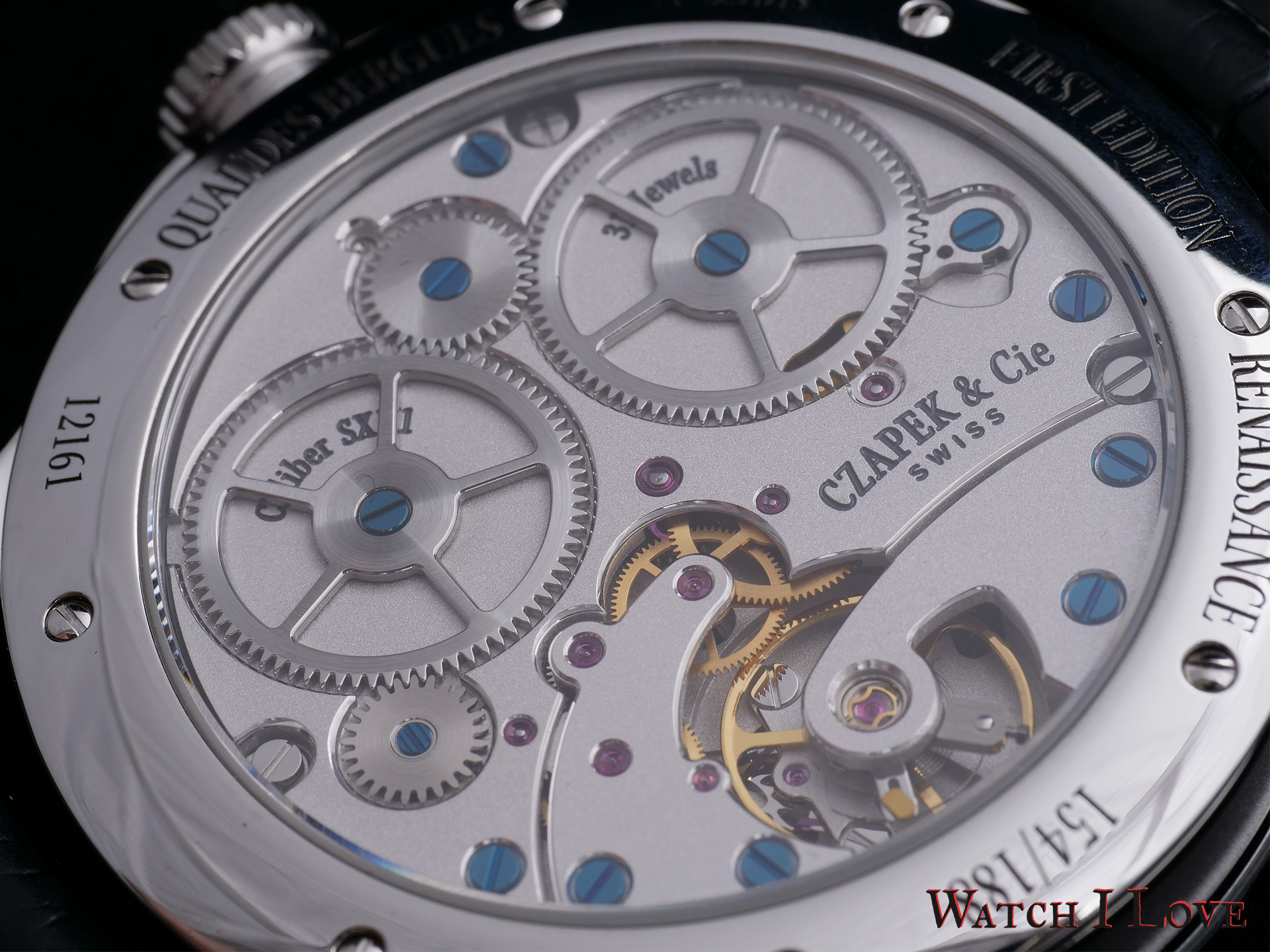 The movement is inspired in shape in function by the Czapek’s 1850 calibre. With a modern design and haute horlogerie finishes, the calibre SXH1 is part of the exquisite family of independent created and manufactured movements.
