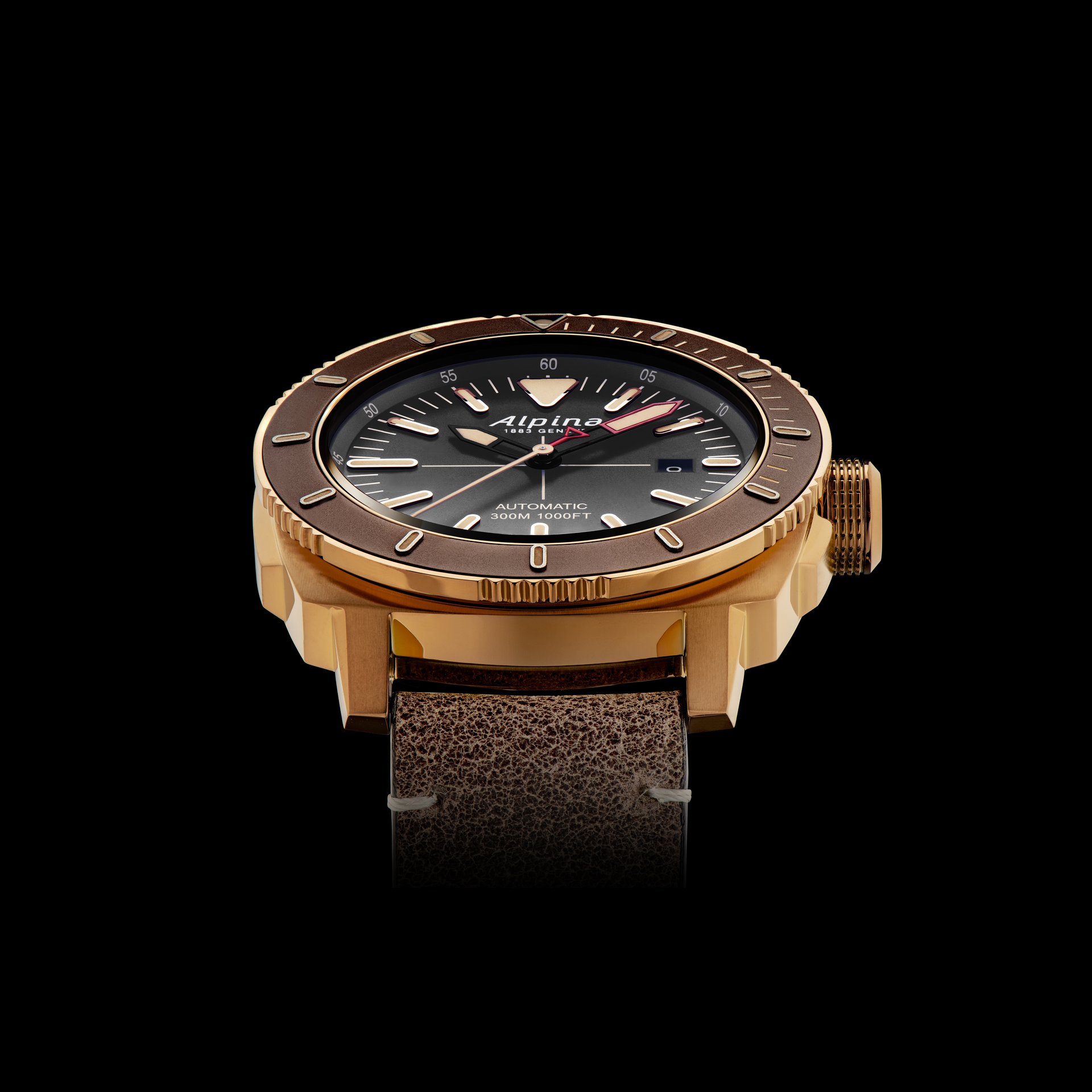 The Seastrong Diver 300 presents a brand new 44m titanium or bronze PVD coated case, with either a grey, black or navy blue 60-minute unidirectional bezel and a dark brown, grey or navy blue dial which highly contrasts with the large luminous indexes and hands.
