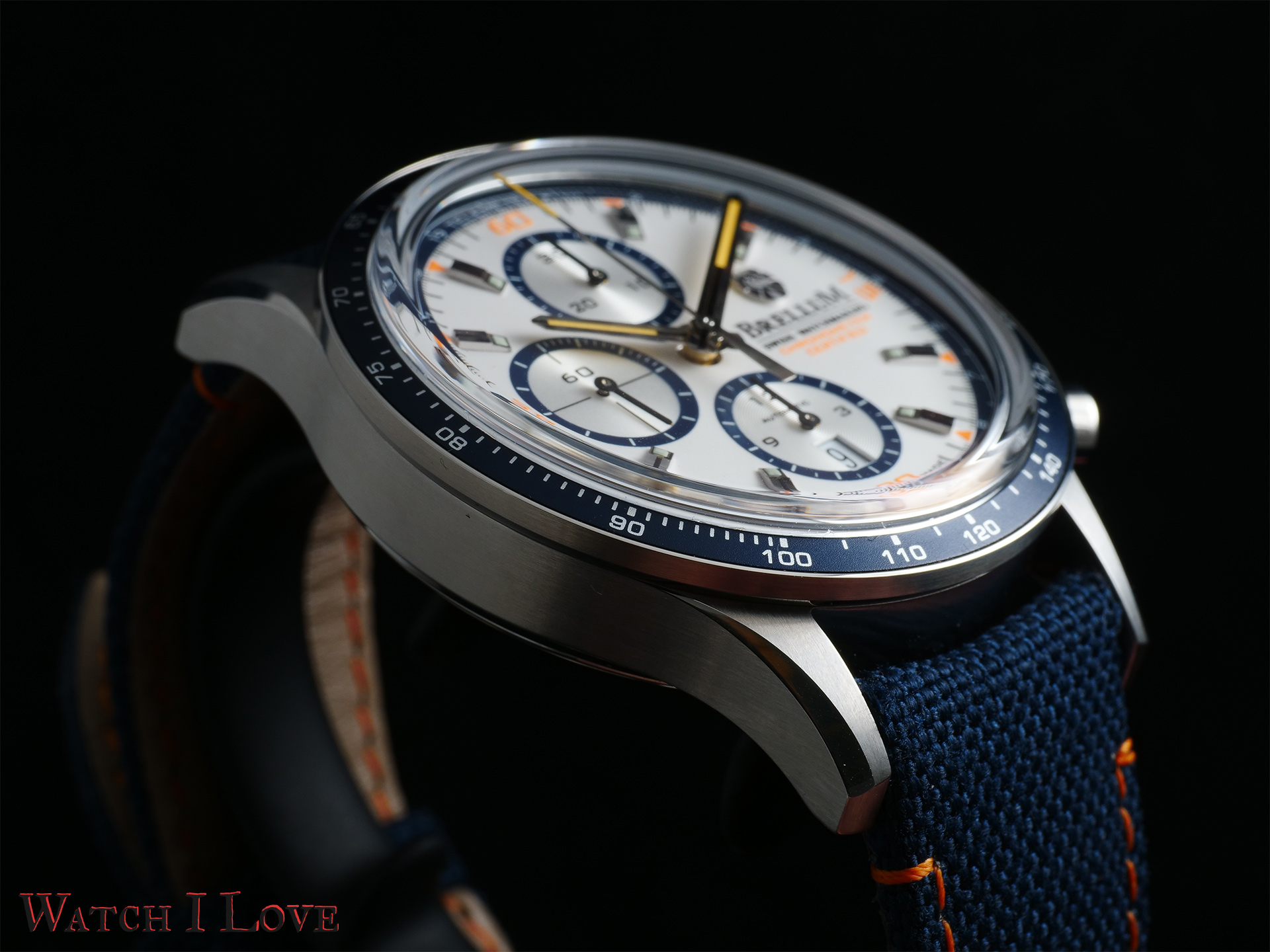 The first Marina chrono was launched in 2017. I was amazed by it. The strong colours, blue and orange accents, fits perfectly the theme imposed by the watch’s name.
