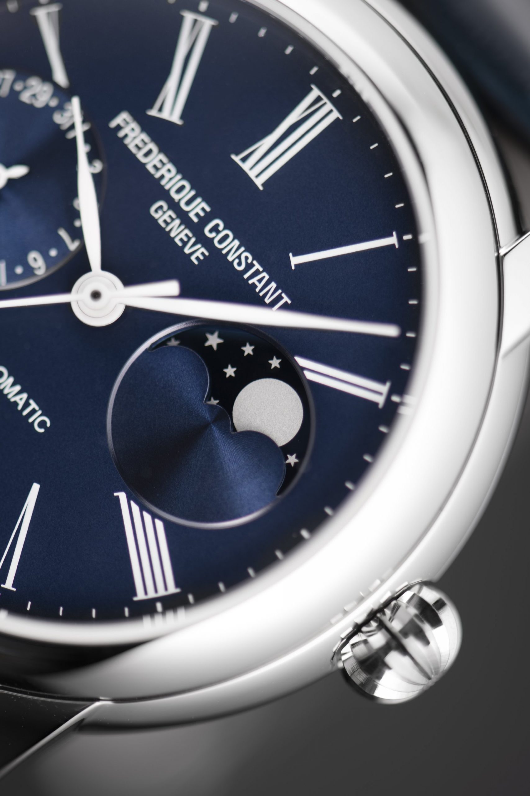 Since 2004, Frederique Constant creates its own calibers, entirely in-house designed, produced and assembled. This was an important step for the brand to become more independent, having more control over the production line, improve quality and accelerate product delivery. In-house calibers have become a trademark for Frederique Constant and play an important part in the brand’s strategy towards the future. The brand presents you the new Frederique Constant Classics Moonphase Manufacture.