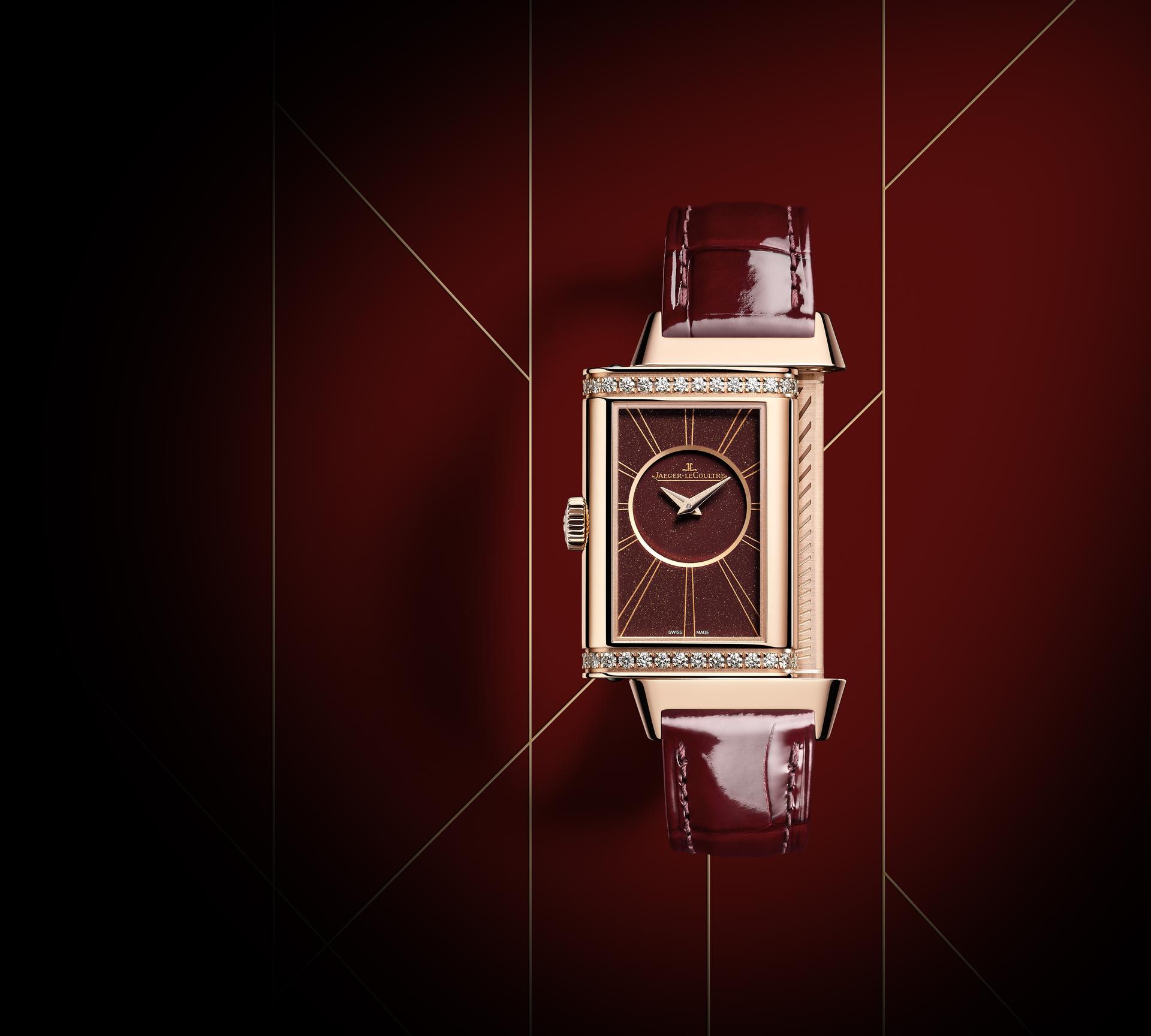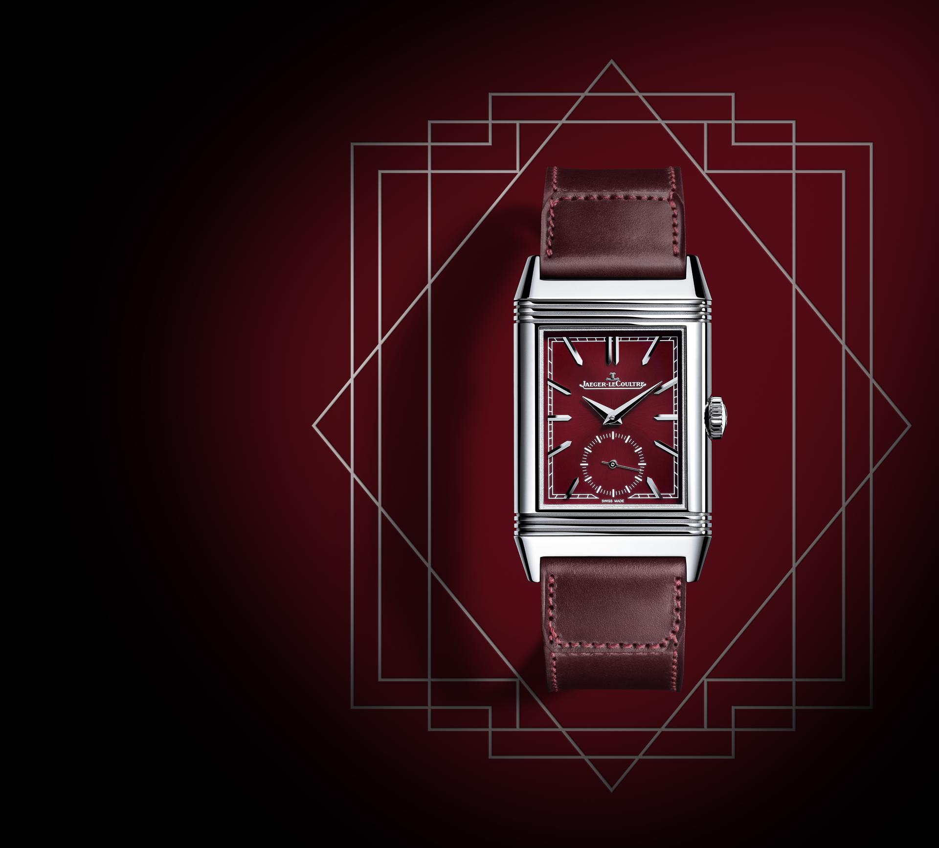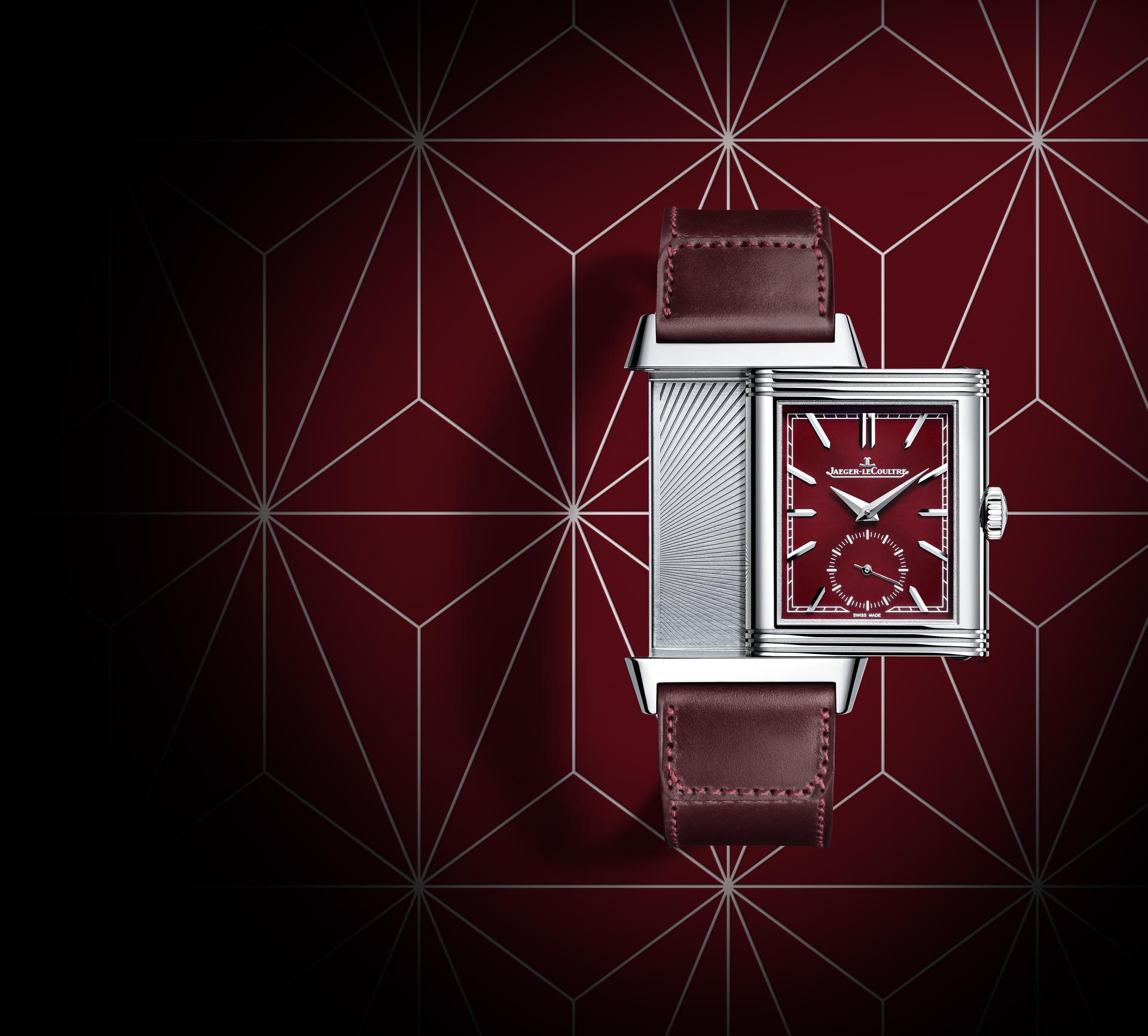 The new Reverso Tribute Small Seconds showcases a very pure design that enhances the daring colour of its dial and the matching topstitched strap designed by the celebrated Casa Fagliano. Wine red, burgundy, crimson, or aubergine – while the descriptions differ, this deep, dark, enchanting red is most definitely this piece’s colour. This passionate, fiery shade evokes both the fire that fuels the master watchmakers and craftsmen of Jaeger-LeCoultre and the passion of its lovers of beautiful objects, many of whom love to collect multiple Reverso models. Enhanced by its shimmering, satiny exterior, the Reverso Tribute Small Seconds will prove no exception to the rule.