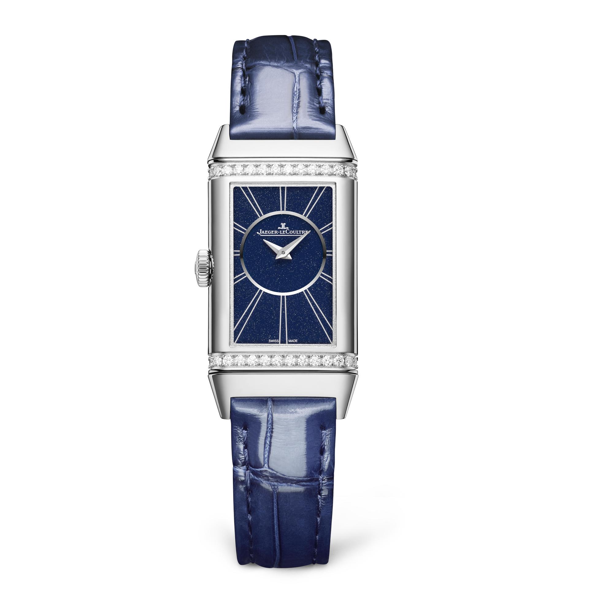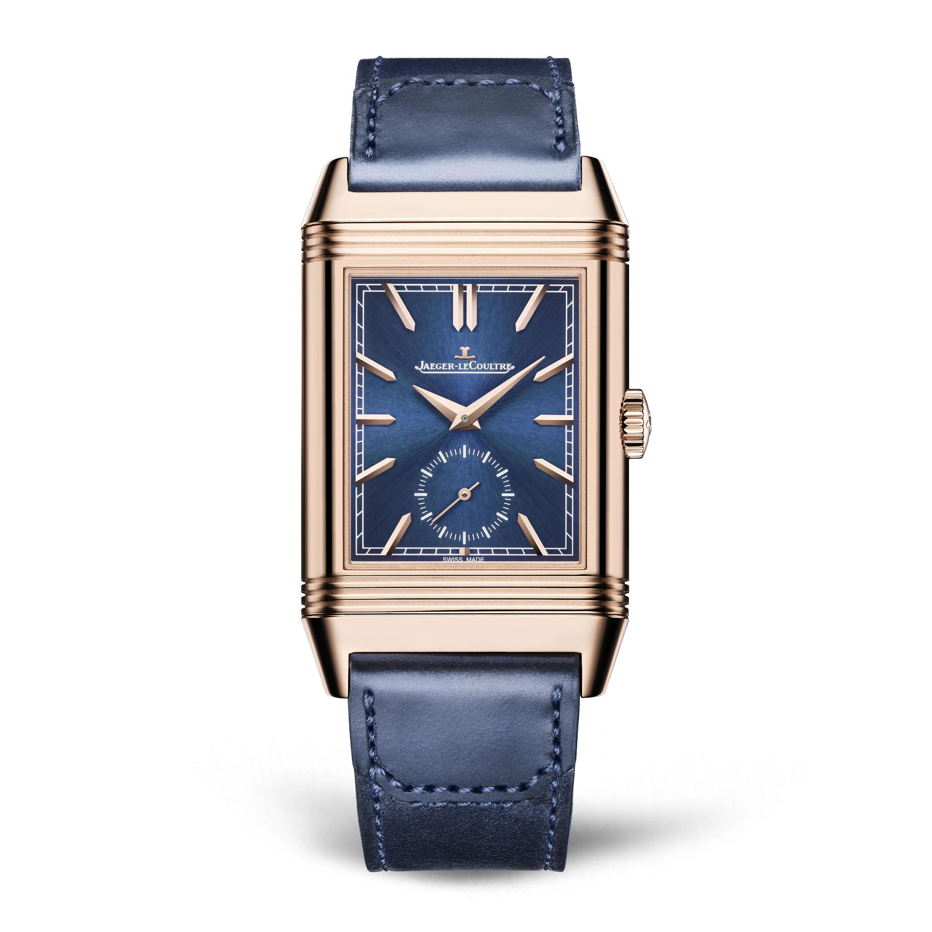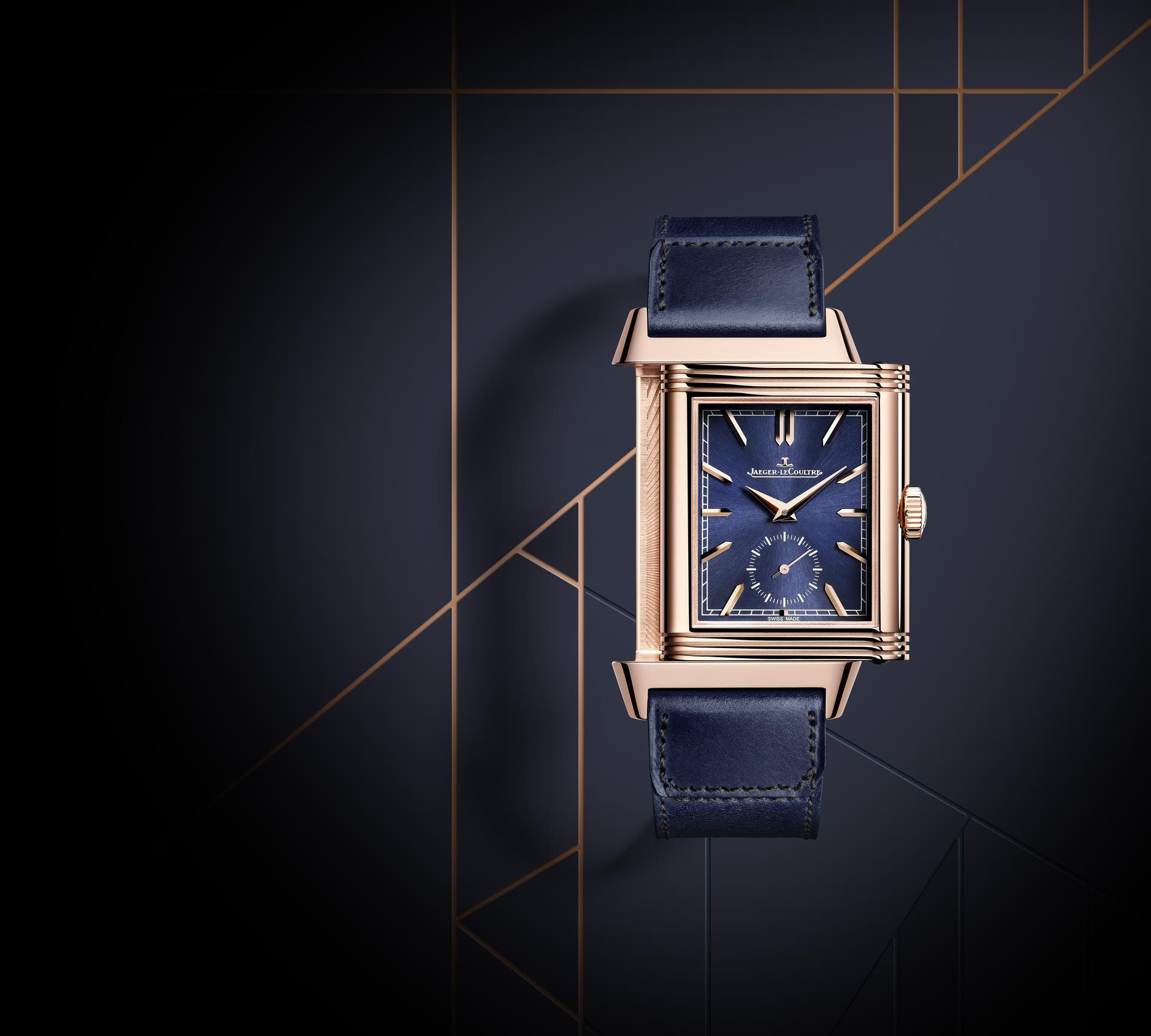 Available in boutiques only, the new Jaeger-LeCoultre Reverso Tribute Duoface Fagliano Limited is even exclusive in the number of pieces released. Limited to just 100, it radiates rarity in every detail, from the most discreet to the most visible. Its two textured dials subtly display their functions in an elegant pink gold case, revealing a blue sunray-brushed ground on the front and a silvered guilloché motif on the reverse. To continue this contrasting composition, the Cordovan leather strap, entirely handmade by Casa Fagliano, dons two tones of bright blue accentuated by elegant topstitching.