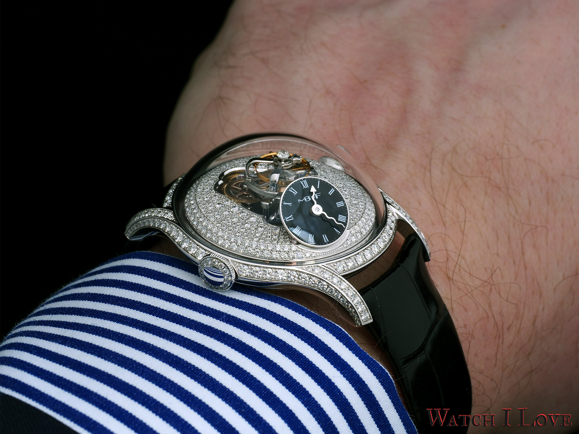 MB&F announced at the beginning of March their first ladies watch – the Legacy Machine FlyingT. I was thrilled to find the news and curious to see it in person. I got my chance during the Baselworld. And I was not disappointed. I mean, I already knew about it from the press release. But meet it in the wild was a glamorous experience. Since the press release was so well written, I found myself in the position that my words are not that meaningful. So I will just stick to make some personal comments in the caption of the images. Enjoy!