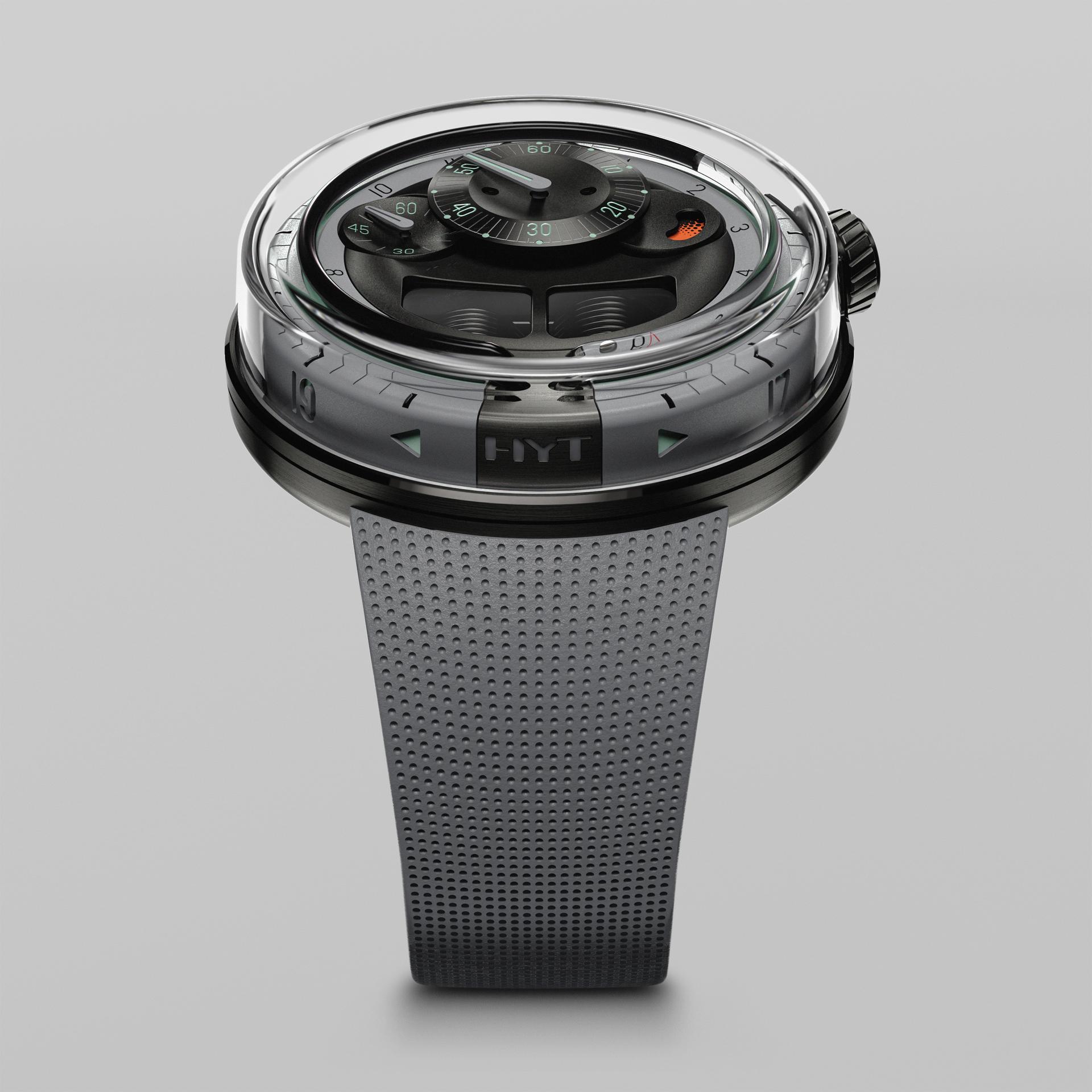 Today HYT is an ecosystem that unites science, hi-technology, philosophy, art and design. Based in Neuchâtel, at the heart of the traditional Swiss watchmaking region, a dedicated team of 43 individuals makes liquid time real time. Their radical wristwatches harmoniously incorporate a mechanical watch movement as the trigger to the fluid propulsion. They make total sense of time – time and time again