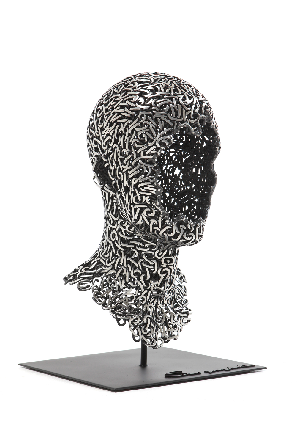 Why is there a number in the title of each piece? That number is the length in meters of chain used to create the work. For example, The thinker 300 uses 300 metres of bike chain! Each work of art includes a signature engraved on the side or bottom of the artwork as well as a letter of guarantee.