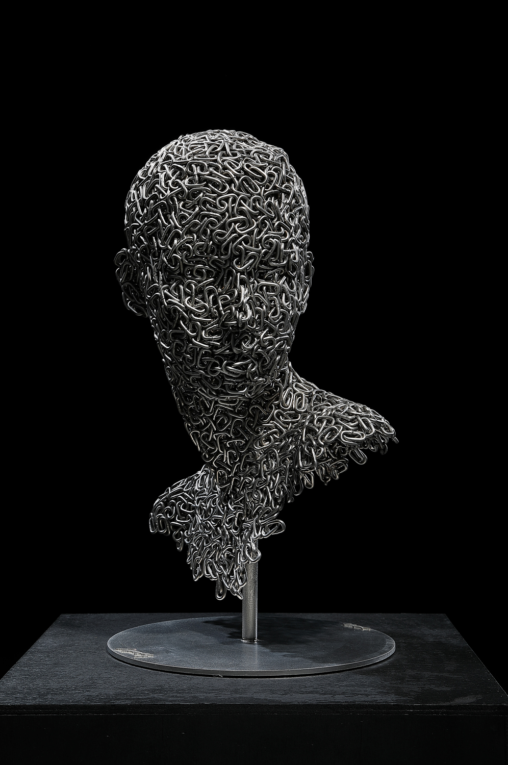 LINK is a relationship between two things. The entangled sculptures in the LINK collection connect the relatively harsh medium of metal chain with the softness of the human body, suggesting that the human spirit is repressed by today’s industrial and materialistic civilization.