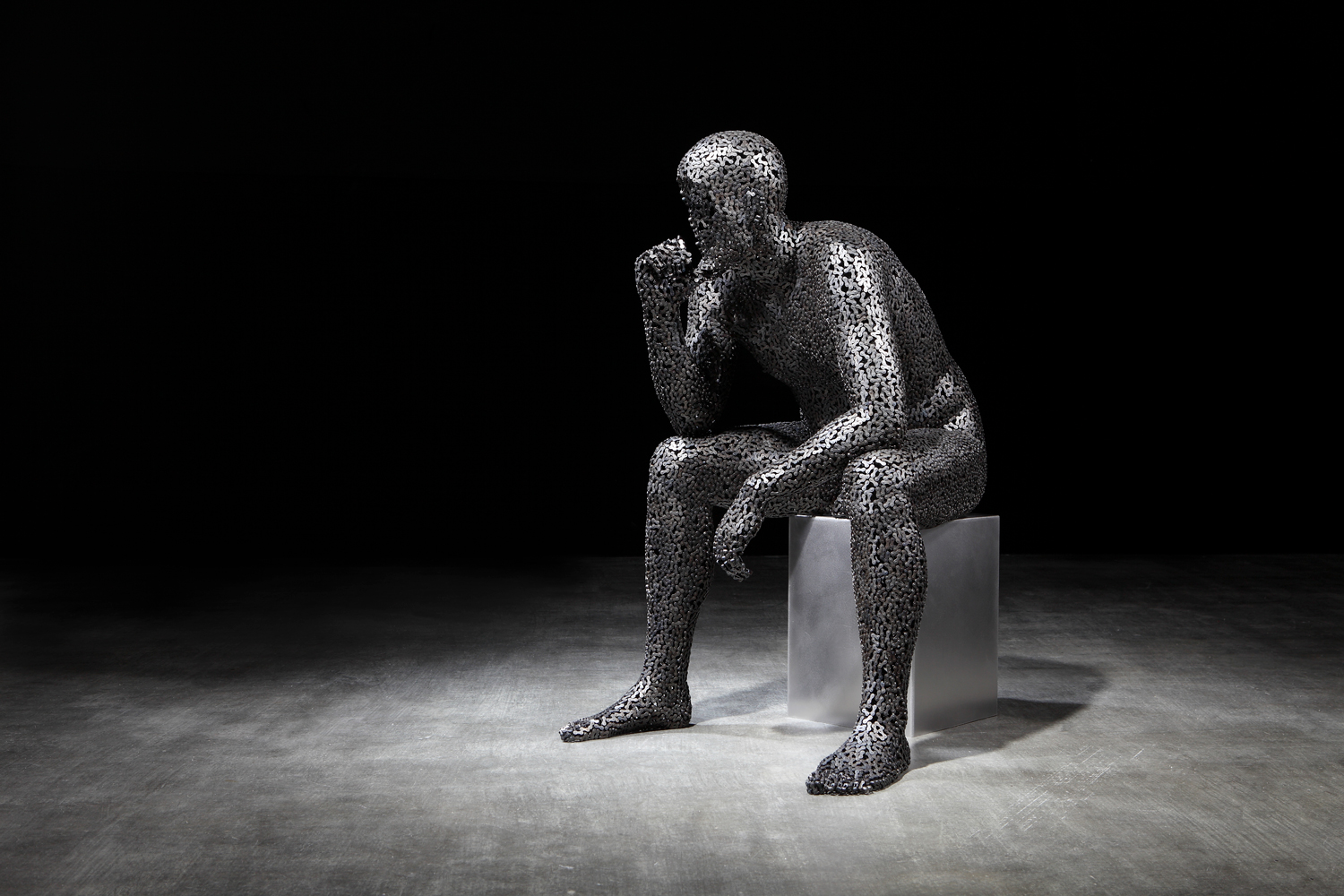 The M.A.D.Gallery introduces the LINK exhibition by Young-Deok Seo, a passionate Korean artist using intriguing sculptures to reveal the complexities of the human character. Through a meticulous and laborious process of welding chain to shape human figures, Young-Deok has created an impressive ensemble of works of art. For him, the intertwined chain conveys the power and fragility of man during a time of chaotic industrialization.
