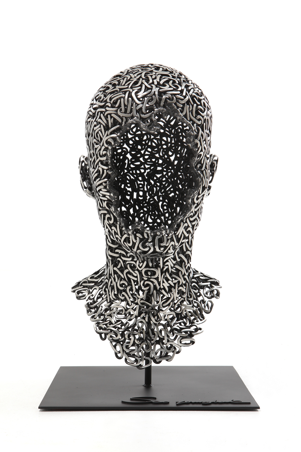 Young-Deok’s collection of contemporary sculptures tells people’s stories and expresses human feelings evoking genuine emotions from its observers – it sends our minds spinning here at the M.A.D.Gallery. Young-Deok has immense talent and fervour, which is apparent through his brilliant and unconventional use of the simple link chain to create powerful works of art.