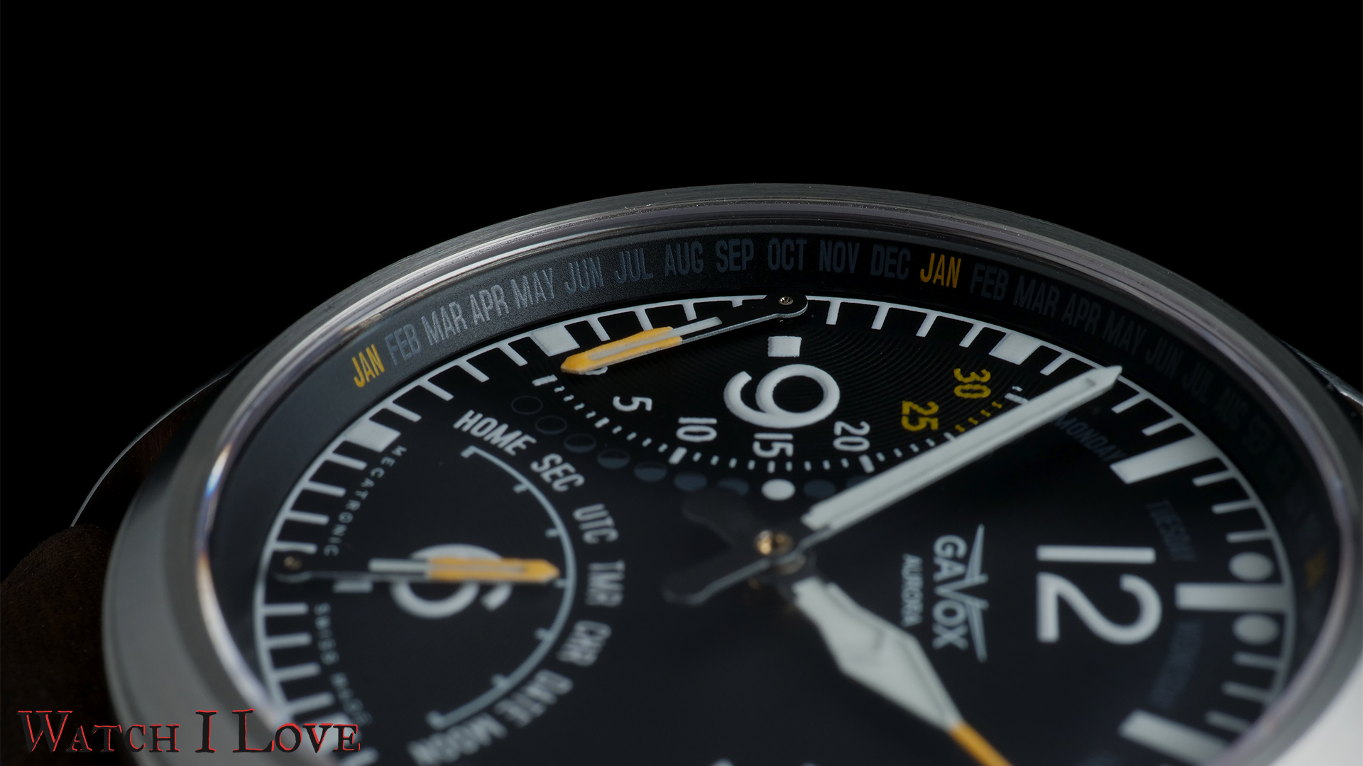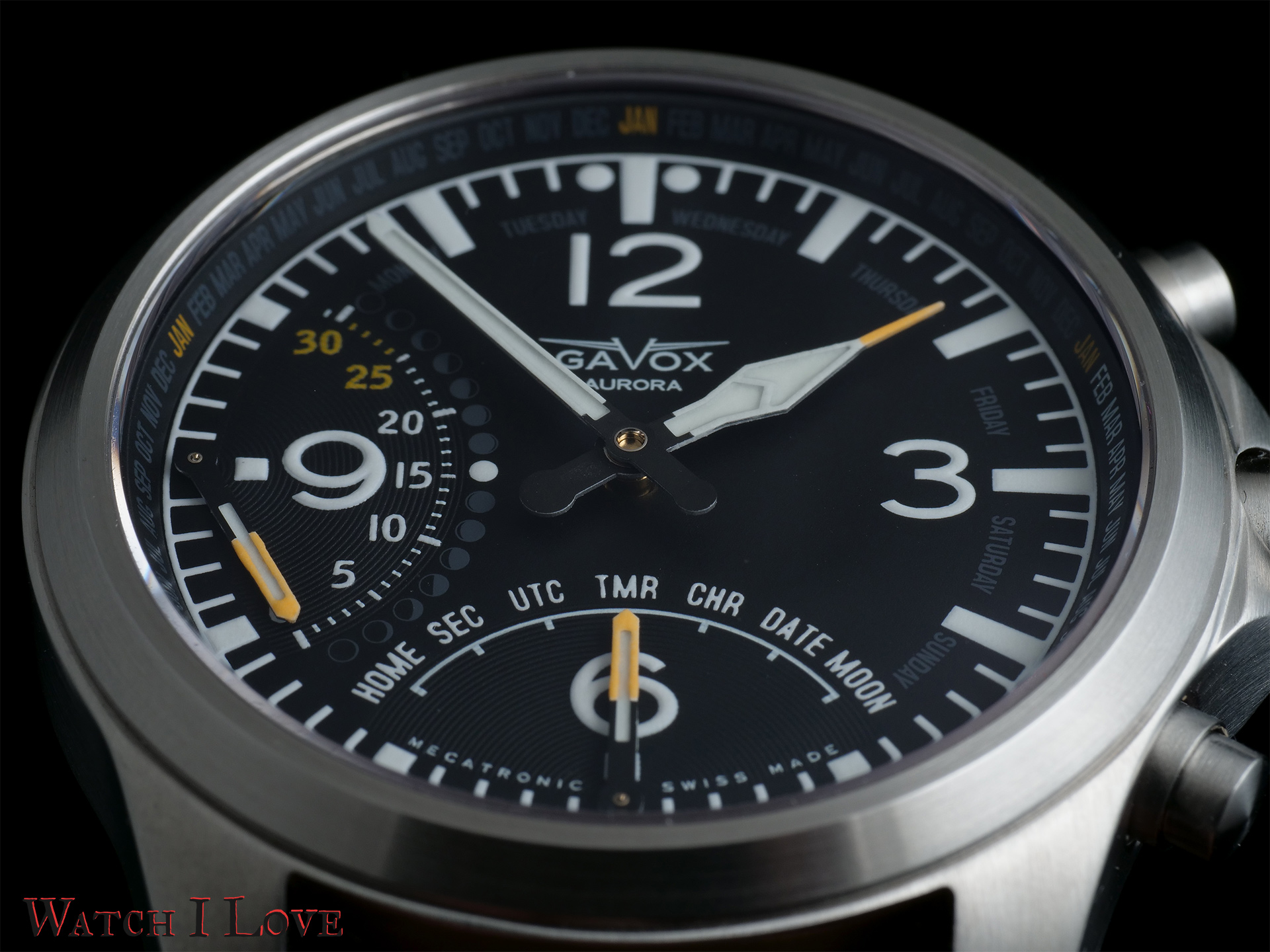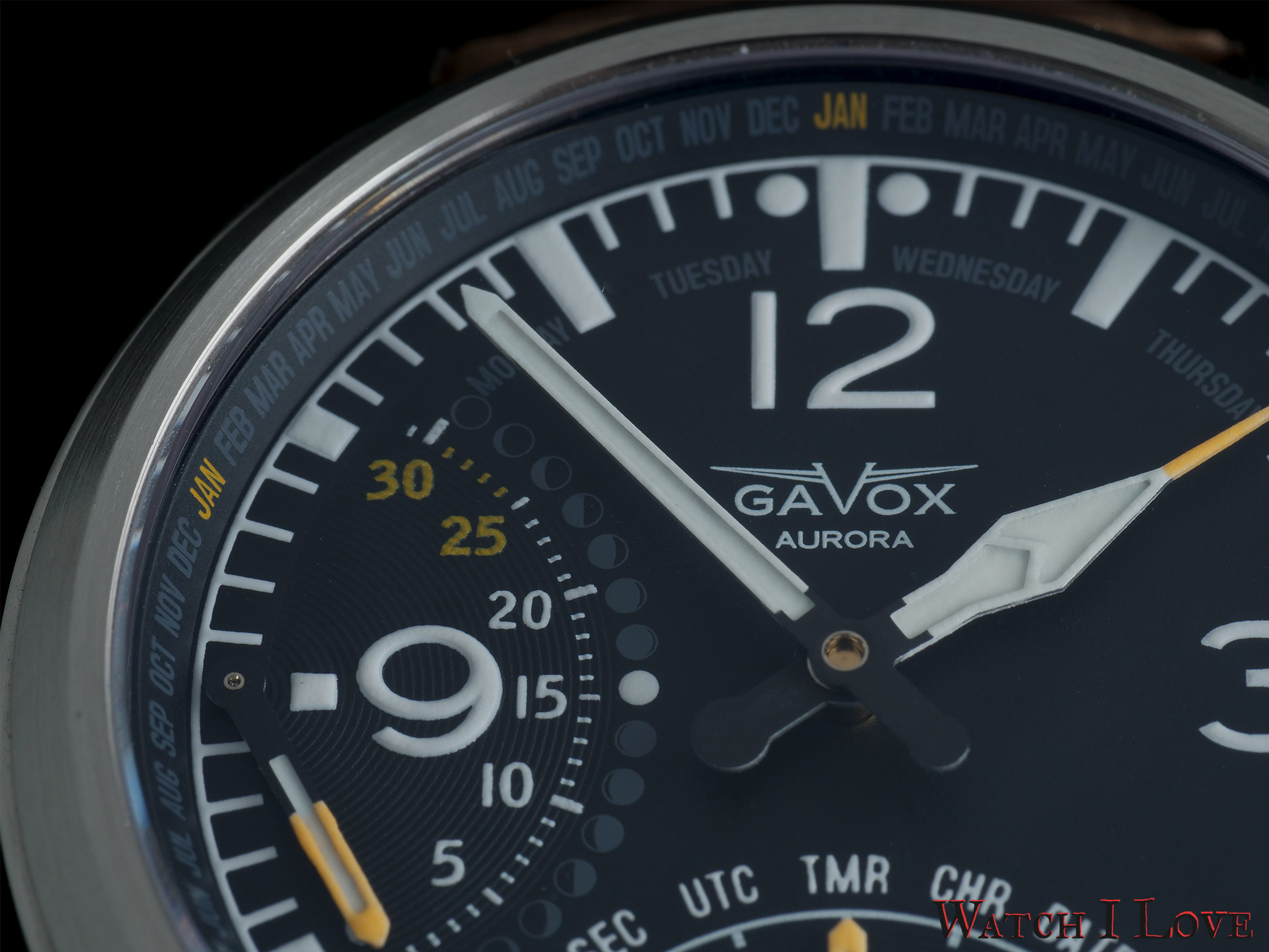Regardless traveller, enthusiast or pros, regardless day or night, the Gavox Aurora is gifted with all you need. Including a perpetual calendar. For the low light, the watch is rich in Swiss Superluminova DGW9. In all the right places.
