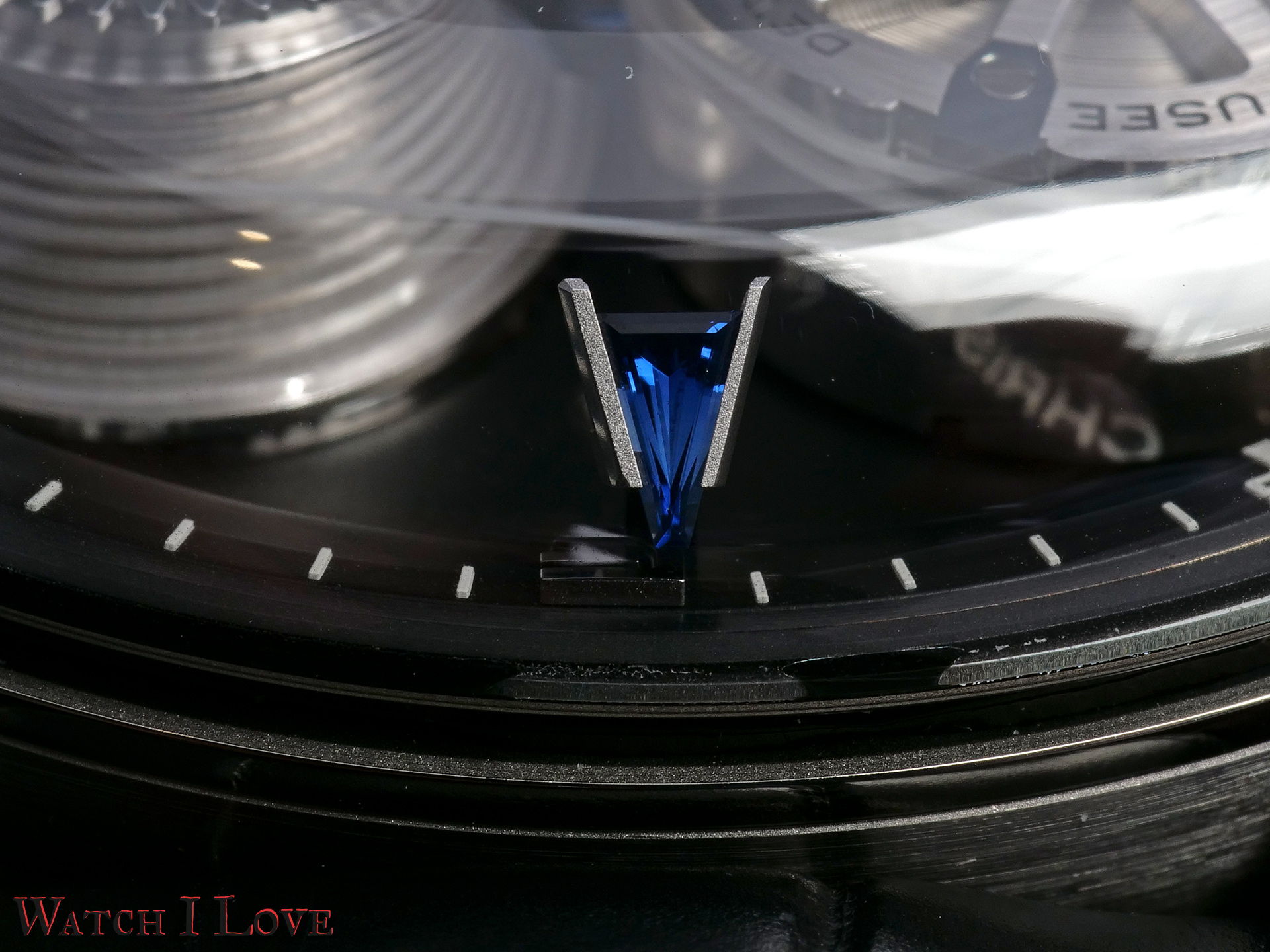Regardless of the version, red gold or titanium, Christophe Claret Angelico offers a clean and powerful contrast. The time legibility is exceptional. The hours are easily visible and readable. The minutes display using a gemstone is terrific – how can one not see the right time in this presentation.