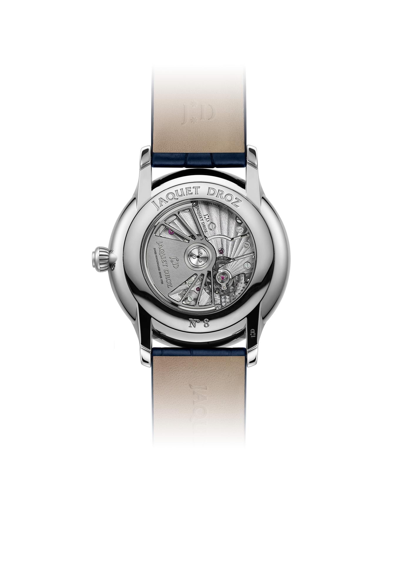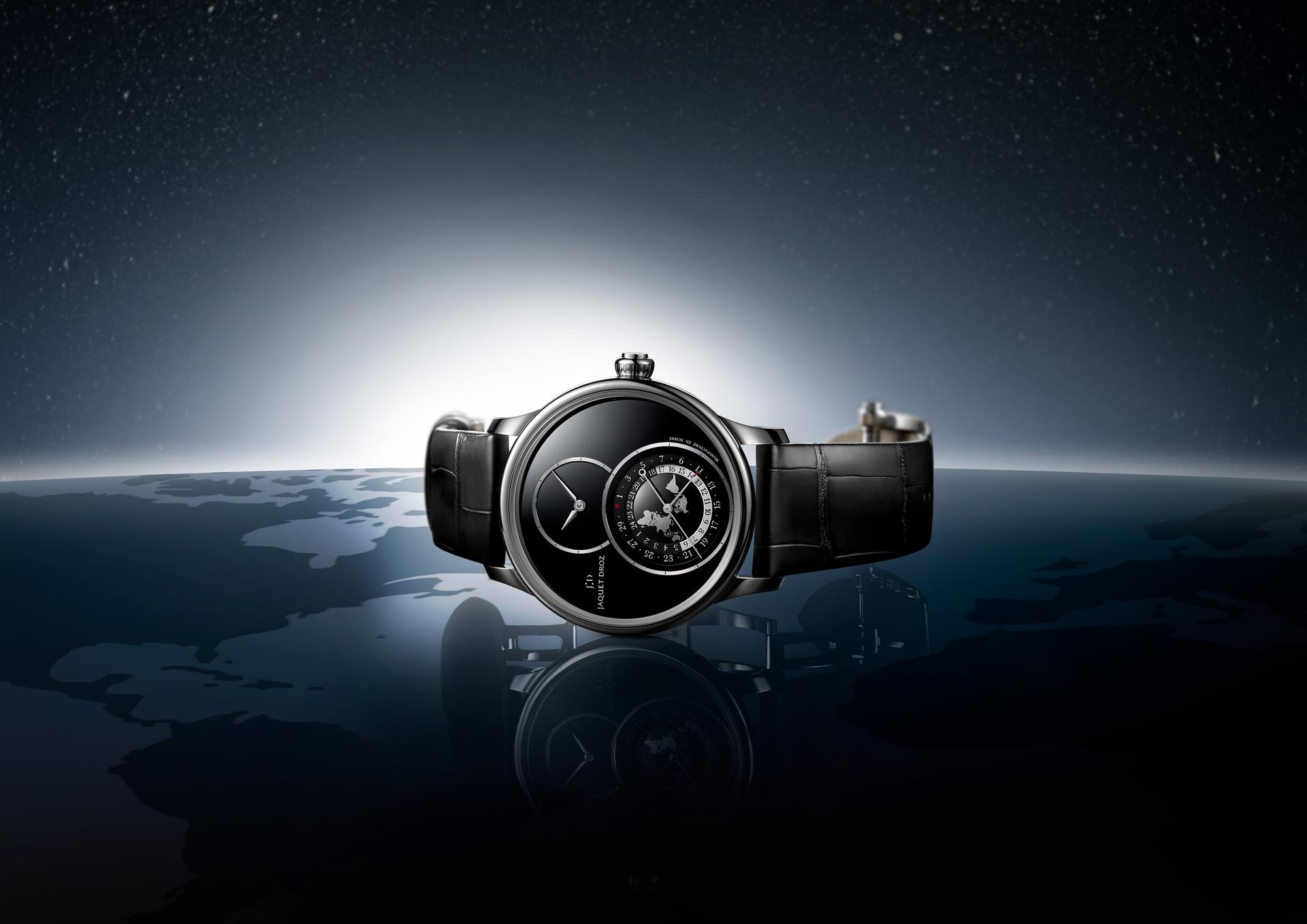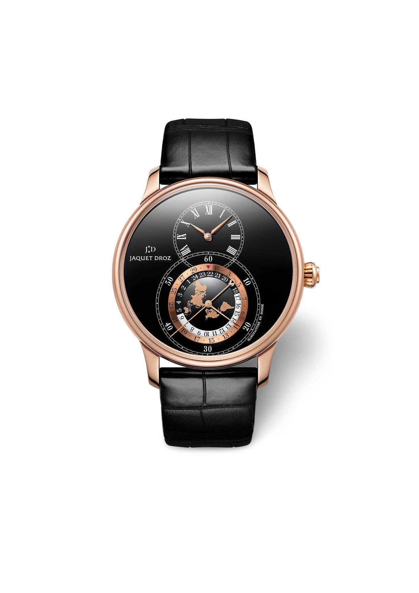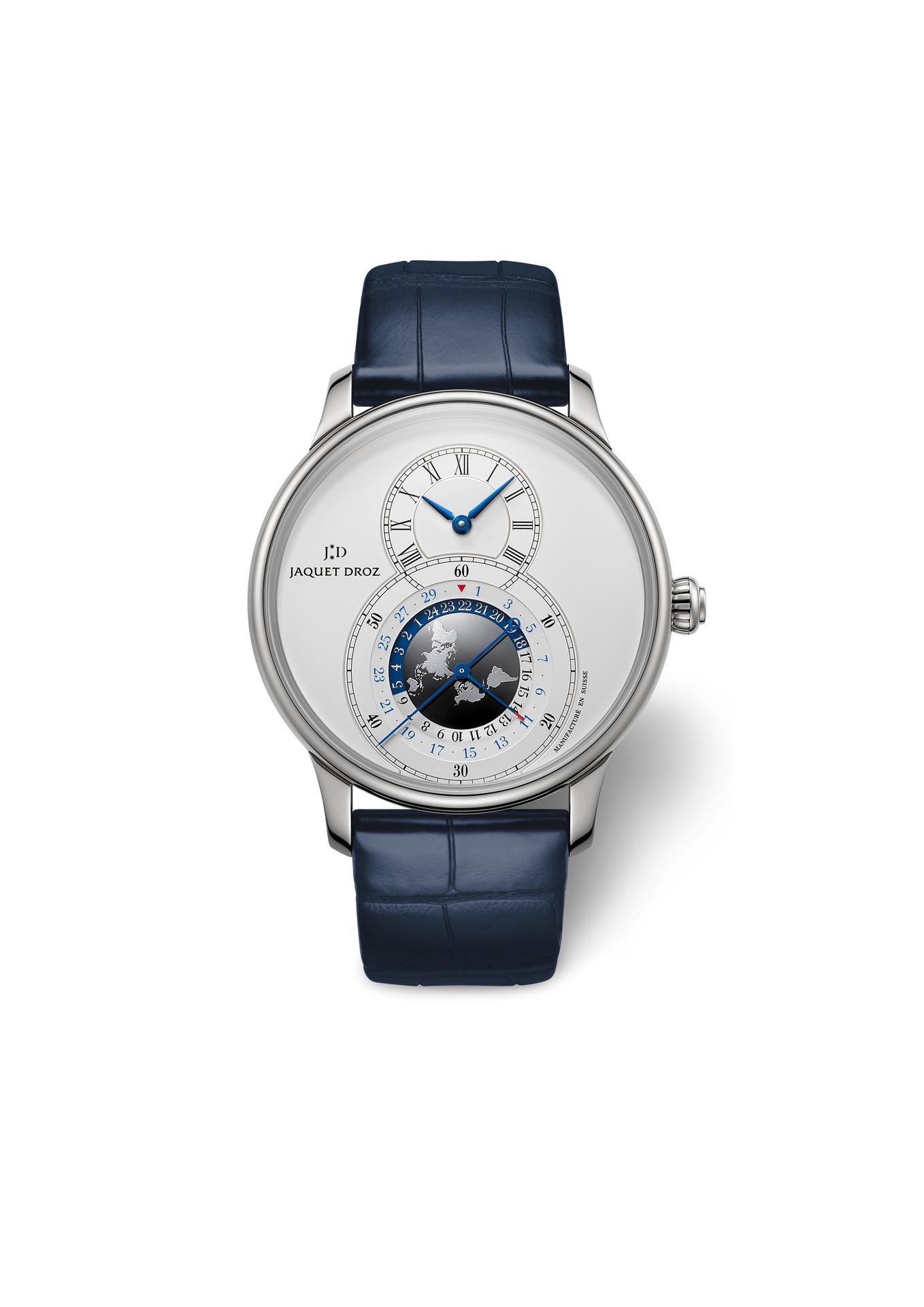 Any travel watch must display dual times zones (local and home time) and the date. Jaquet Droz met this technical prerequisite with panache, in keeping with the immutable aesthetic codes of the Grande Seconde, and so its Dual Time has stood the test of time in accompanying globetrotters on their adventures.