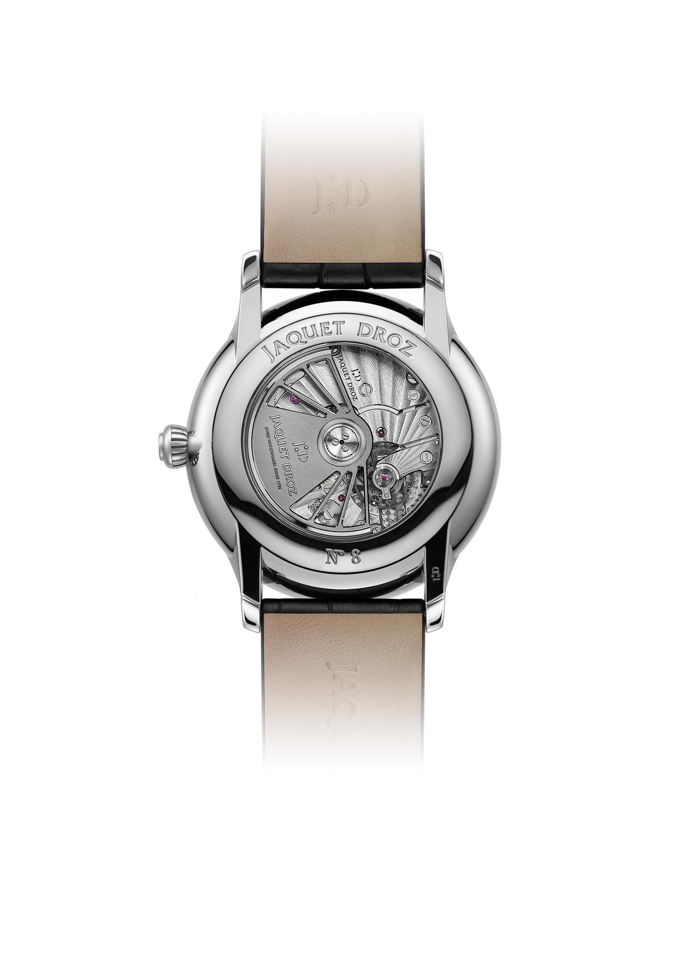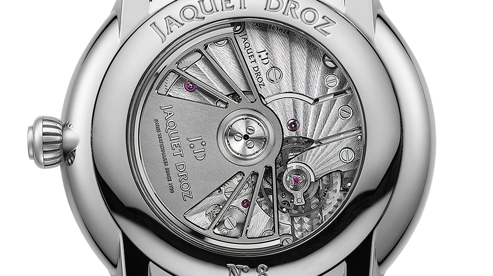 Jaquet Droz 2663H24, self-winding mechanical movement, silicon balance spring and pallet horns, double barrel, flat bridges, 18-karat red gold oscillating weight