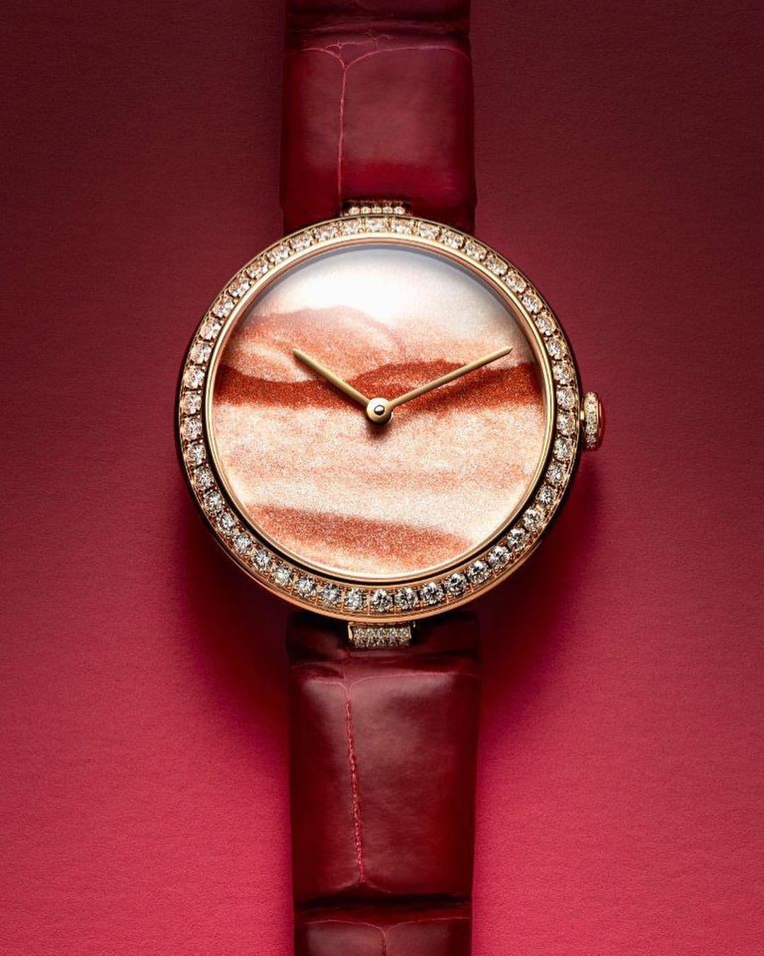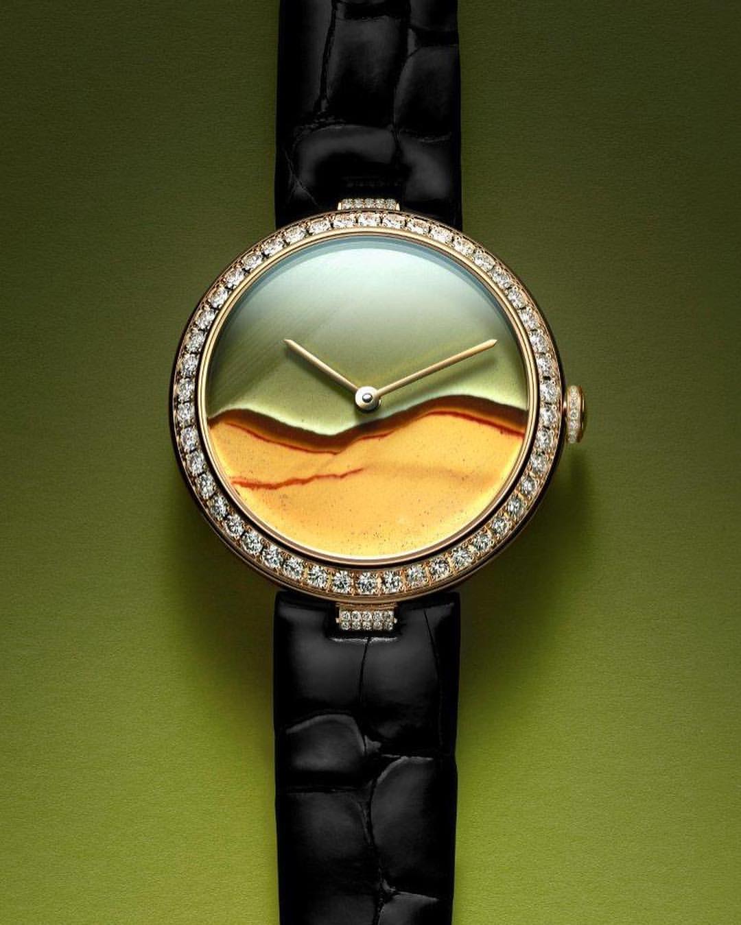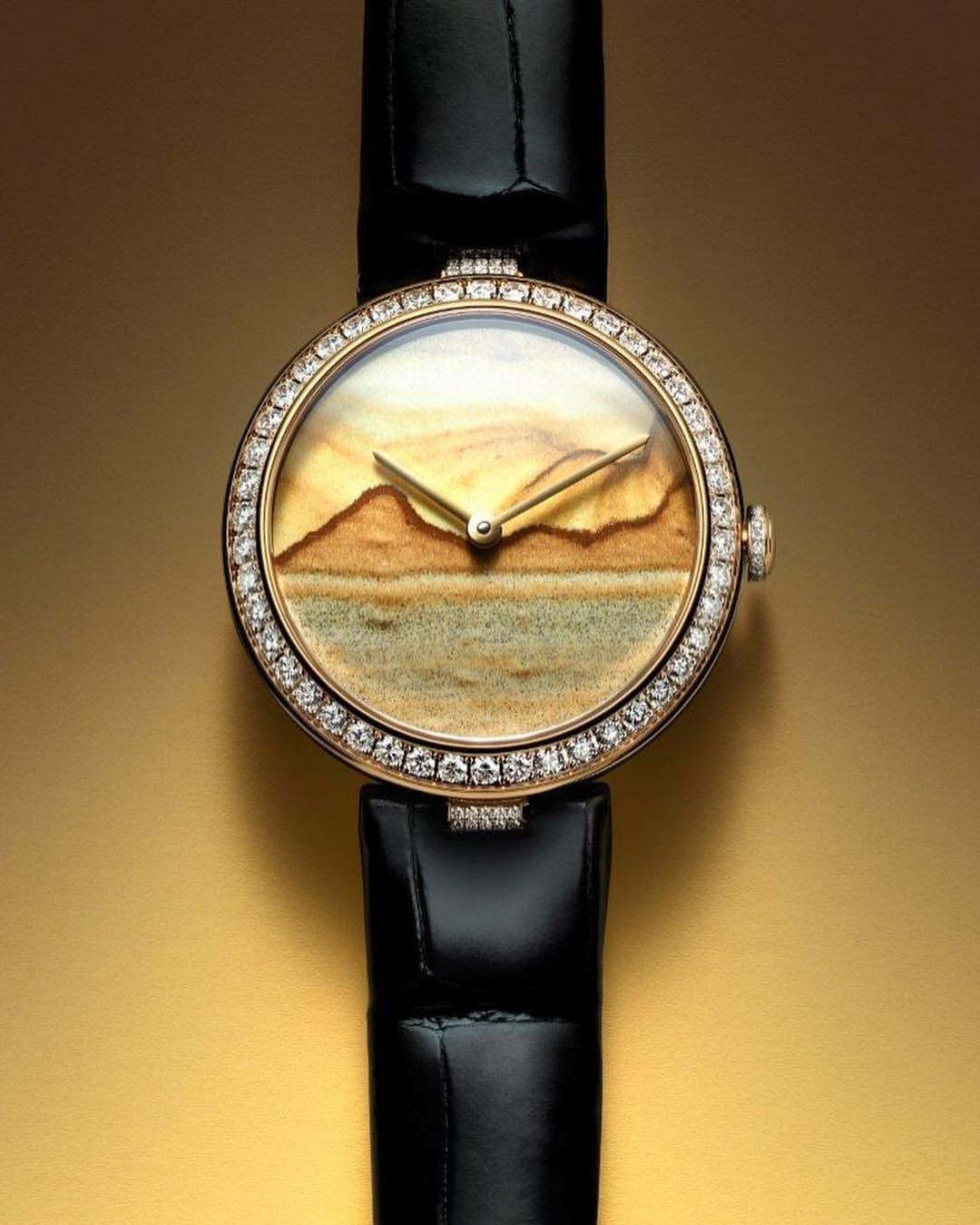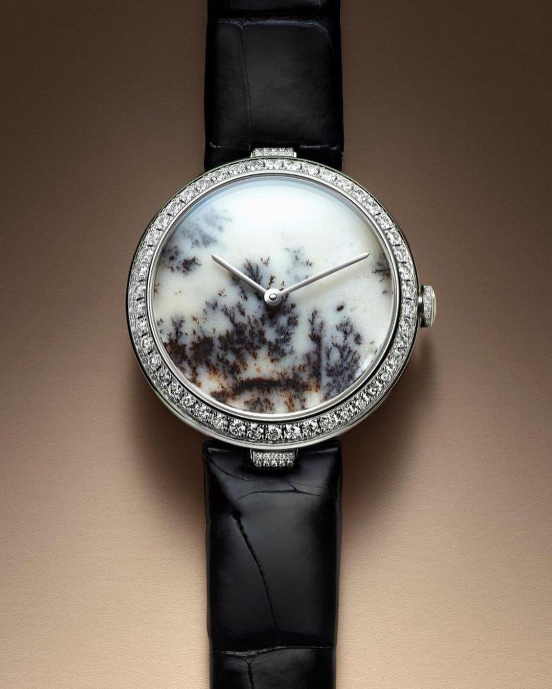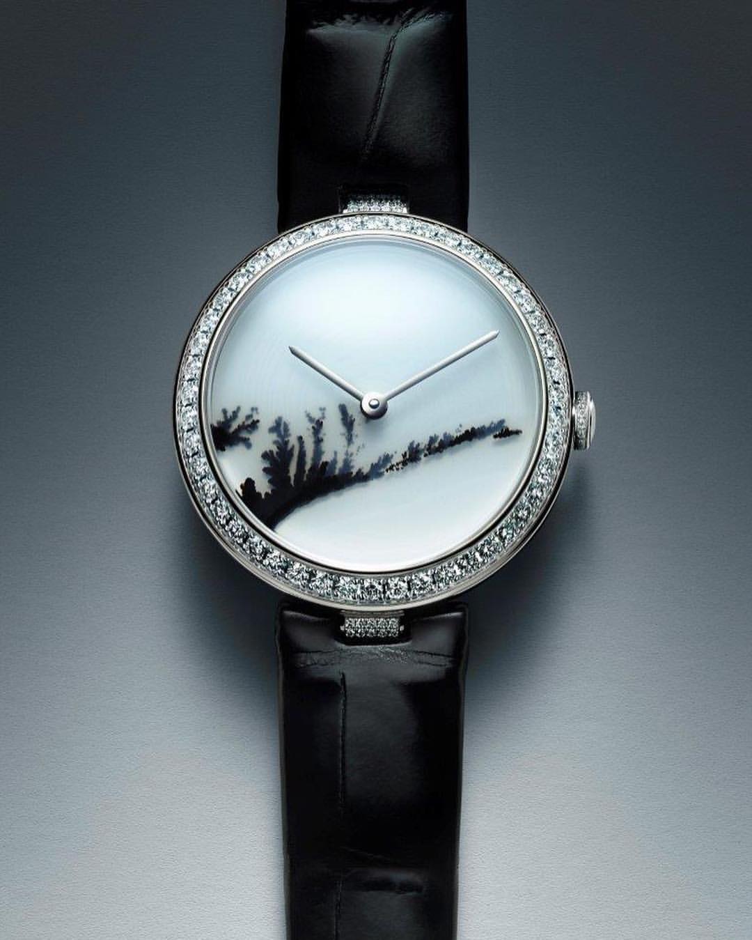 Chaumet reinvents this tradition through a collection of exquisite watches combining the skill and craftsmanship of the Maison with these fascinating treasures of nature. From Lapis Lazuli and opal to dendritic agate… Chaumet has researched and carefully selected twelve decorative stones, each with its own unique beauty. The stones are cut and set off by a white or rose gold bezel with pavé set diamonds and a coloured alligator bracelet, making way for the most beautiful landscapes. Whether it’s a wilderness, a conifer forest under a thick blanket of snow or an azure blue lagoon… Everyone sees a different landscape in these timepiece creations, like a reflection of their personal history and travels.