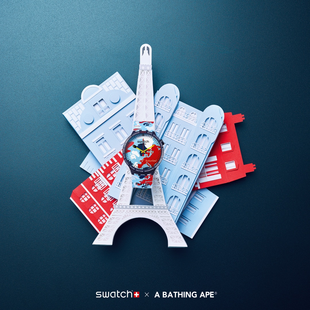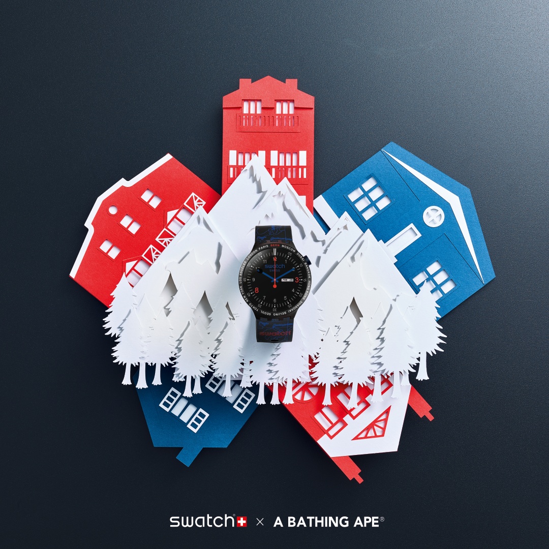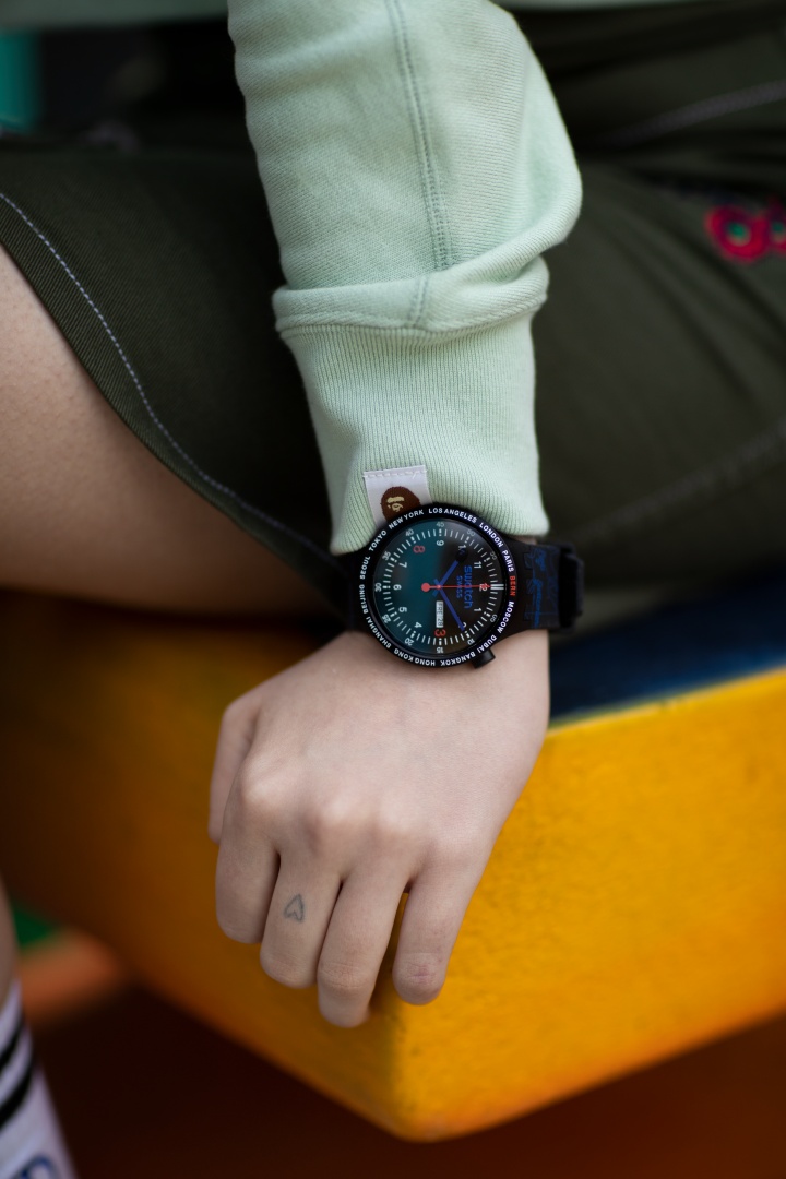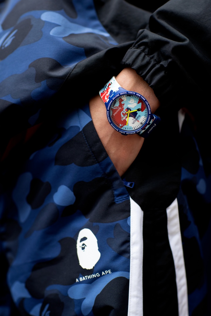 Founded in 1993, A BATHING APE® – also known as BAPE® – is commonly credited as one of the first-ever true streetwear brands and a pioneering label in street culture. Swatch and BAPE® show their love for a globalized world with the launch of six new limited-edition watches dedicated to their favorite (mega)-cities and the globe. Bern, London, New York City, Paris, Tokyo and the entire planet: here we come!