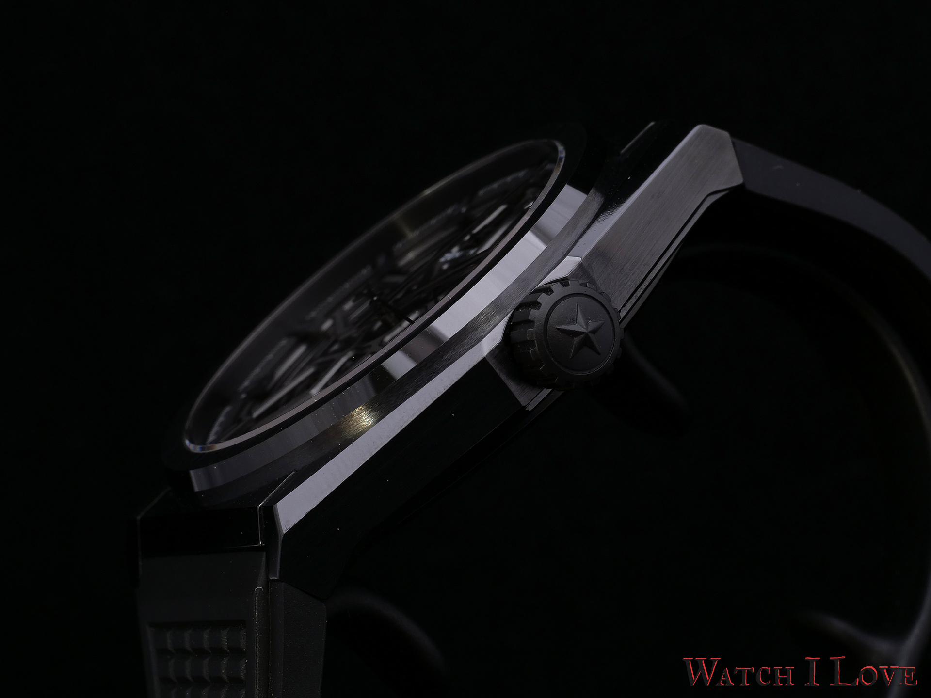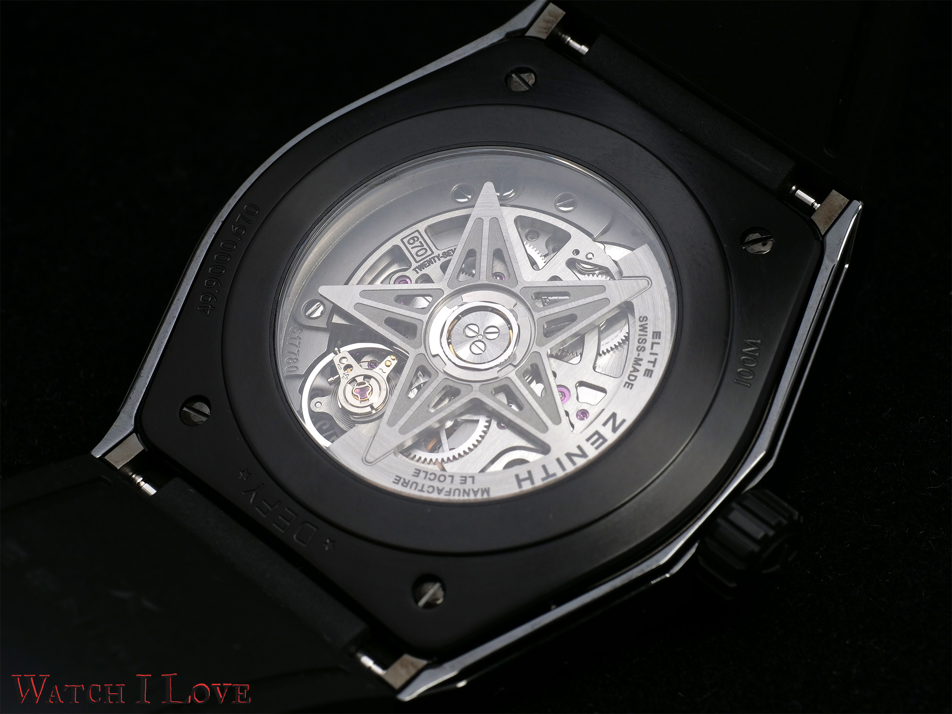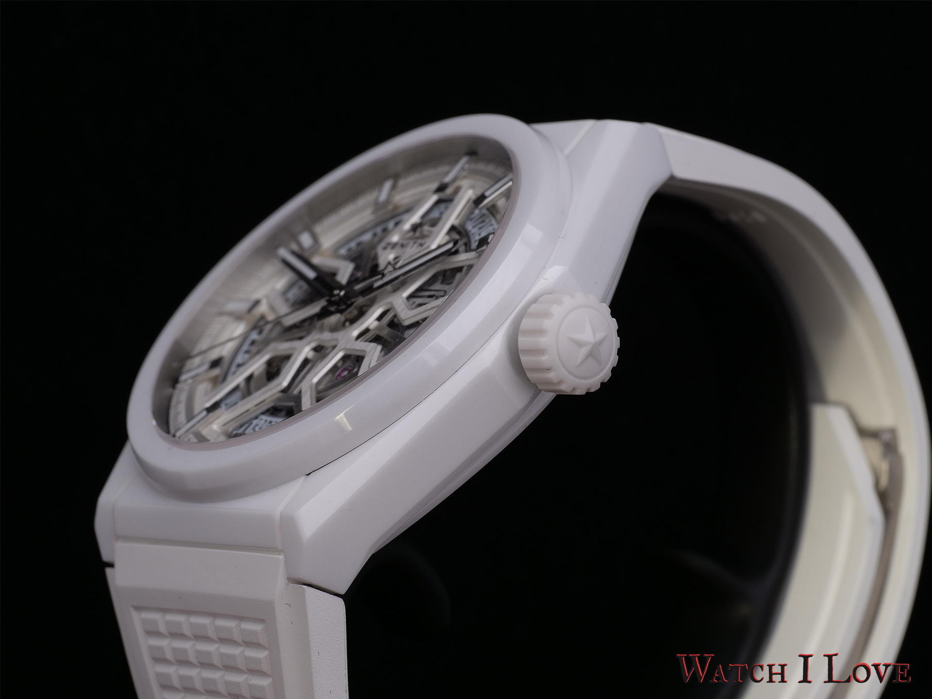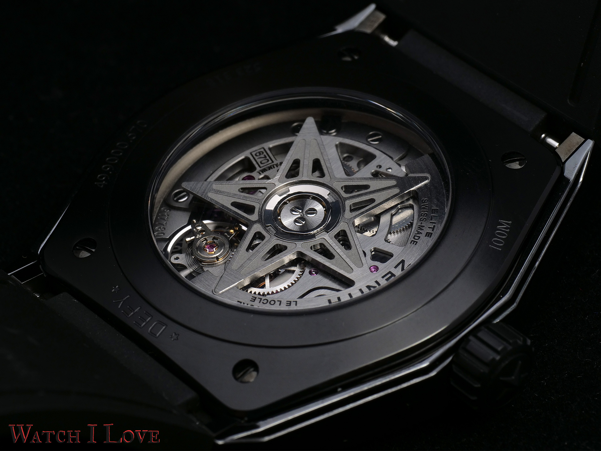 The crown is also manufactured in ceramic. It is decorated with the Zenith star. I have a strange feeling when I use the crown. Used to the metal counterpart, the sense of ceramic inspire a fragility feeling. But I am fully aware that is just a feeling. The entire watch is robust, it has a solid construction.