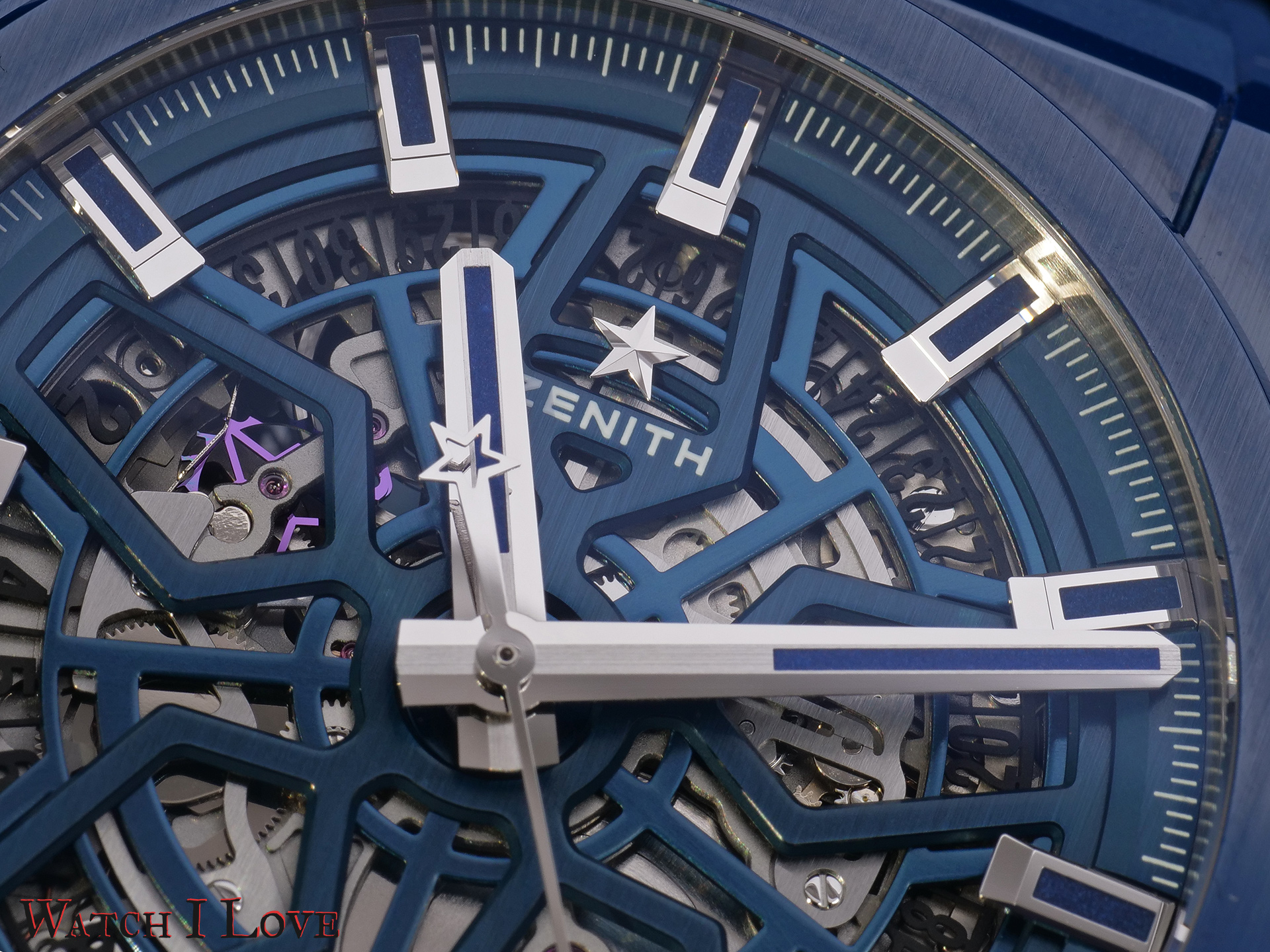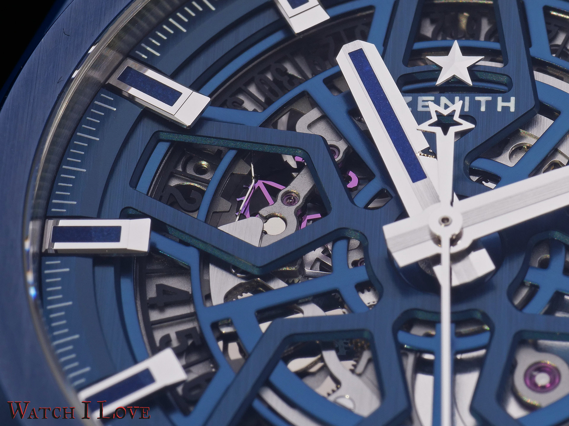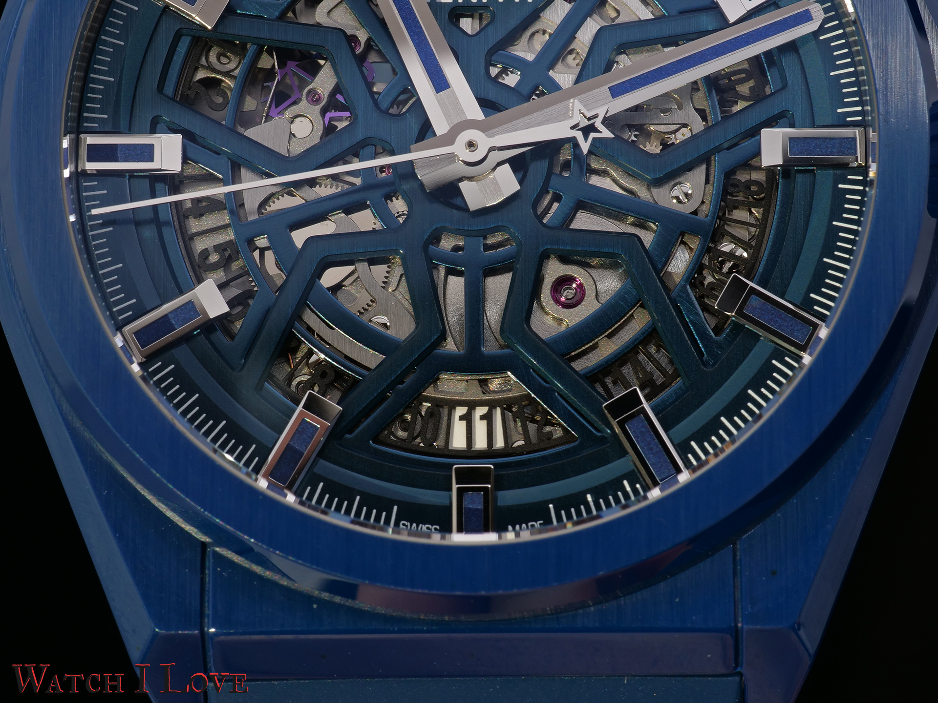 The dials are in the tones of the case. And this creates individuality between the collection’s pieces. The open dial emulates with its five forks the star of Zenith. The functional piece becomes decoration.
