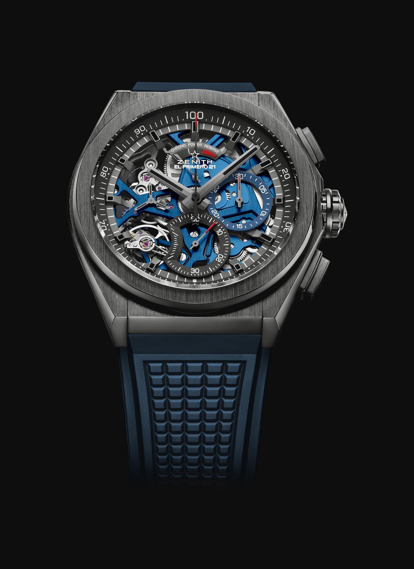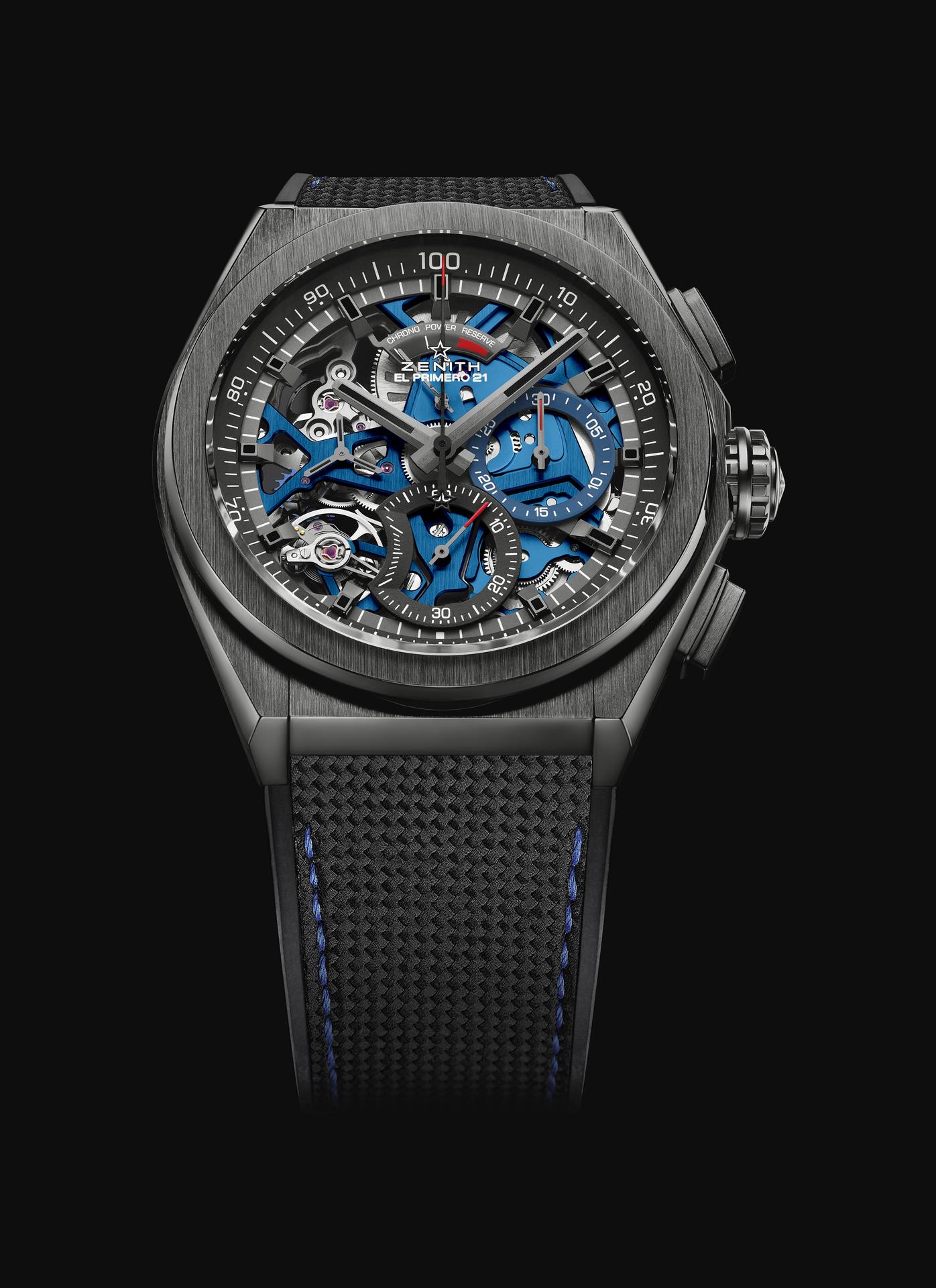 In 1969, Zenith launched El Primero, the first ever fully integrated automatic column-wheel chronograph movement, enabling 1/10th of a second precision. Half a century later, Zenith once again defied tradition and pushed all existing boundaries, leading us into the world of 1/100th of a second accuracy. A legend reborn, the Zenith DEFY EL PRIMERO 21 is the shining 21st century symbol of a new future for a brand with a truly unique guiding star. And now, the already iconic chronograph is available in a bold mix of black and blue tones as an exclusive limited edition of 250 pieces, available solely at Zenith boutiques around the world.
