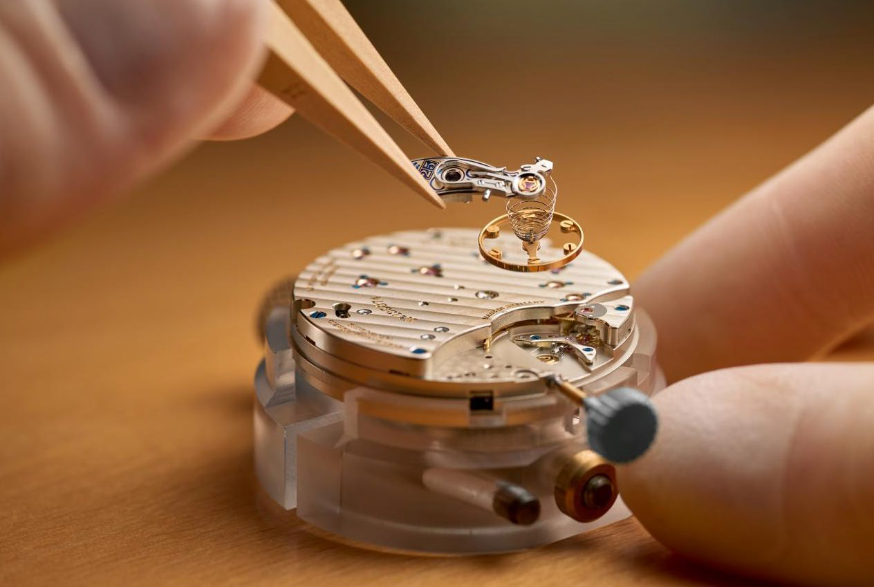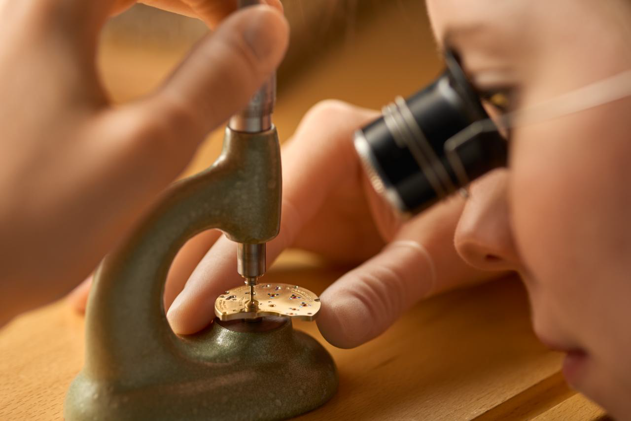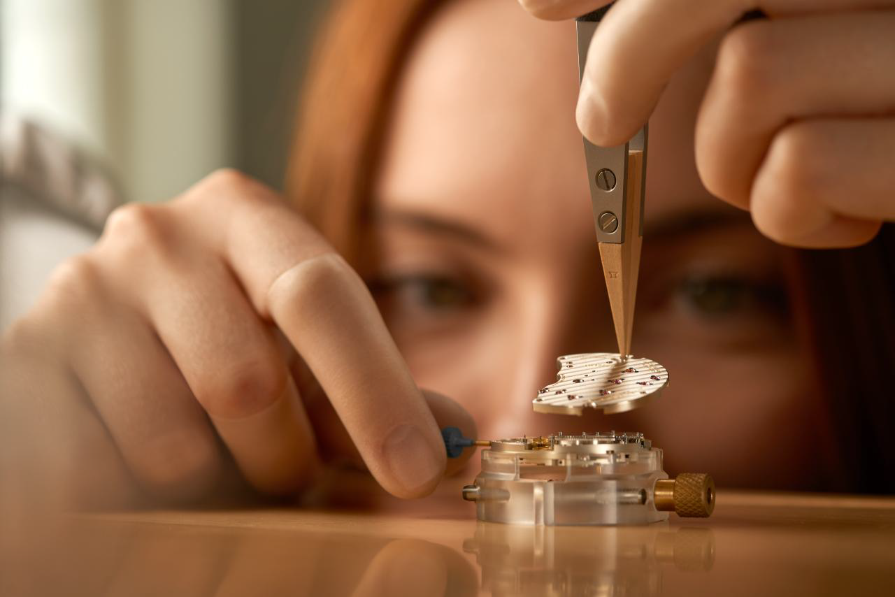 During the first assembly, different types of oil and grease are applied to the movement. They all have several additives that deliver the best possible lubrication effect for various applications. There are bearings that must sustain low pressures but high speeds and slowly rotating pinions that carry considerable loads. There are components that must withstand high acceleration and extreme slowness, and others that are exposed to significant levels of friction.