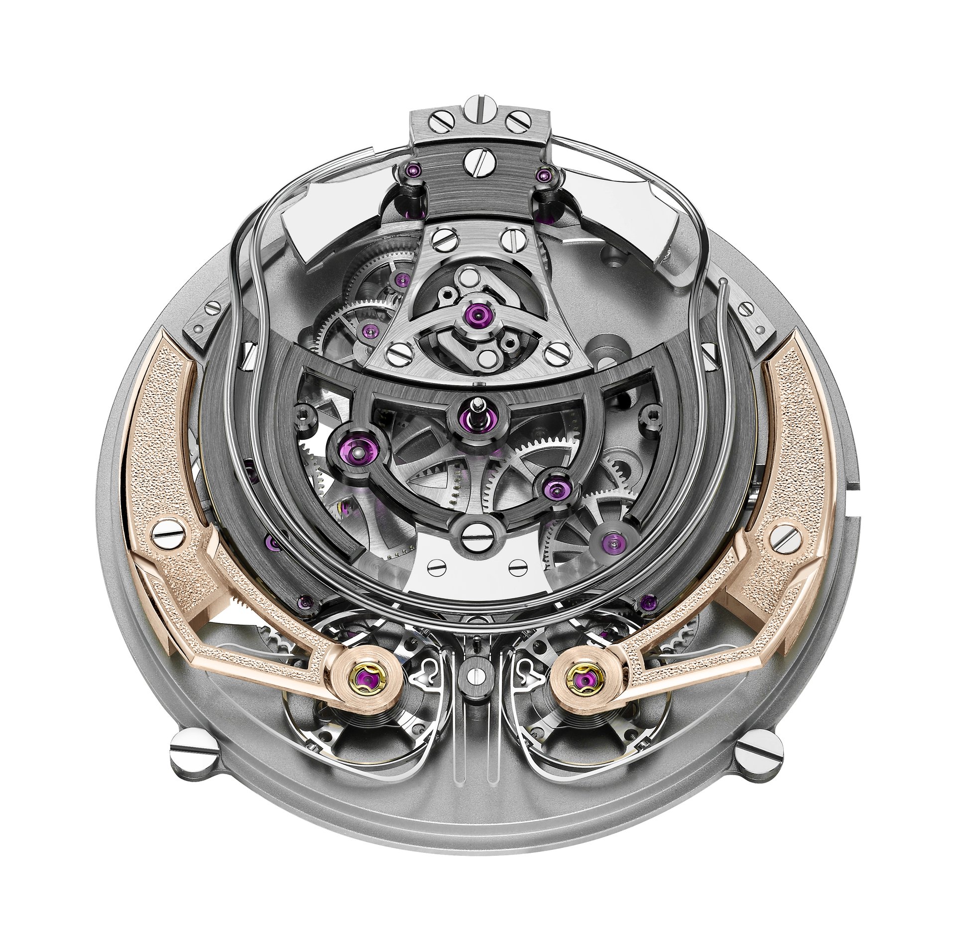 Under a virtually invisible sapphire crystal dial, the dual balances oscillating in synchronization and the two hammers striking the time, the Minute Repeater Resonance stages an unparalleled horological spectacle for both the eyes and the ears.