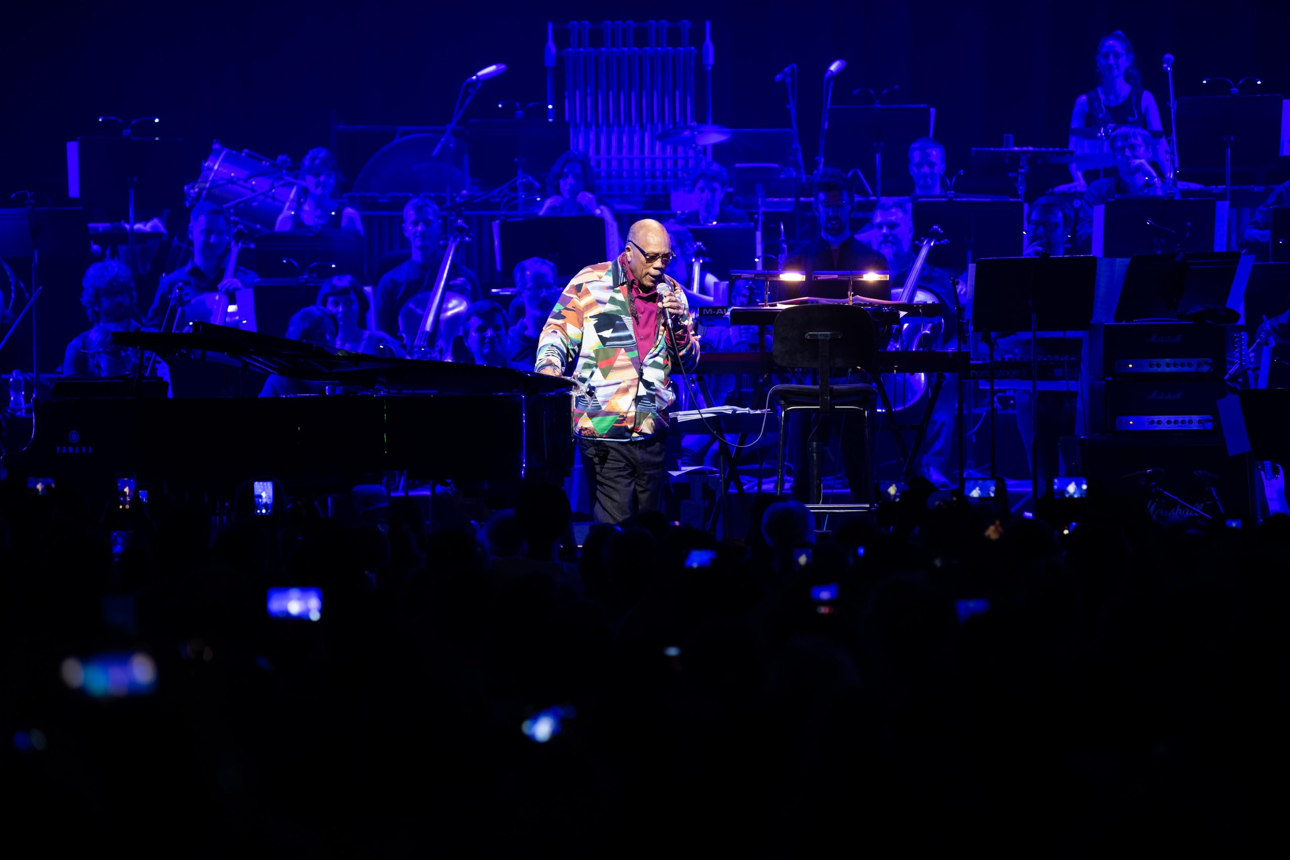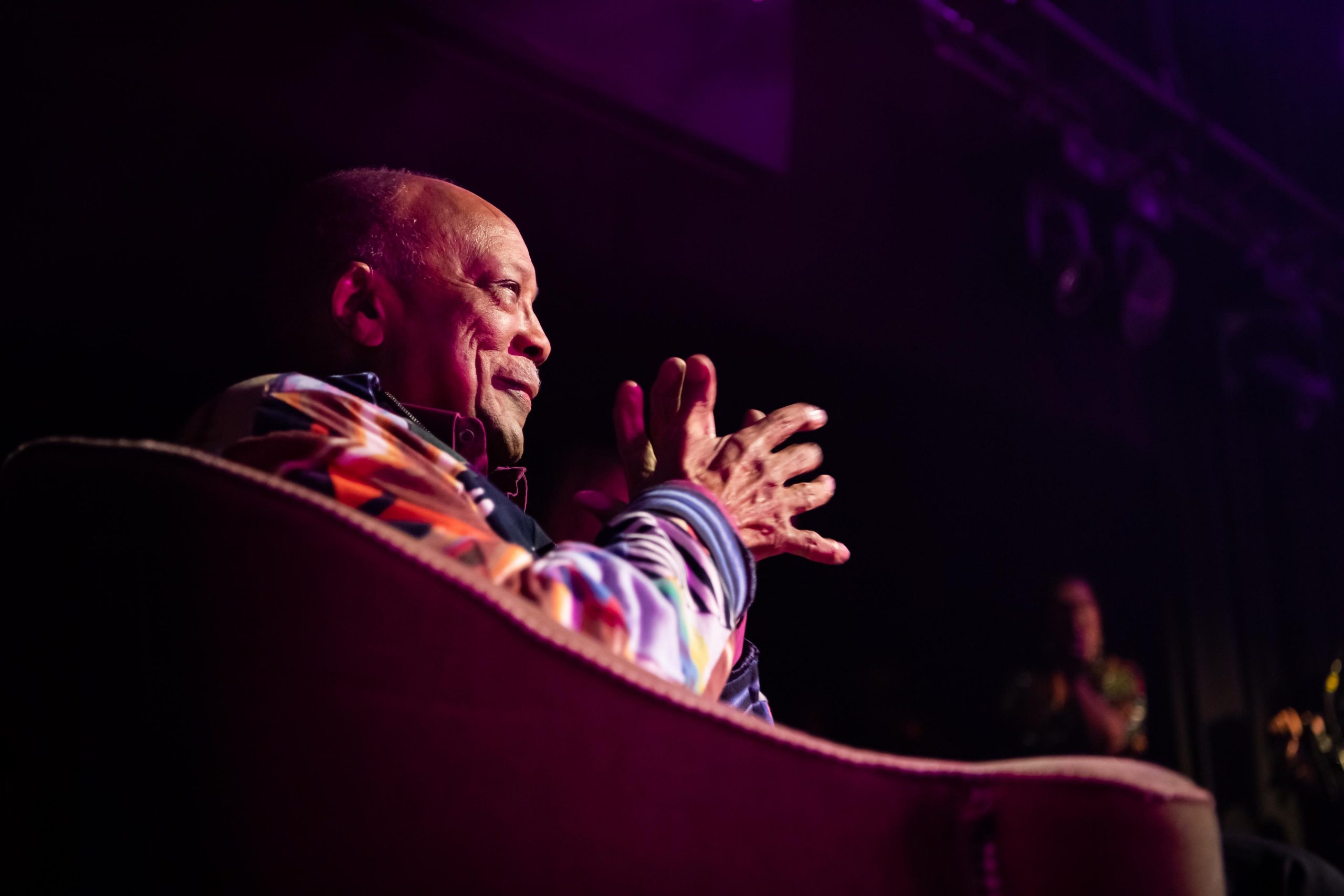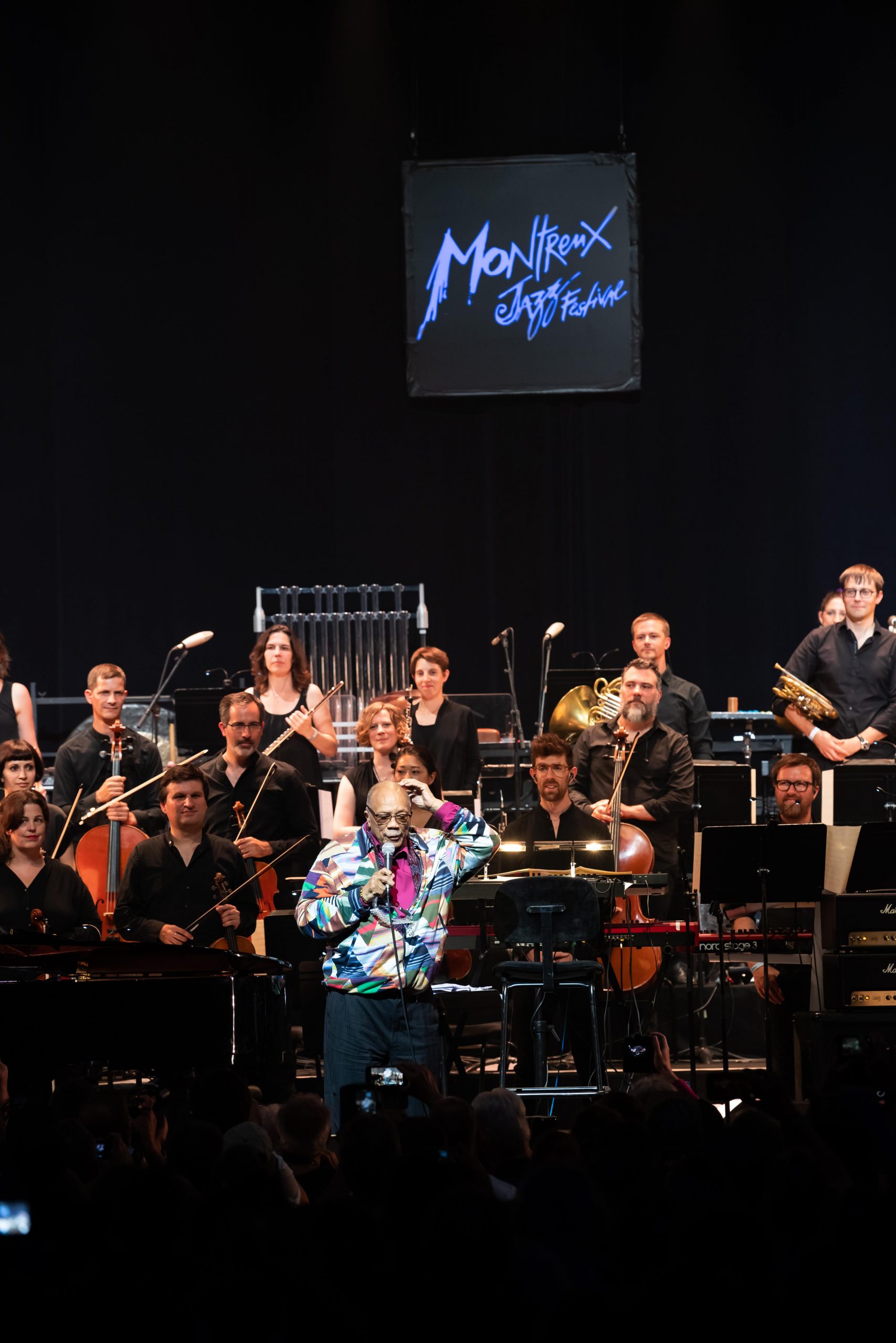 The celebration started with Quincy Jones’ concert, Soundtrack of the 80s. A line-up of seven artists had gathered at the Stravinski Hall to play some of the most popular hits composed, produced or arranged by Quincy Jones in the 1980s. Jon Batiste, -M- (Matthieu Chedid), Gareth Daley, Lauren Jauregui, Ibrahim Maalouf, Jonah Nilsson and Sheléa were accompanied on stage by the Sinfonietta de Lausanne, directed by John Clayton and Jules Buckley.