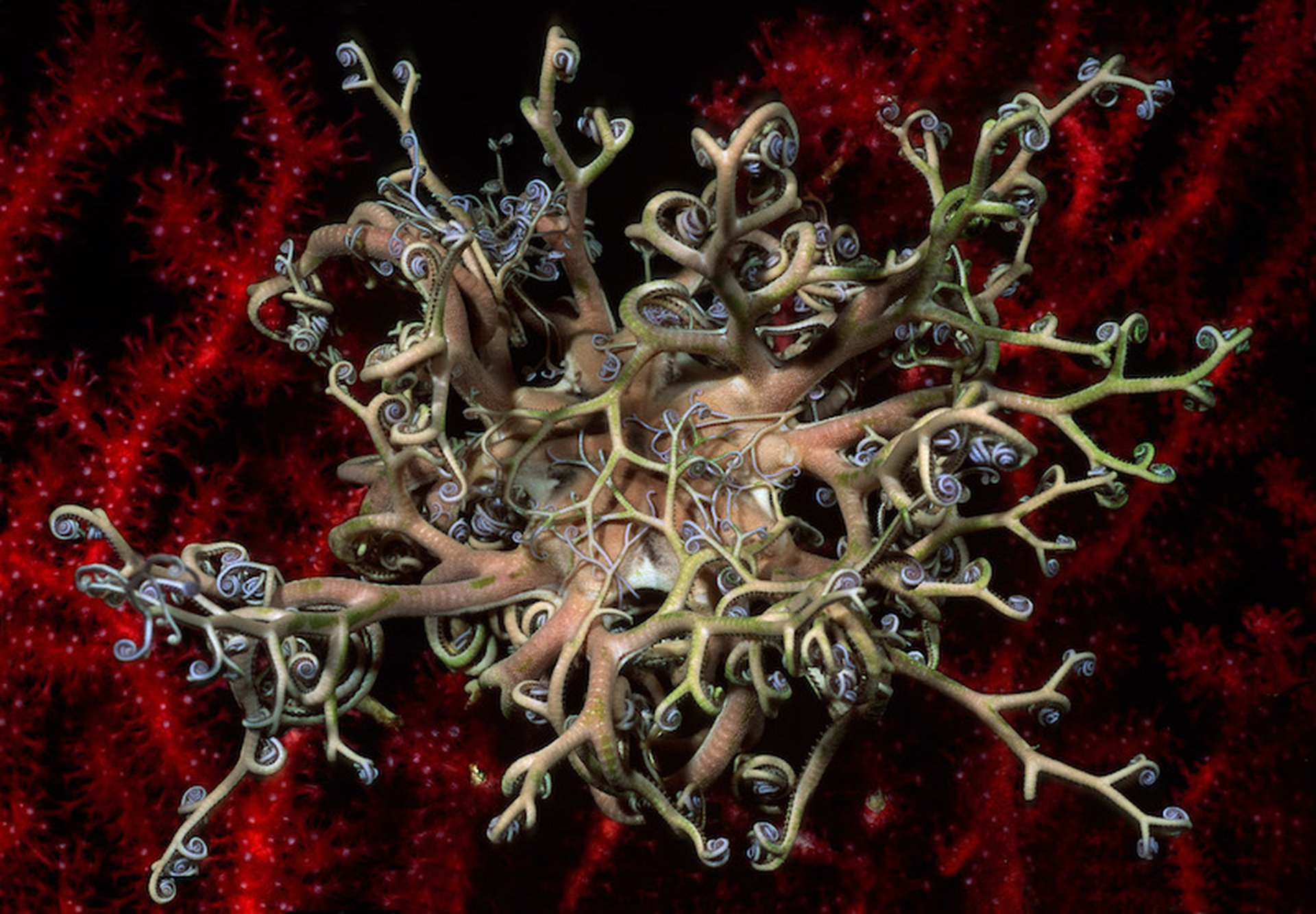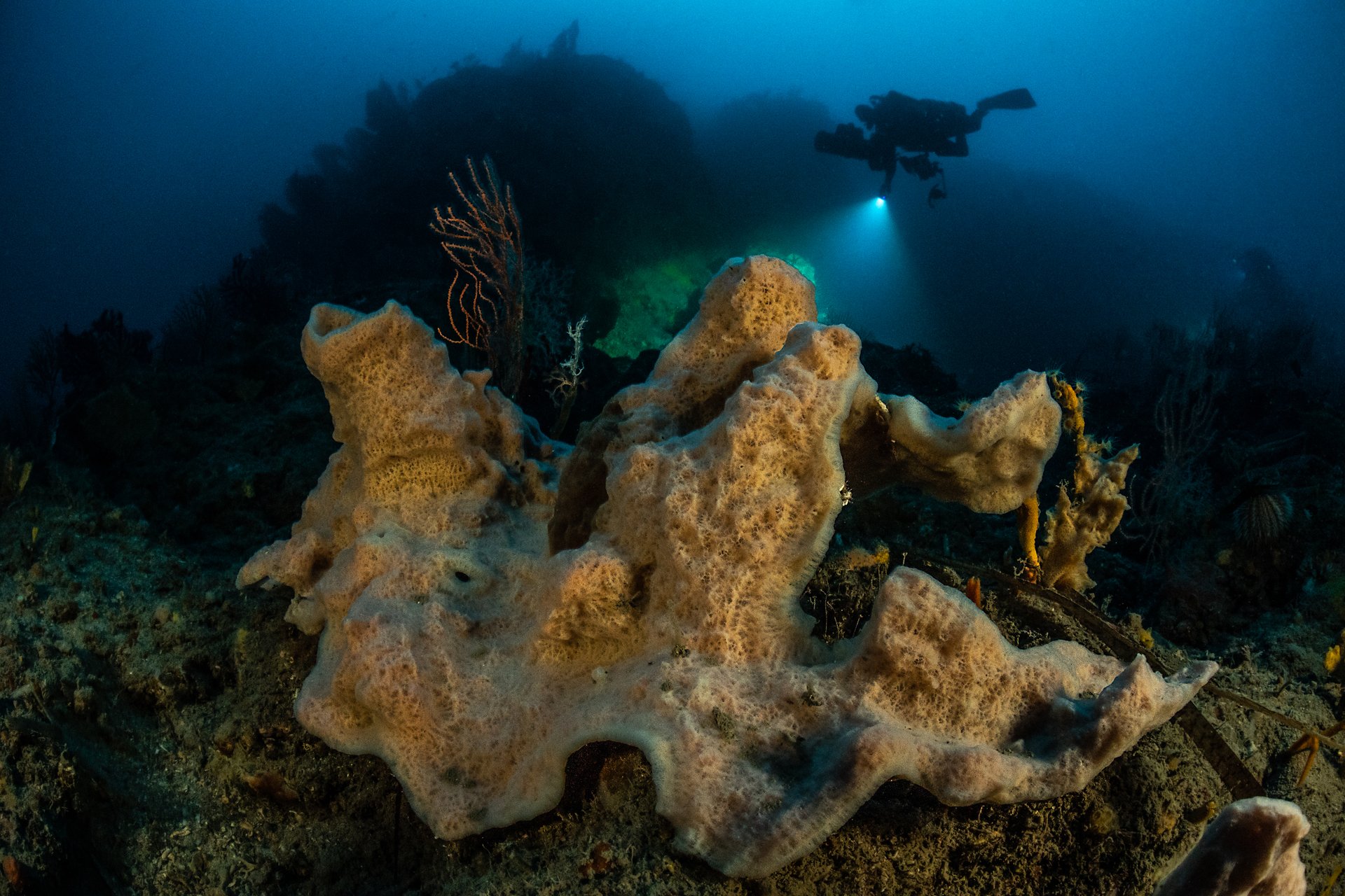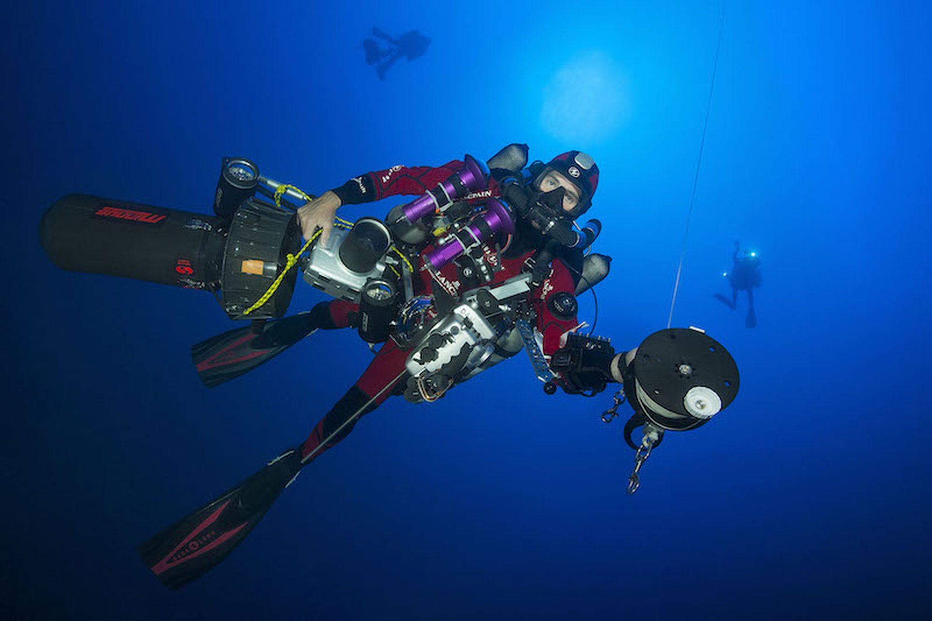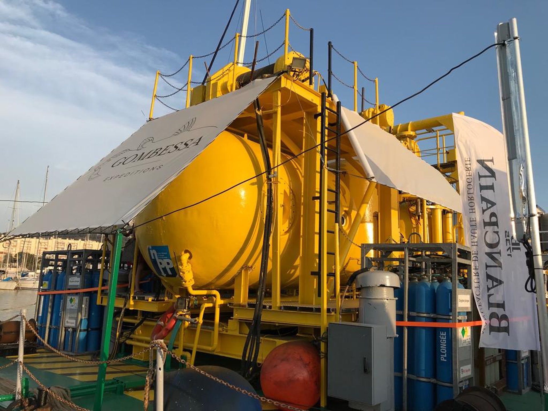 Each Gombessa expedition is characterized by a scientific mystery, a diving challenge and the promise of unprecedented images. Gombessa V is no exception to this rule. In order to allow the time to perform a whole series of scientific protocols commissioned by research centers and to illustrate these deep ecosystems, the Gombessa team has developed a world first: the combination of saturation diving with scuba using closed circuit rebreathers. Saturation diving enables professional divers to work on underwater construction sites by connecting them to the surface with an umbilical that both provides them with respiratory gas and allows them to communicate. The length of time they spend underwater is theoretically unlimited, but they can only move a few meters around the area in which they are working. Scuba diving, as its name suggests, allows free movement, but is characterized by strict time constraints. Indeed, for a few minutes spent at great depth, it is necessary to undergo several hours of decompression in order to avoid any risk of accident. The combination of these two techniques makes it possible for the first time ever to avoid any need for decompression during the expedition and to conduct a single four-day session at the end of the mission. Laurent Ballesta and his three companions will thus be able to perform explorations lasting up to eight hours a day in order to achieve their ambitious objectives.