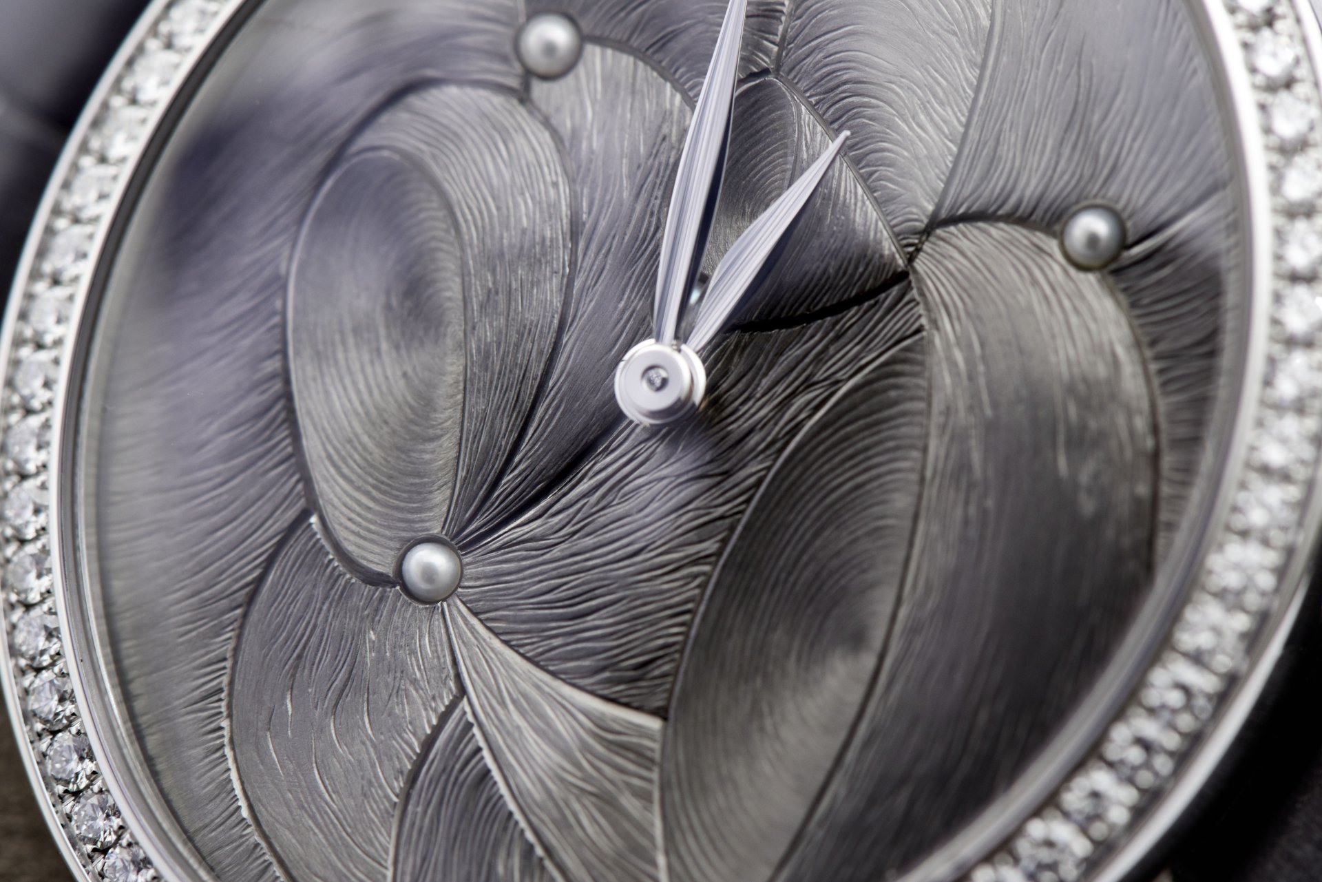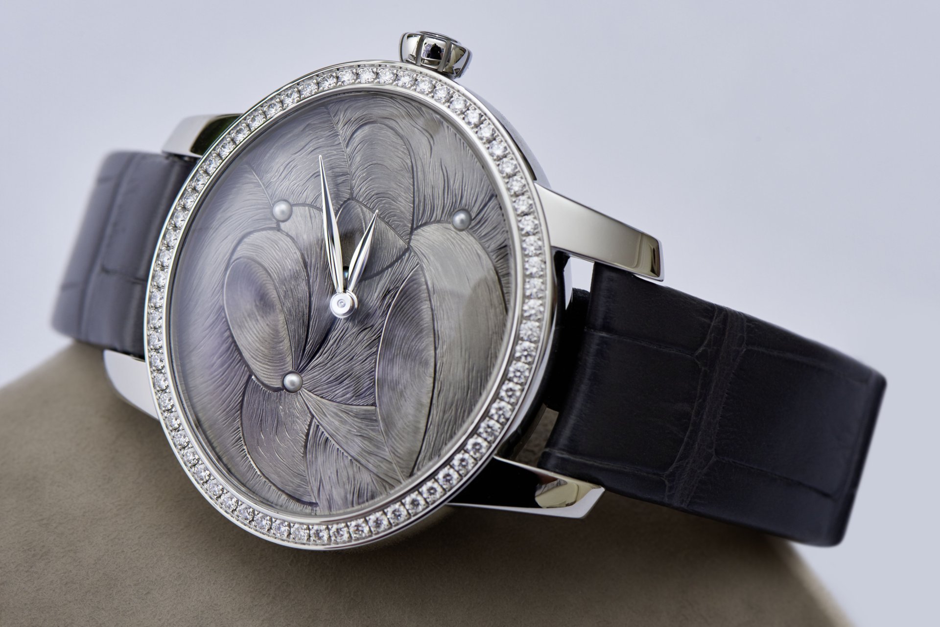 This annual graduation project focused on engraving aims to enhance a watch from the Girard-Perregaux collection by means of ornamentation on the movement as well as the dial. With this in mind and for the very first time, the three students specialised in engraving were invited to work on the exclusively feminine Cat’s Eye model.