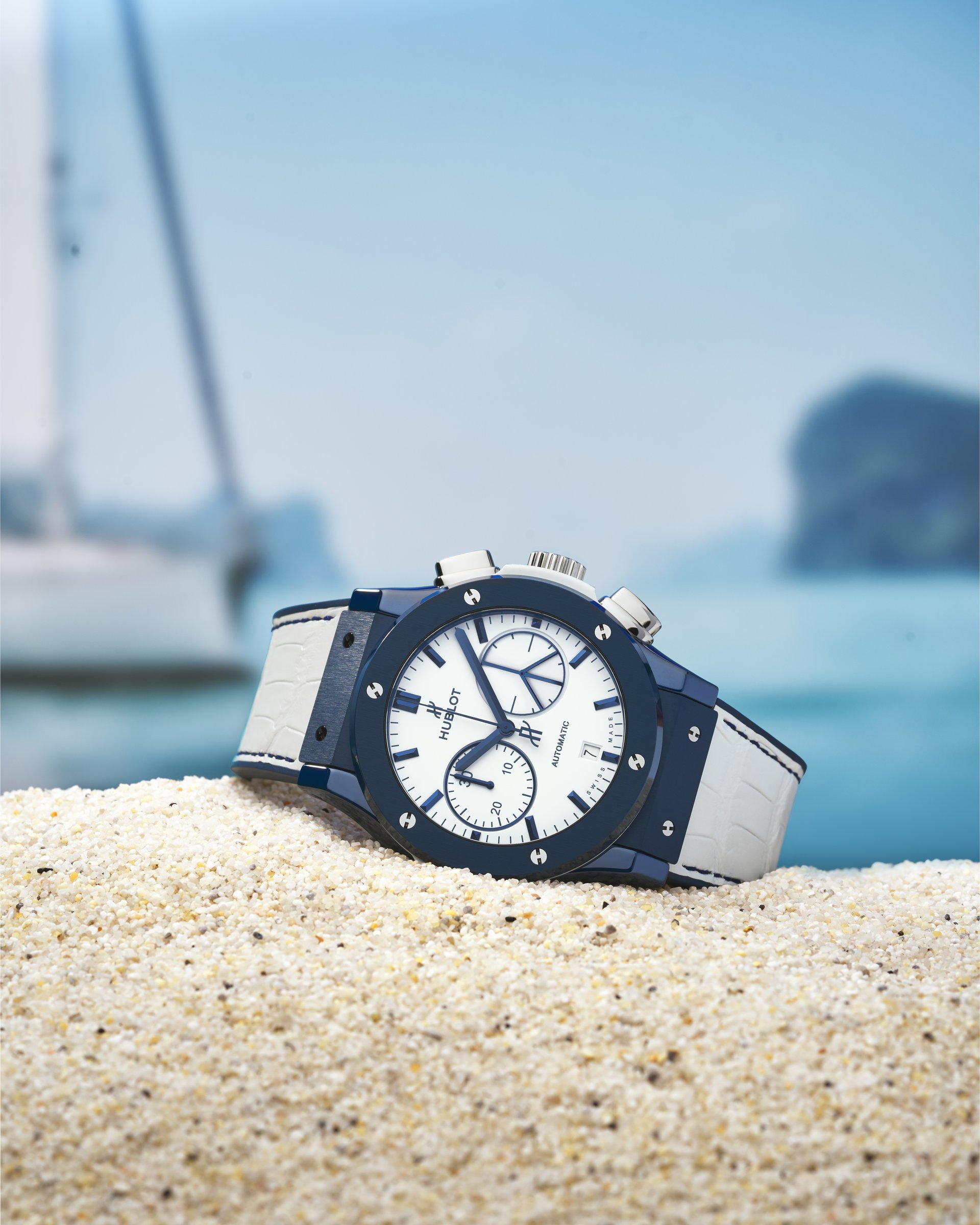 After Mykonos, Capri and Porto Cervo, Hublot conquered another Mediterranean jewel yesterday, inaugurating a pop-up boutique on Ibiza for the summer. Guests enjoyed a taster of the holidays on the Marina in the presence of Ricardo Guadalupe, CEO of Hublot, and Noemi de Miguel, a TV host for Formula 1. It was also an opportunity to unveil the Hublot Classic Fusion Chronograph Ibiza, an innovative watch in blue ceramic that draws its creative inspiration from the island, its festive nature and its symbolism. A horological dedication to the enchantment of Ibiza, and a way to treat yourself to celebrate the summer.