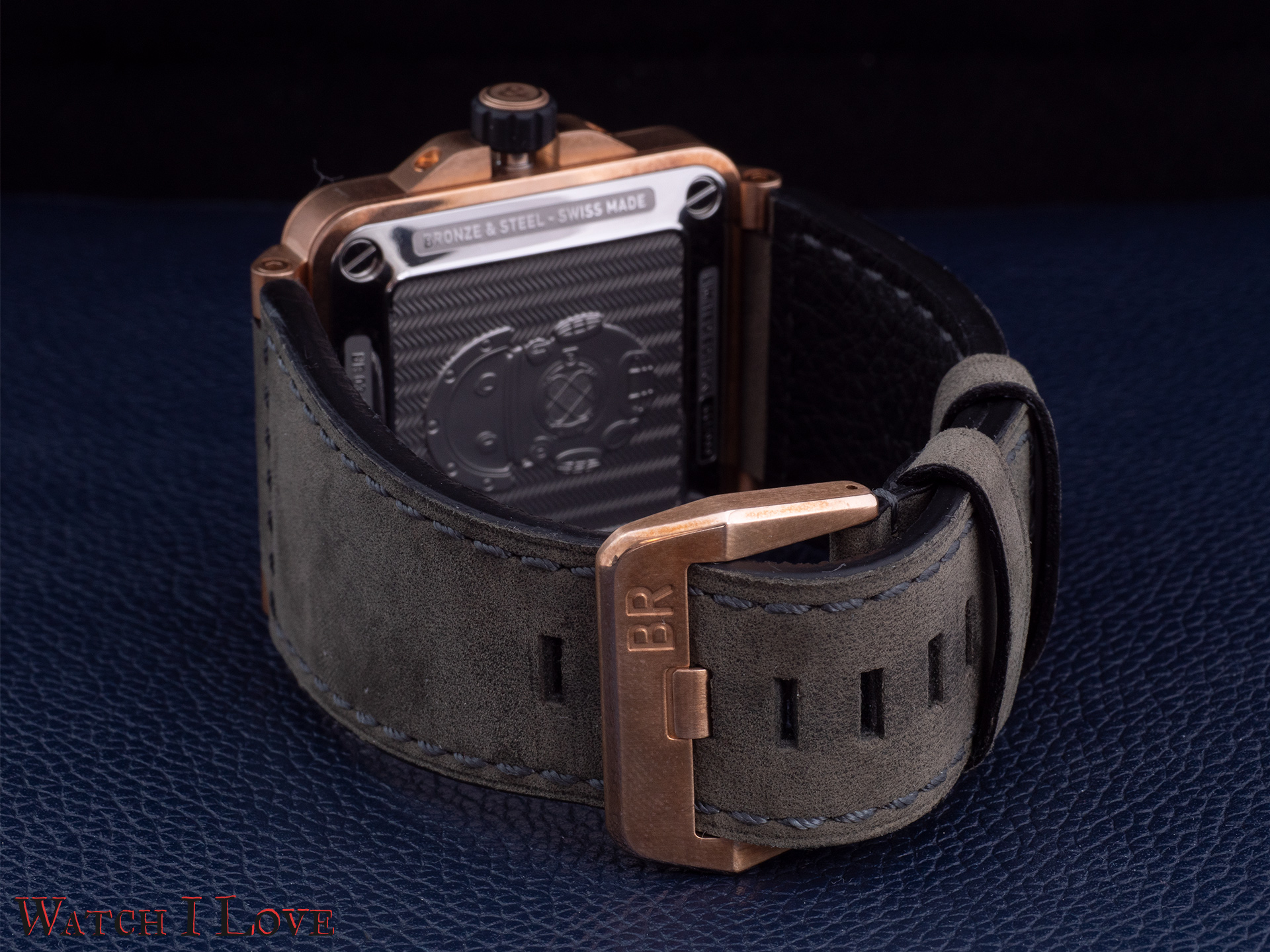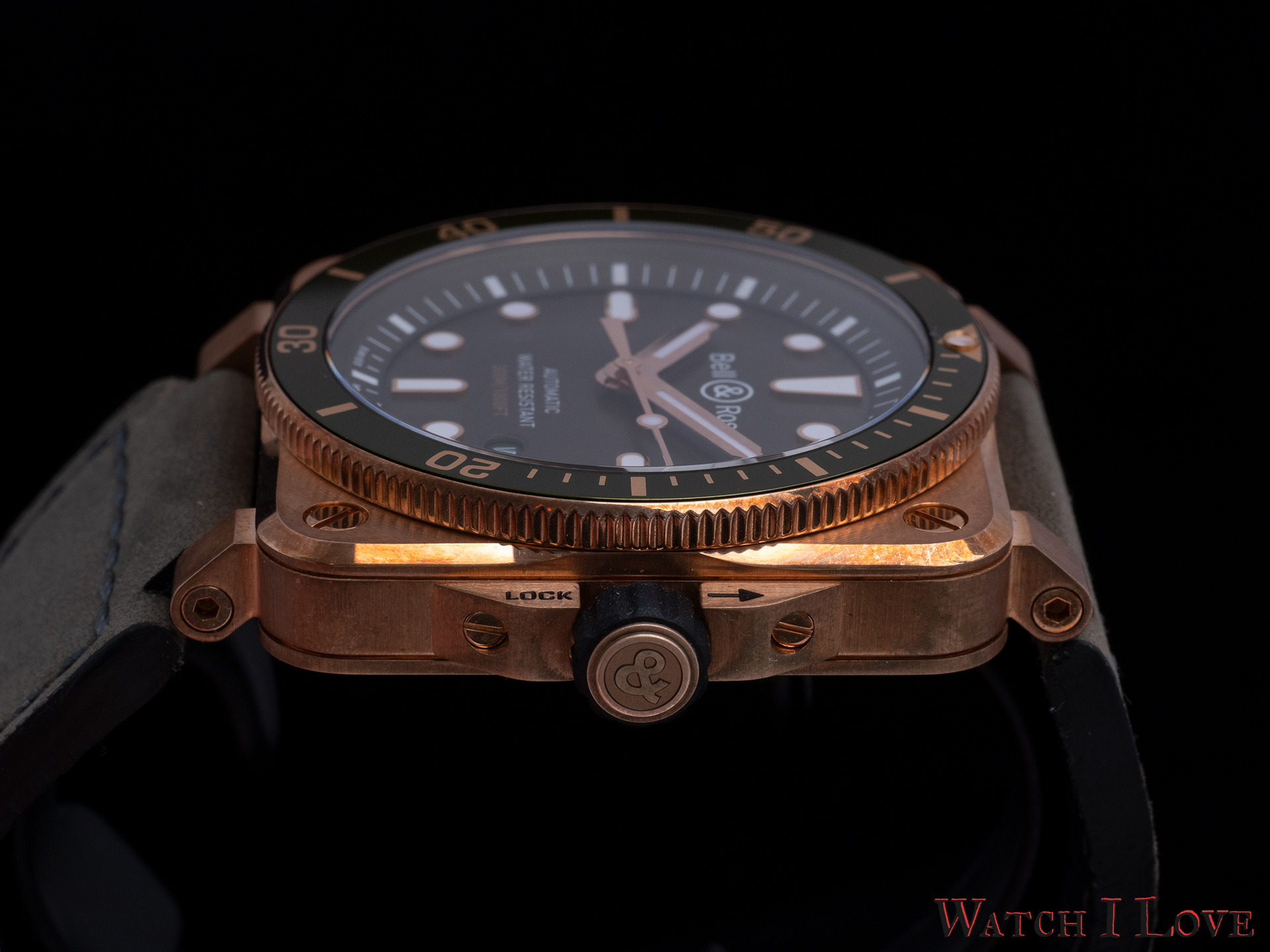 The case of the BR03-92 has nothing to do with gold, the metal. But when new, the case of the diver looks like a massive piece of gold. Remember theĀ Bell & Ross Vintage BR V2 94 Bellytanker Bronze? But the bronze case made of CuSn8 (92% copper and 8% tin) will age in time. The bronze can develop a very unique patina, determined by the users’ skin pH and usage condition.