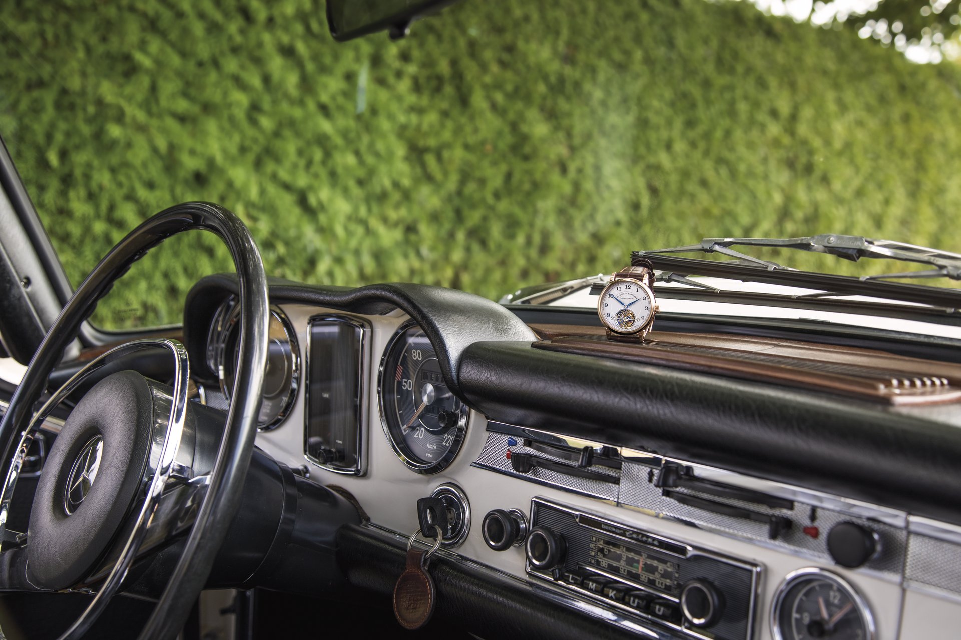 Wilhelm Schmid sees natural affinities in the partnership: ‘Timeless design, mechanical perfection and master craftsmanship are the key values that A. Lange & Söhne has devoted itself to. This is something we share with the fans and collectors of vintage vehicles we meet at these events. And that’s why those who love sophisticated mechanical watches often have a weakness for classic cars, too.’ He adds: ‘I happen to be one of them, just like our company founder, Walter Lange, who would have celebrated his 95th birthday on 29 July. I have fond memories of him driving his Mercedes Pagode to Lake Como for our first presentation at the Concorso d’Eleganza in May 2012.’
