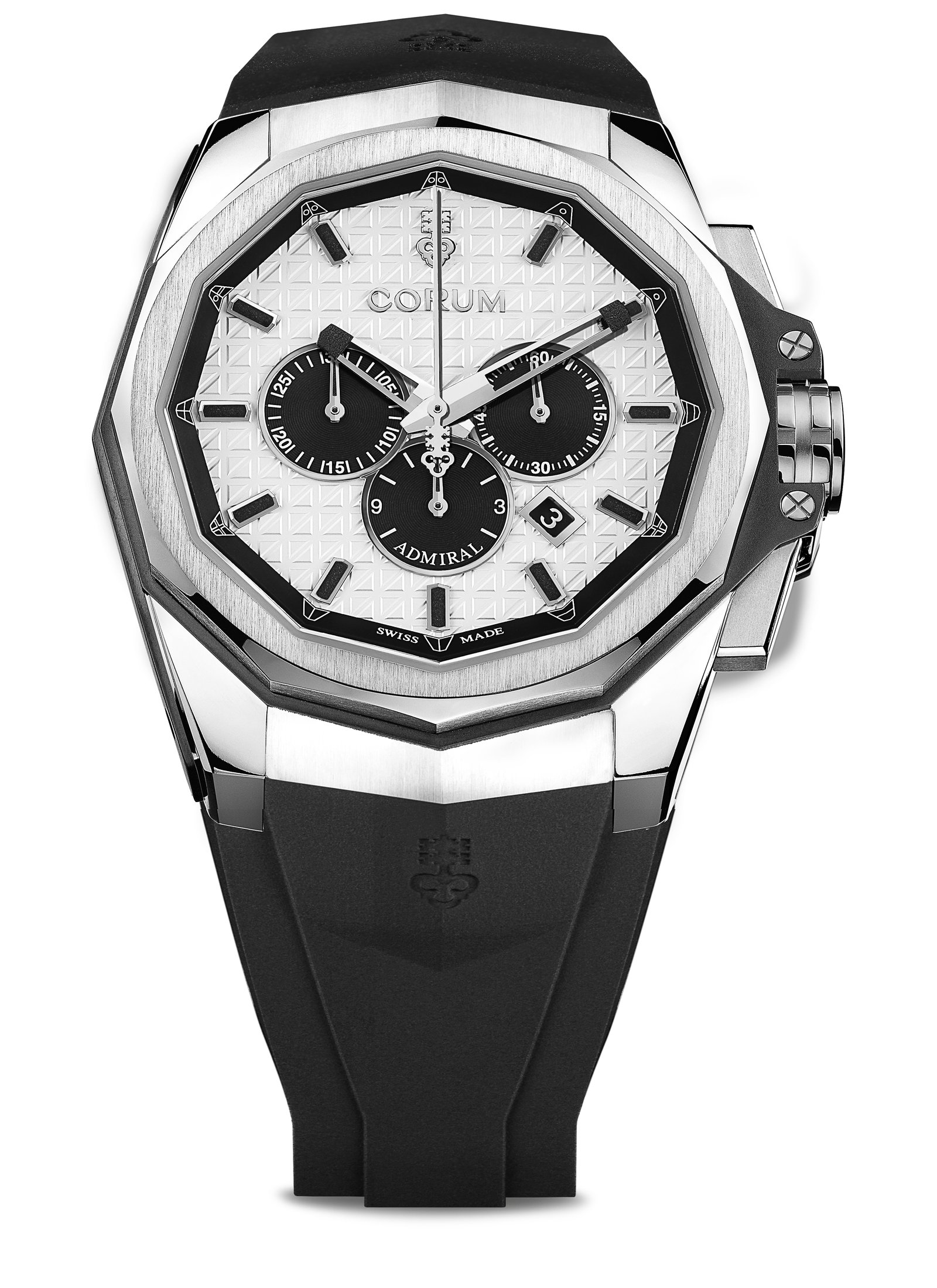 The Admiral is one of the pillars of Corum’s heritage. Unveiled in 1960, five short years after the brand’s creation, it embodies the Swiss watchmaker’s idea of maritime-inspired watchmaking. Although it has always been loyal to its artistic fibre, it has never been afraid to set sail for distant shores. This year, it gives its Admiral AC-One 45 Chronograph a facelift so as to modernise the collection while lending it an urban sportiness.