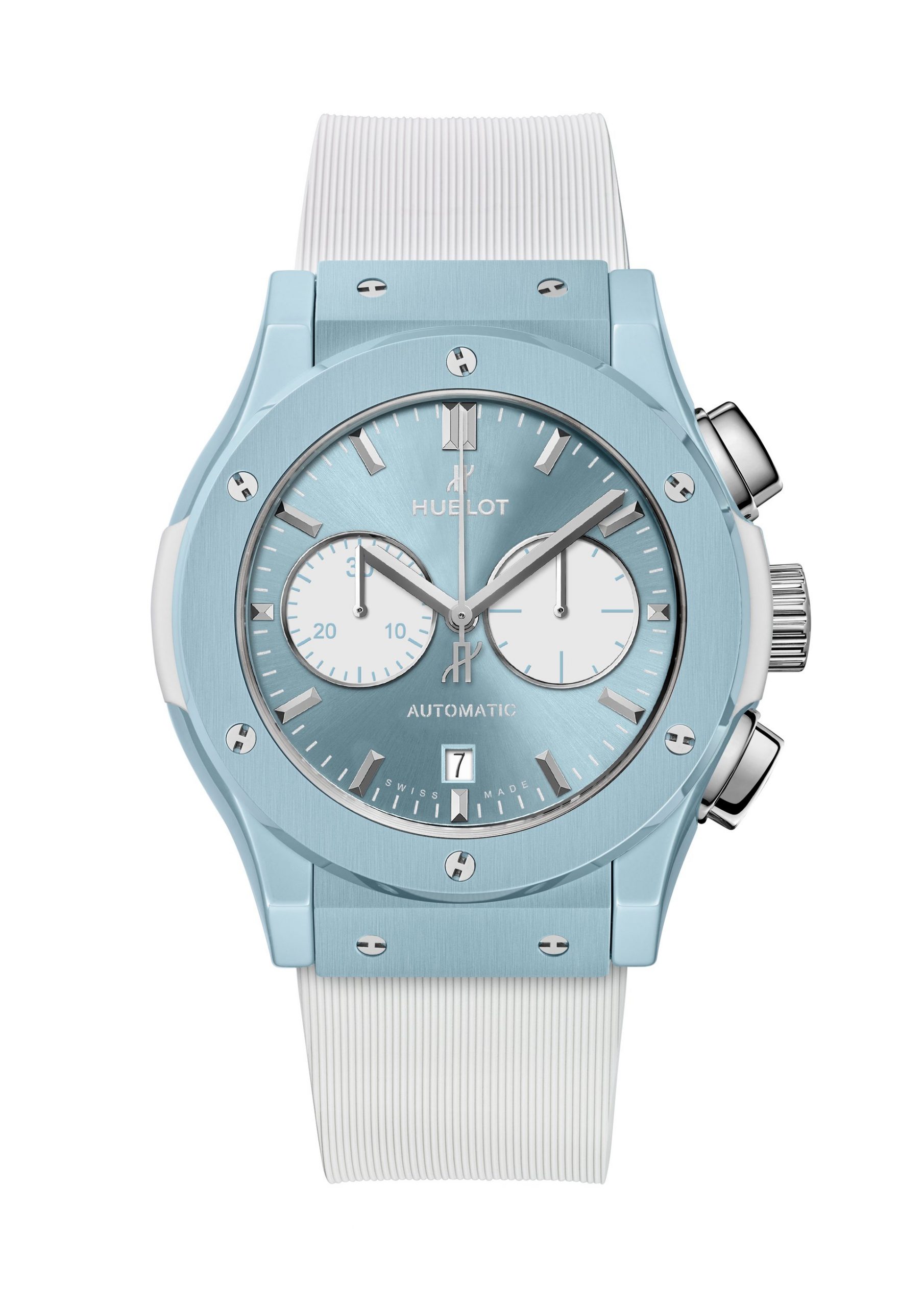 White rubber and sky blue ceramic come together effortlessly to create a perfect combination of the Art of Fusion and summer. It goes without saying that the Classic Fusion Chronograph Special Edition Capri encapsulates the magic of the island and its crystal-clear waters.