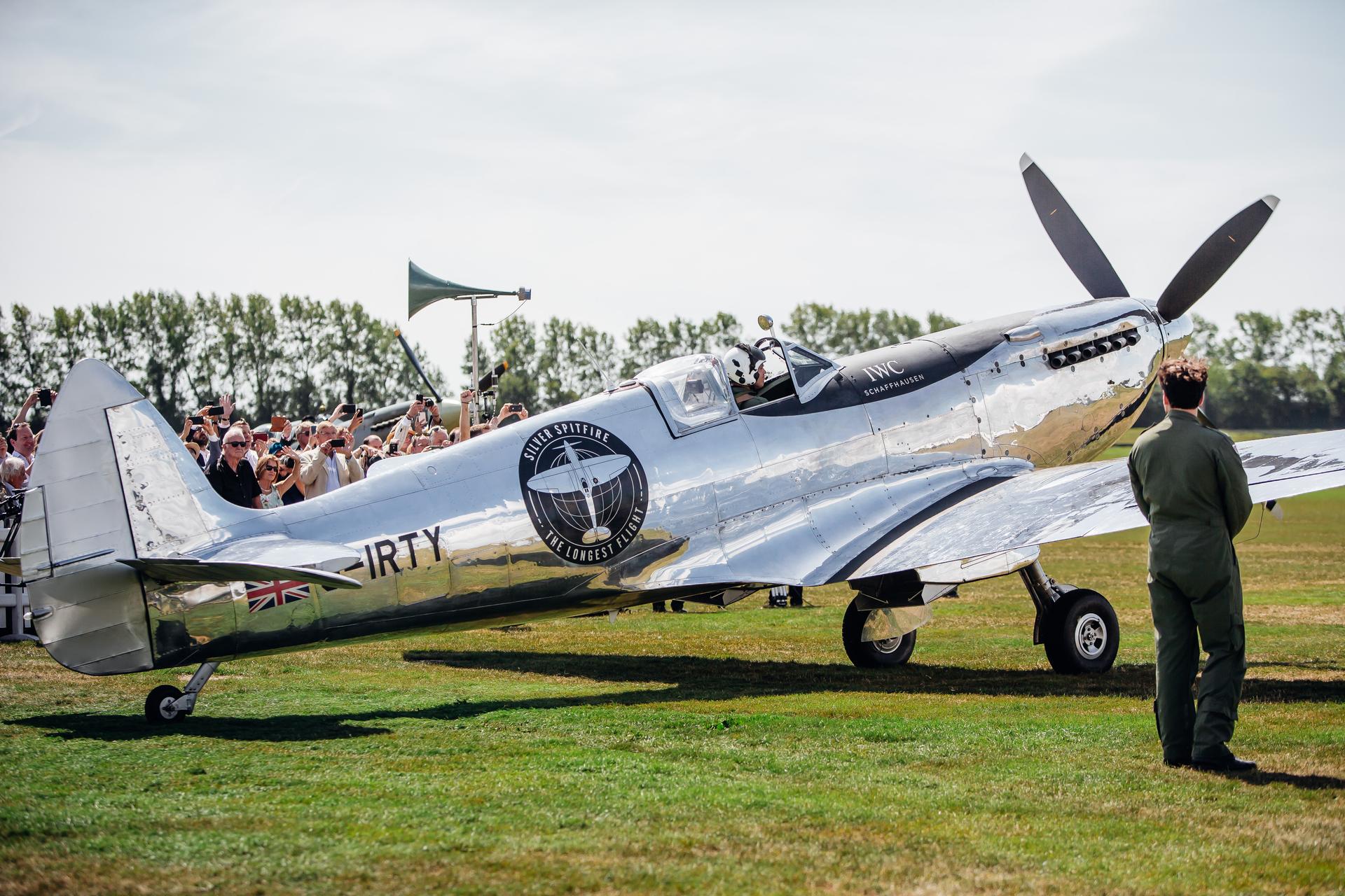 Schaffhausen / Goodwood, 5th August, 2019 – IWC Schaffhausen and the Boultbee Flight Academy, in collaboration with Aviation Adventures Ltd, have celebrated the official start of the “Silver Spitfire – The Longest Flight” expedition in Goodwood. To the roaring applause of more than 400 guests, the carefully restored and polished Spitfire aircraft embarked on its unprecedented flight around the world. IWC supports the mission as its main partner and official timekeeper.