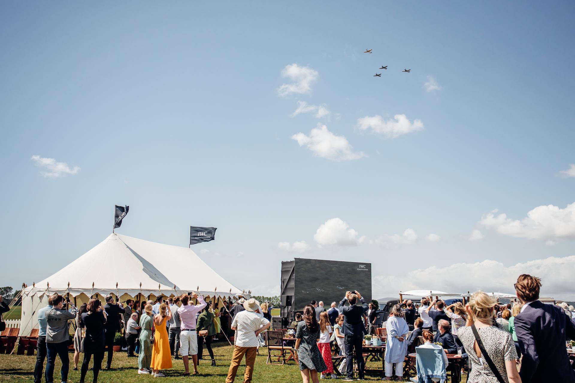 On Sunday evening, ahead of the flight, IWC hosted a private dinner with the two pilots and their crew at Goodwood House. Today, about 400 guests gathered on the Goodwood Estate for a big farewell party. The funfair atmosphere included live music, an air show and other attractions. Amongst the guests were British actress Rosamund Pike and former Formula One™ star David Coulthard, both IWC brand ambassadors, British actors Taron Egerton and Finn Cole, as well as TV and radio presenter Dermot O’Leary.