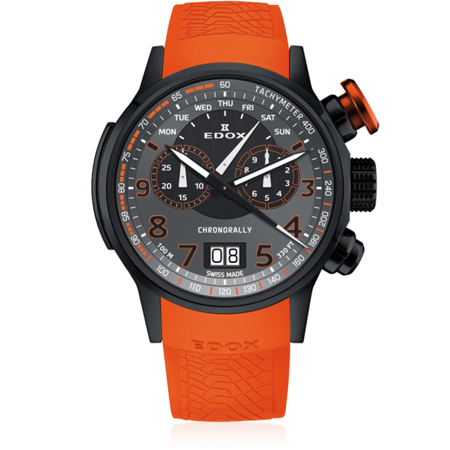 All Chronorally equipment and gear must be tough enough to survive the harshest conditions: speed, mud, snow, shocks, heat, etc. Edox Chronorally timepieces have been designed and engineered to withstand the most extreme environment. Technical materials such as strong rubber straps, solid stainless steel cases and robust, reliable movements are featured on all Chronorally timepieces.