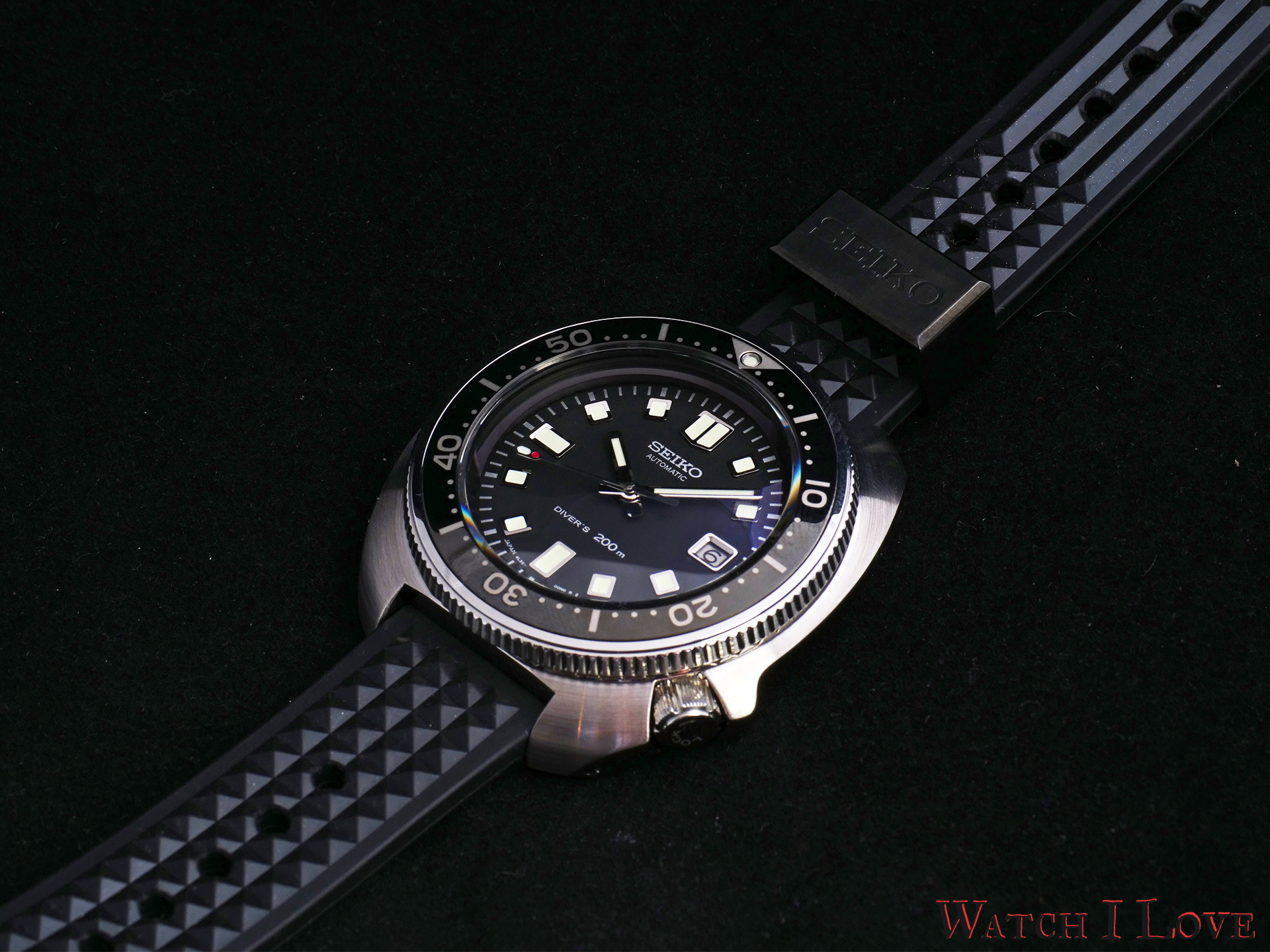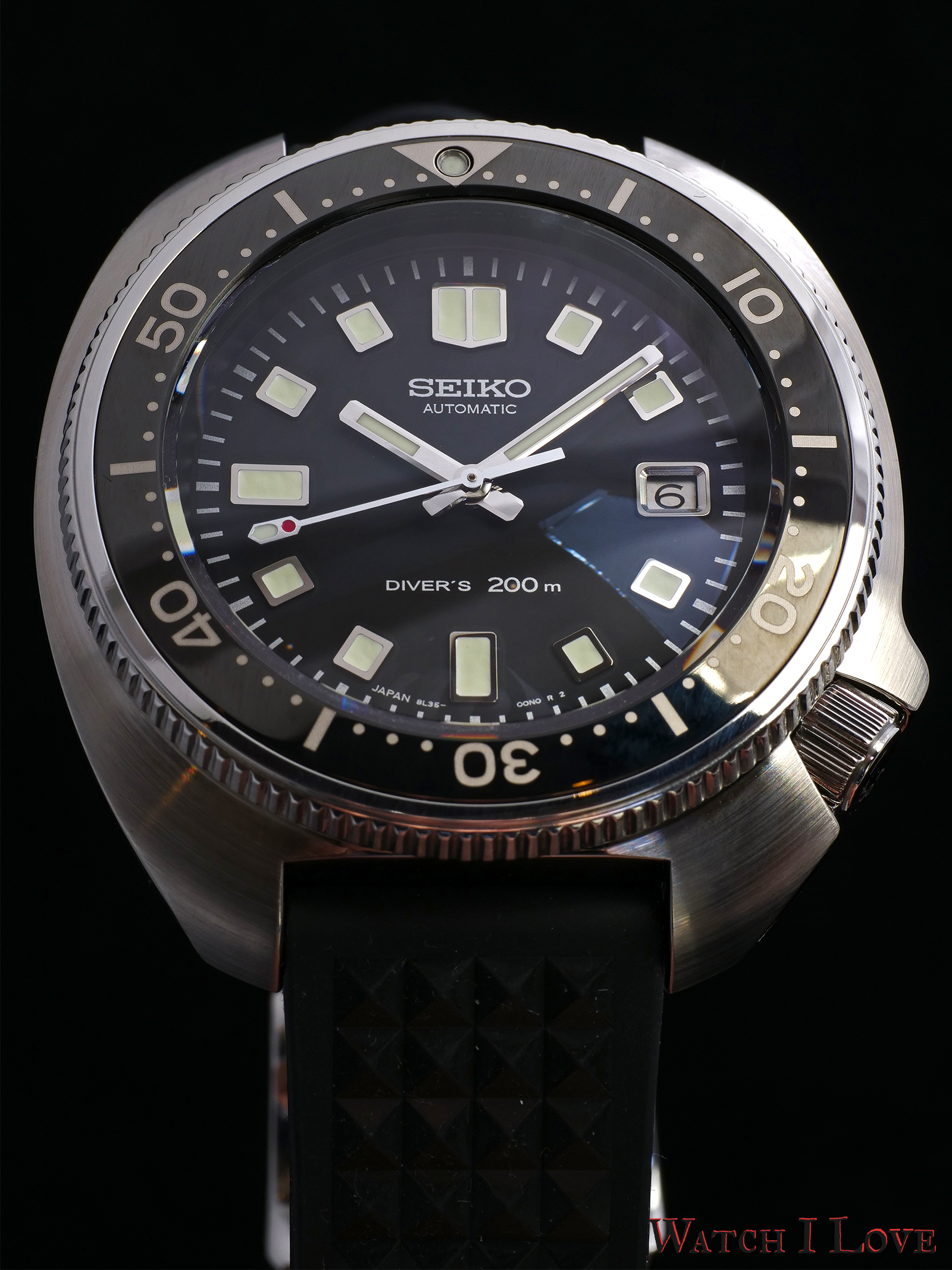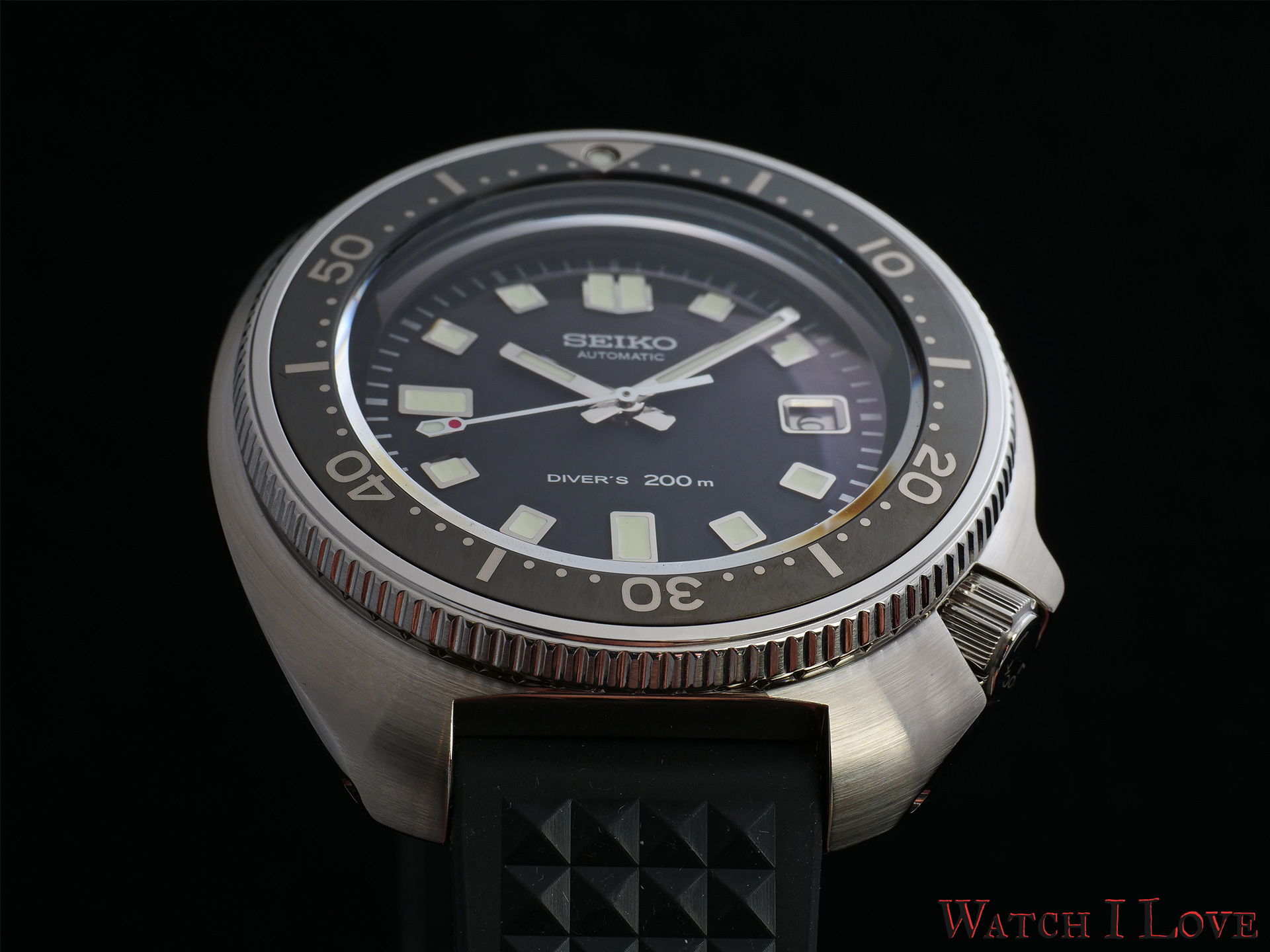 The dial is quite similar to the original model of the ’70s. The modern watch is decorated with a printed Seiko name, movement type and water resistance (200m instead of 150m of the original model).